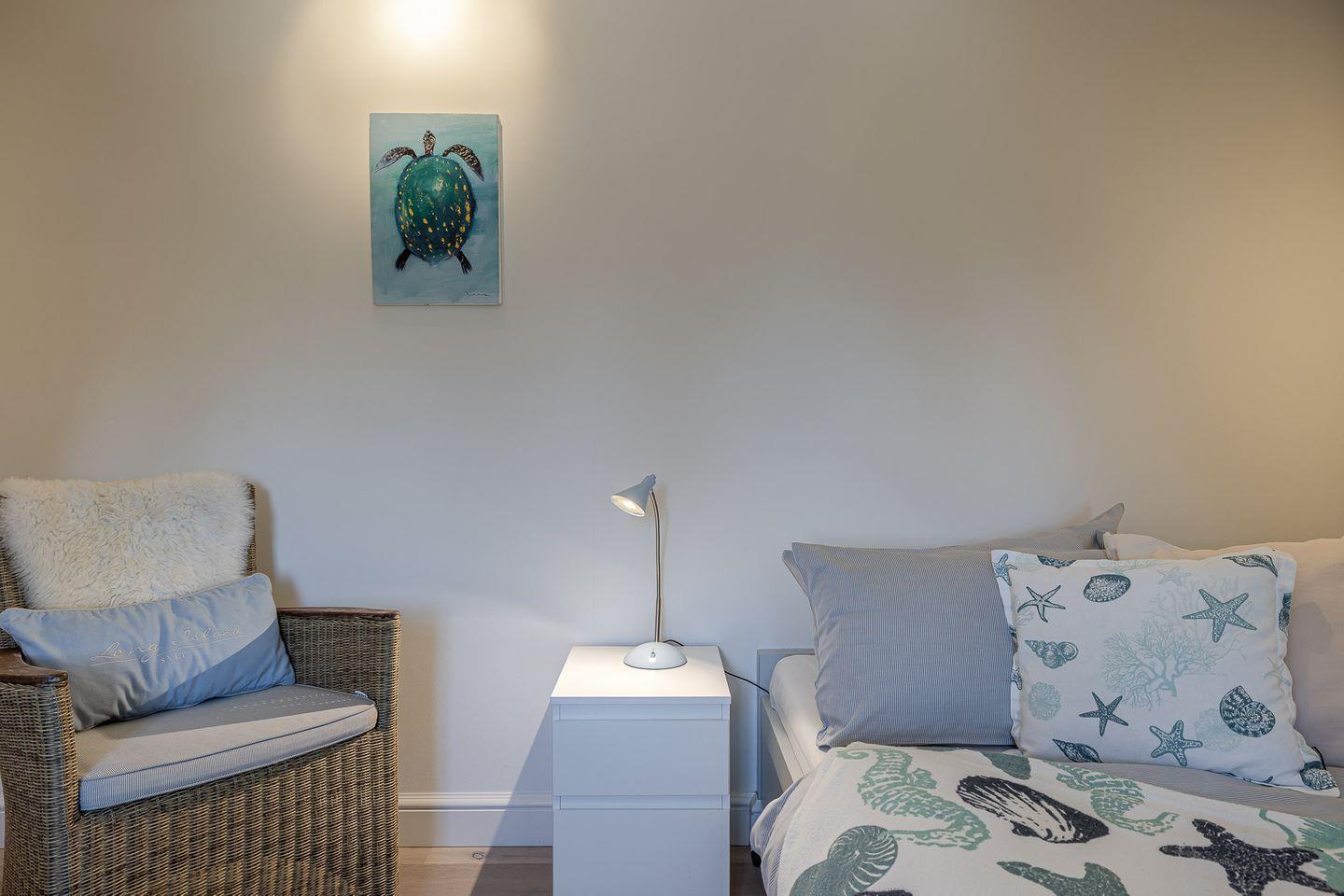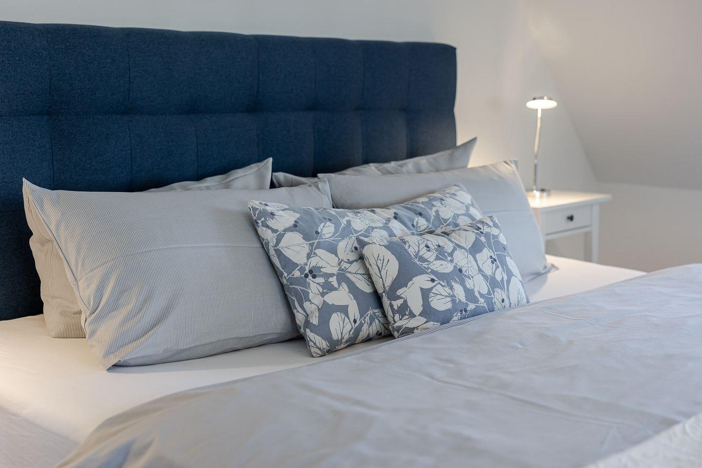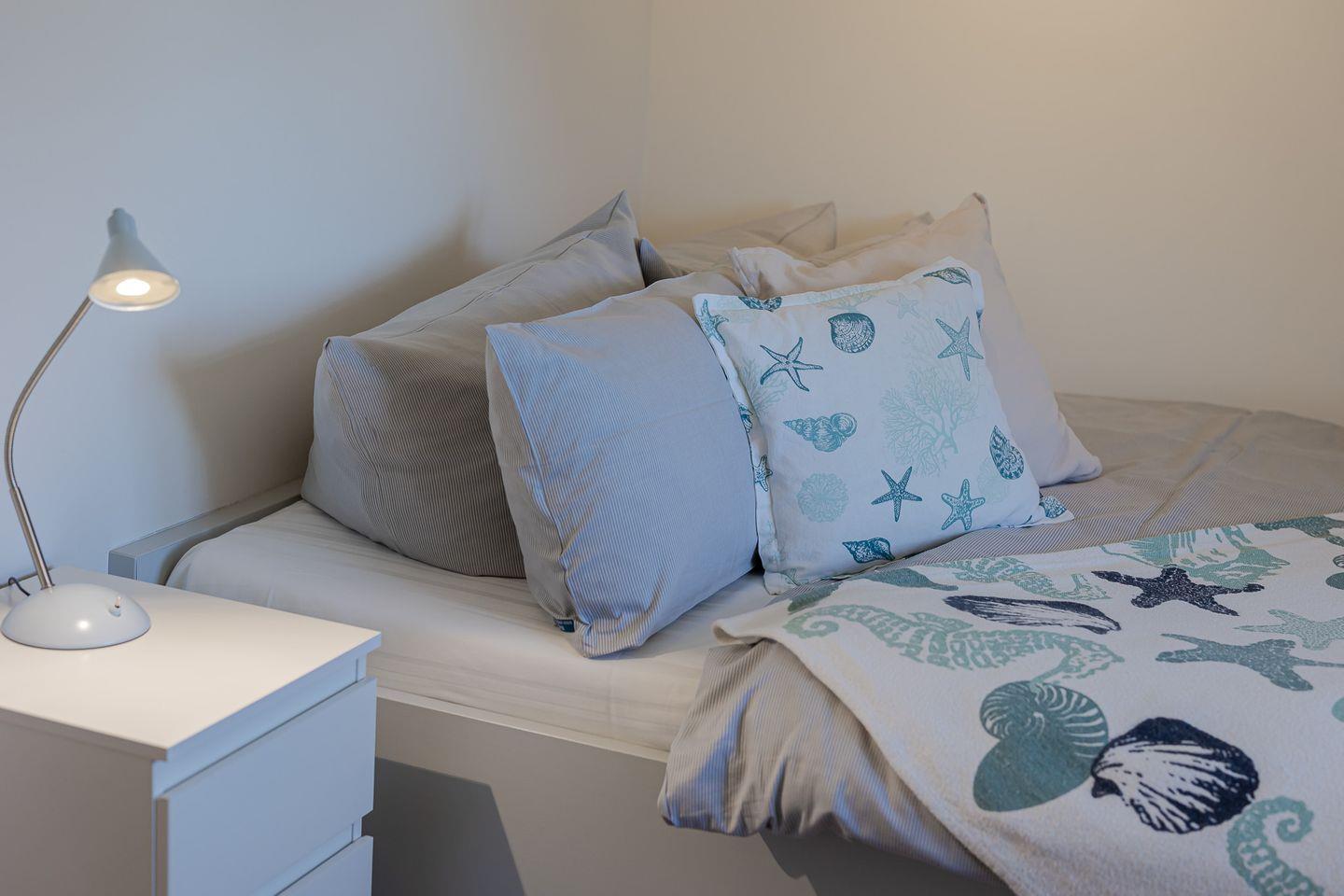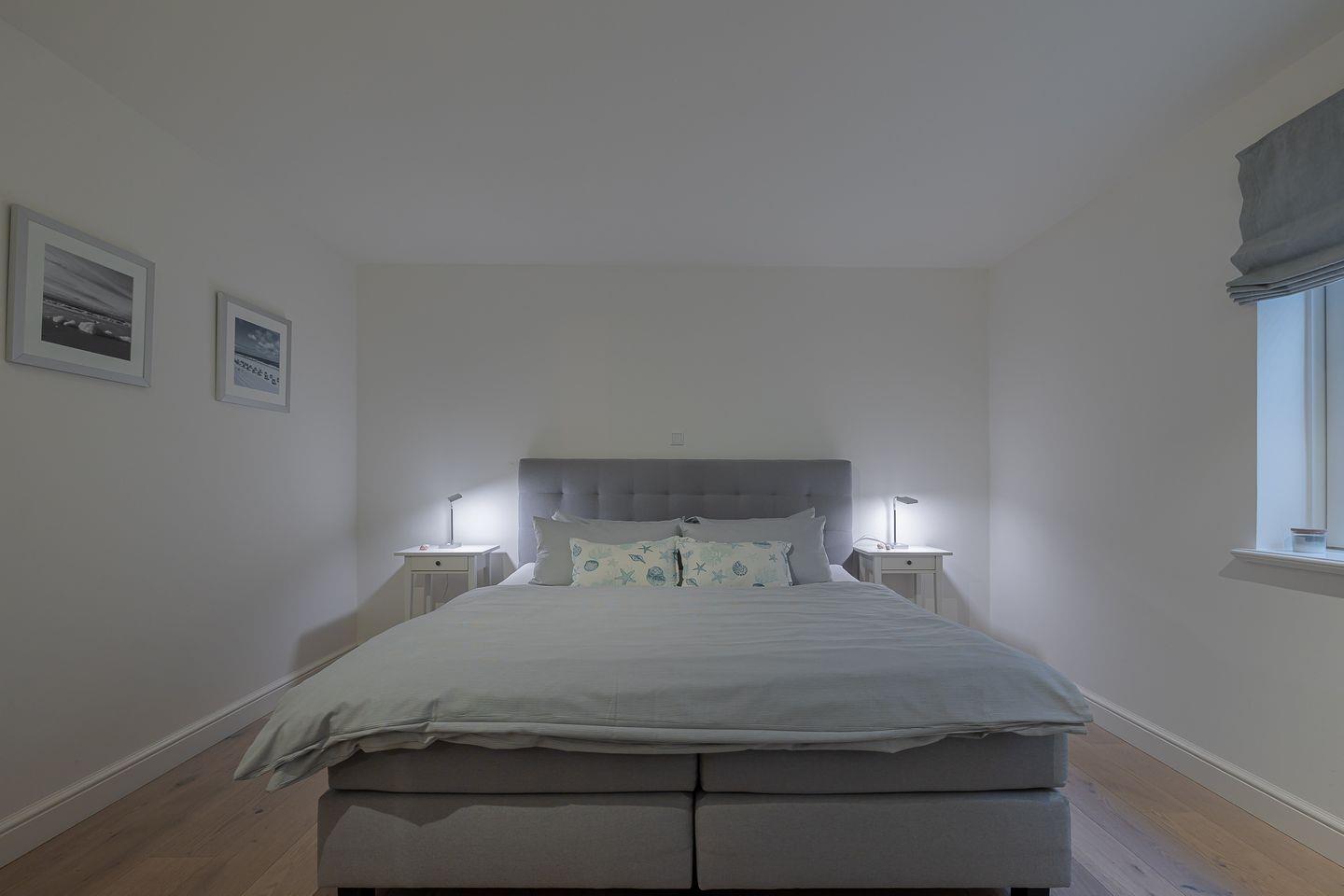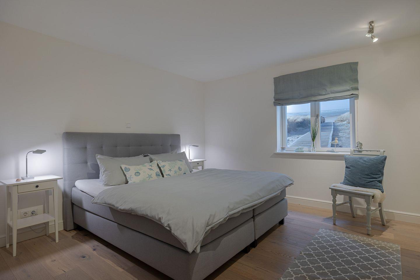 Die beiden Hauptschlafzimmer sind mit luxuriösen Boxspringbetten (180x200 cm) ausgestattet, die höchsten Schlafkomfort garantieren. Das kleinere Schlafzimmer strahlt eine besonders gemütliche Atmosphäre aus und ist mit einem bequemen Bett (140x200 cm) ideal für Einzelpersonen oder Kinder.
