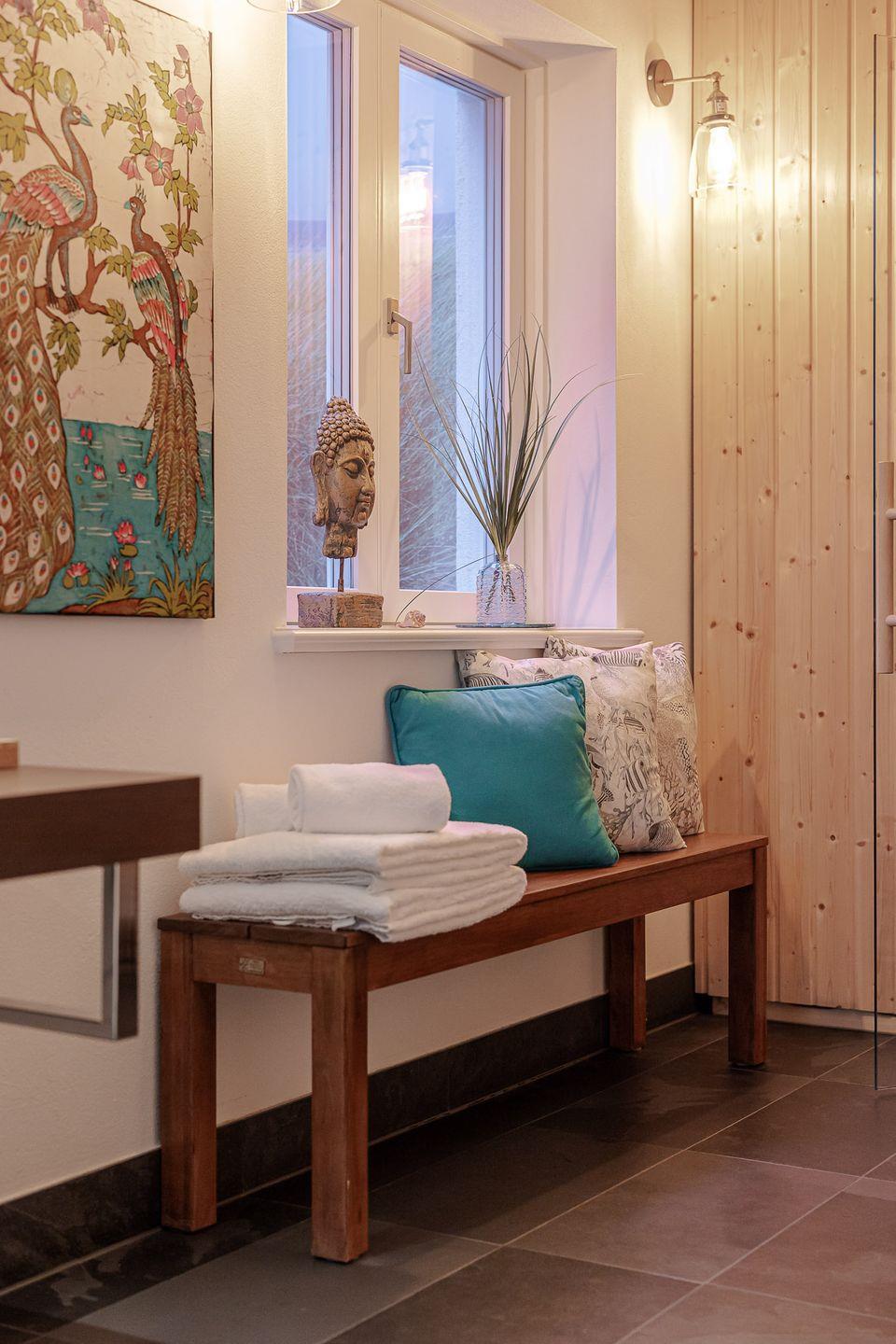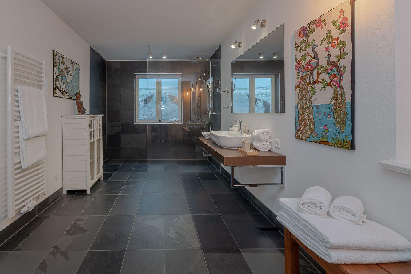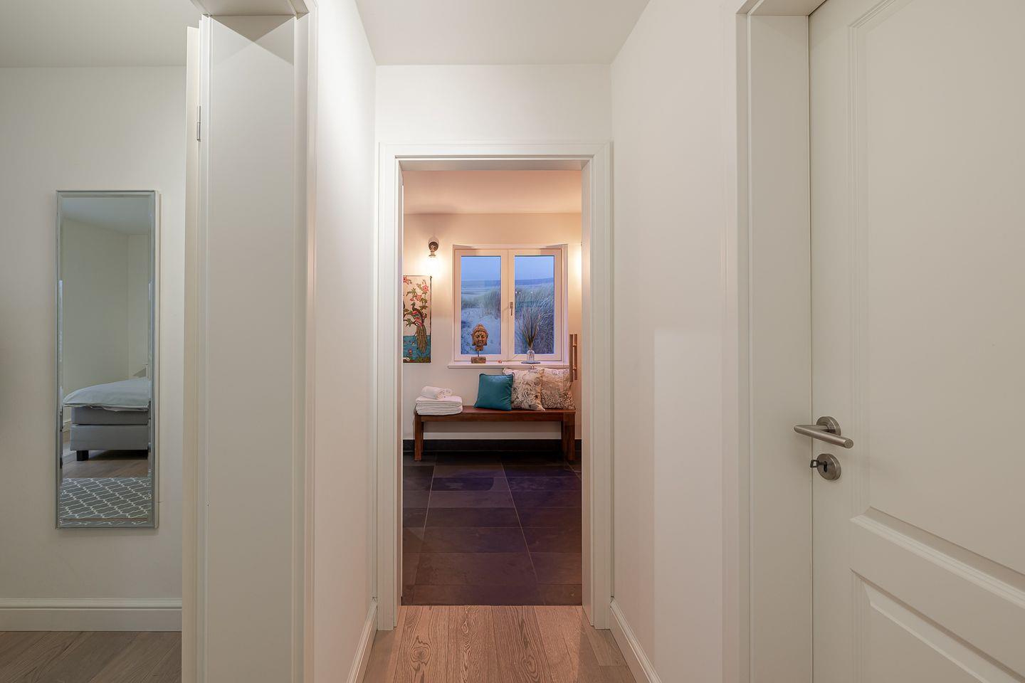 Der private Wellnessbereich mit Sauna lädt dazu ein, sich nach einem langen Spaziergang am Strand zu entspannen und neue Energie zu tanken. Ein praktischer und privater Hauswirtschaftsraum mit Waschmaschine und Trockner steht ebenfalls zur Verfügung, damit Sie sich während Ihres Aufenthalts um nichts sorgen müssen.