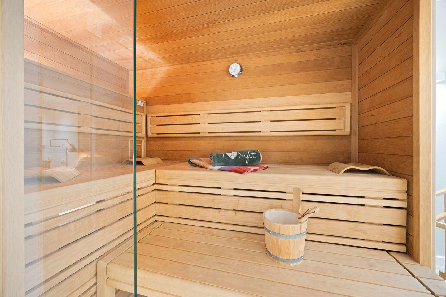 Die private Wellness-Oase mit Sauna und Ruhebereich lädt zum Entspannen ein. Zwei moderne Badezimmer mit Regenduschen sowie ein zusätzliches Gäste-WC sorgen für höchsten Komfort.