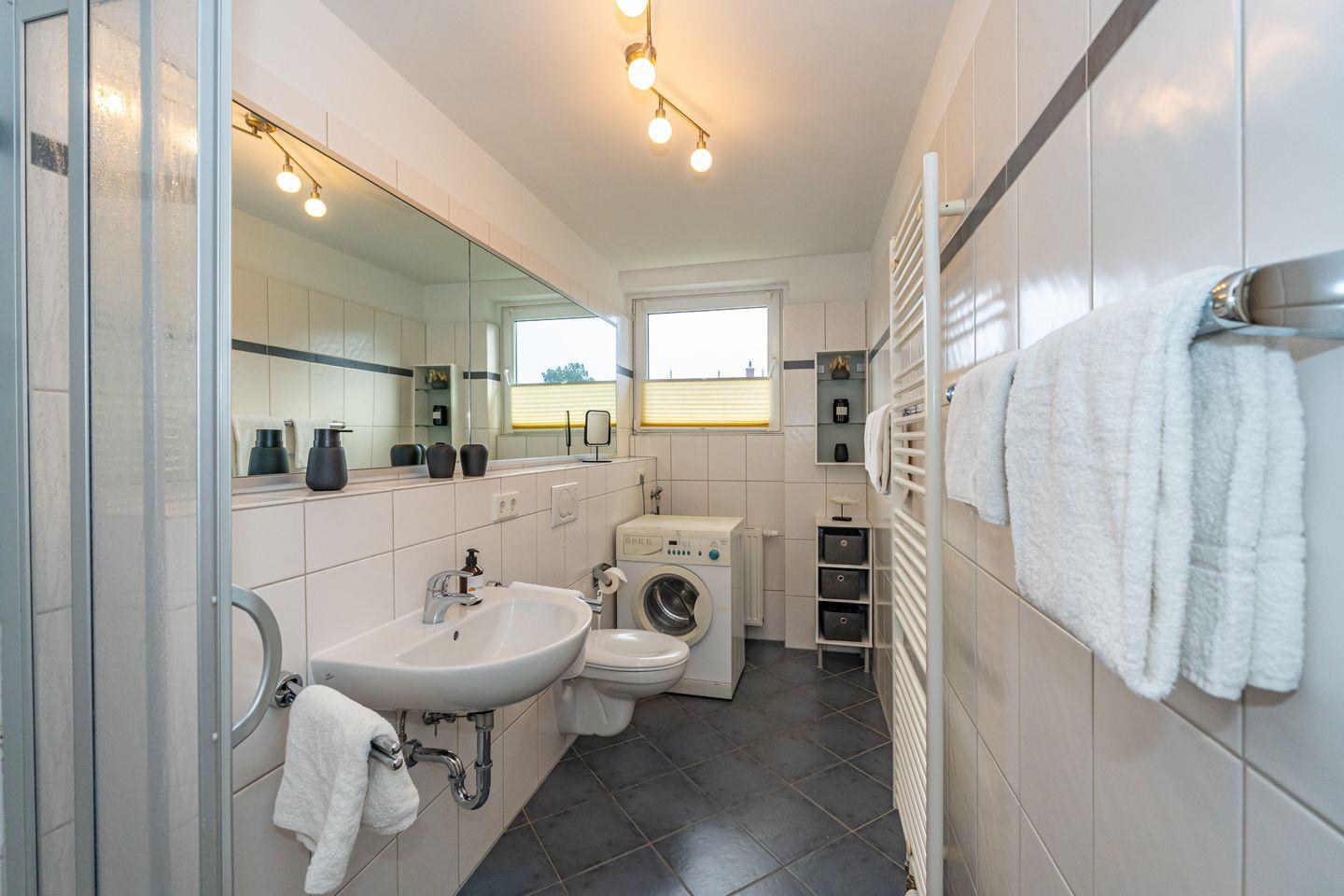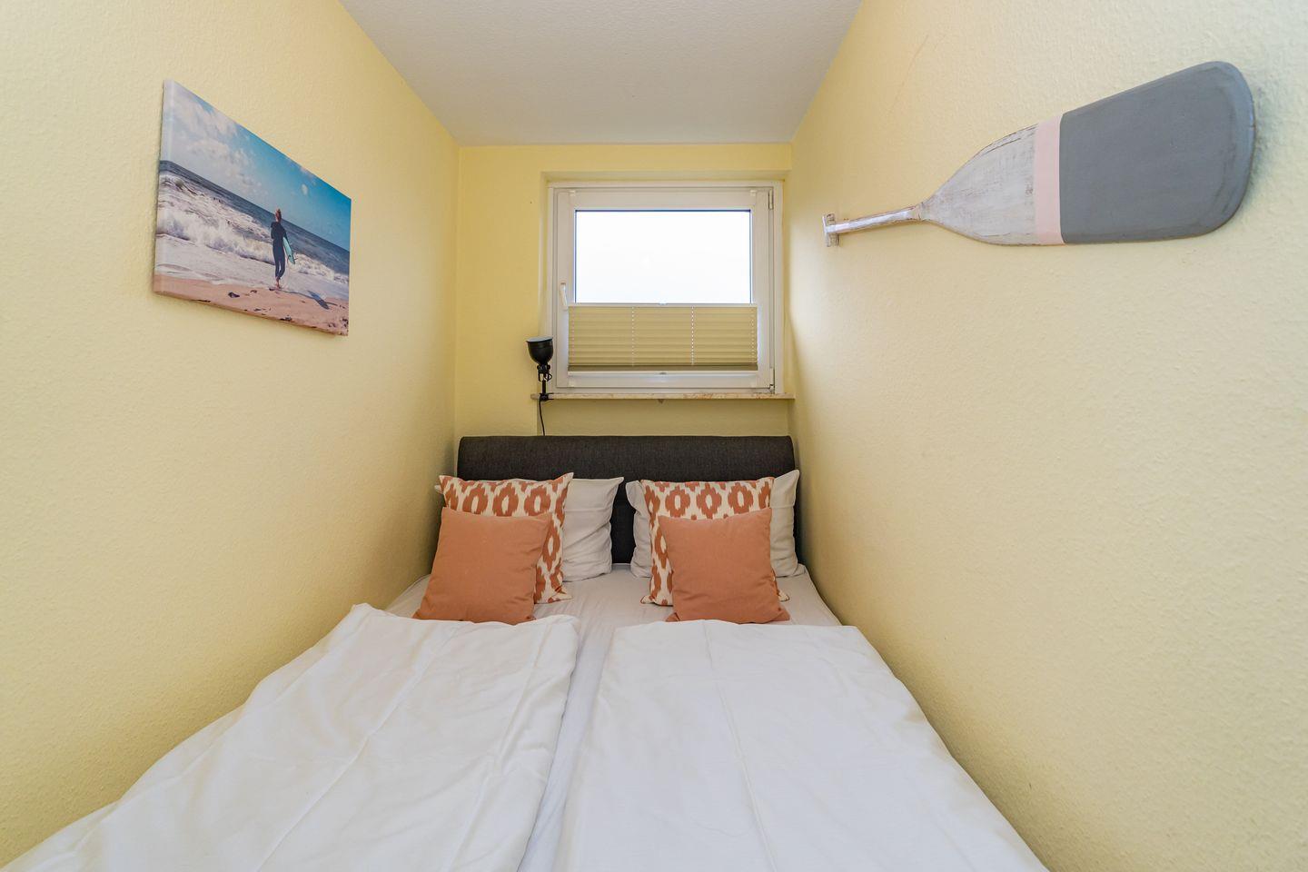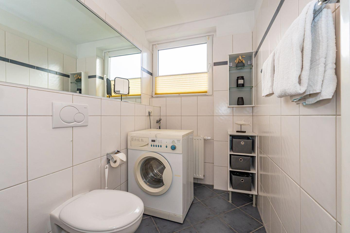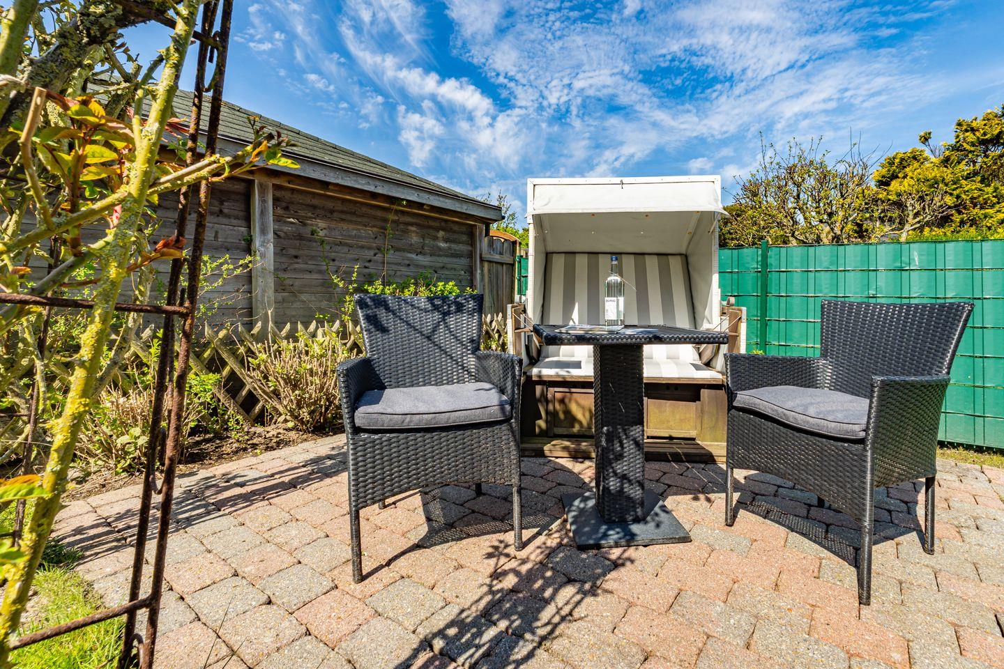 Willkommen in unserer charmanten Ferienwohnung "Tom" im Süden von Westerland auf der wunderbaren Insel Sylt! Die Ferienwohnung erstreckt sich über 58 m² und befindet sich im 1 OG. Sie betreten die Ferienwohnung durch einen Flur und werden von einem einladenden Wohnzimmer empfangen, das mit einem komfortablen Sofa und einem Esstisch ausgestattet ist. Hier können Sie entspannen, gesellige Abende verbringen oder beim Fernsehen die neuesten Filme genießen. Die offene Küche ist perfekt ausgestattet und lässt keine Wünsche offen: Ein Cerankochfeld, Backofen, Mikrowelle, Kühlschrank mit Gefrierfach, Spülmaschine sowie Kaffeemaschine und Toaster stehen für Ihre kulinarischen Abenteuer bereit. Genießen Sie die kleine Terrasse, die mit Gartenmöbeln und einem Strandkorb ausgestattet ist. Hier können Sie die Sonne genießen, die frische Seeluft schnuppern oder einfach nur entspannen und den Blick auf die Umgebung schweifen lassen. Die Ferienwohnung verfügt über zwei gemütliche Schlafzimmer, die für erholsame Nächte sorgen. Das Badezimmer ist mit einer Dusche, WC und Waschmaschine ausgestattet. Ein PKW Stellplatz steht Ihnen am Haus zur Verfügung.