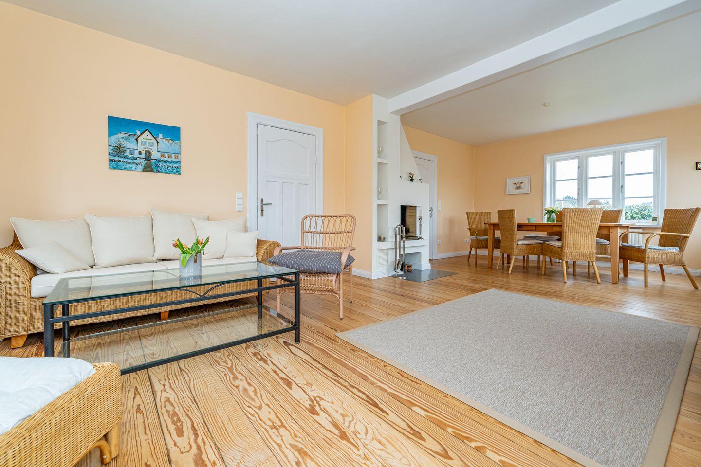 großer Wohnraum mit Sitzecke, offenen Kamin, Essplatz, Kabel-TV mit Streamingdienst, WLAN