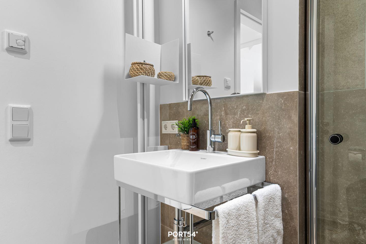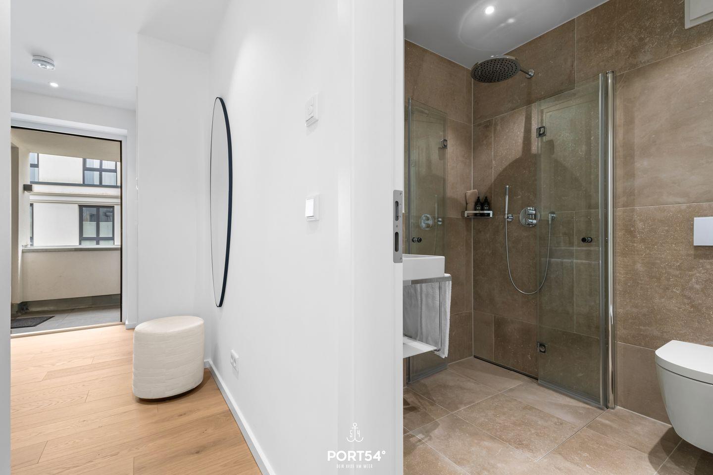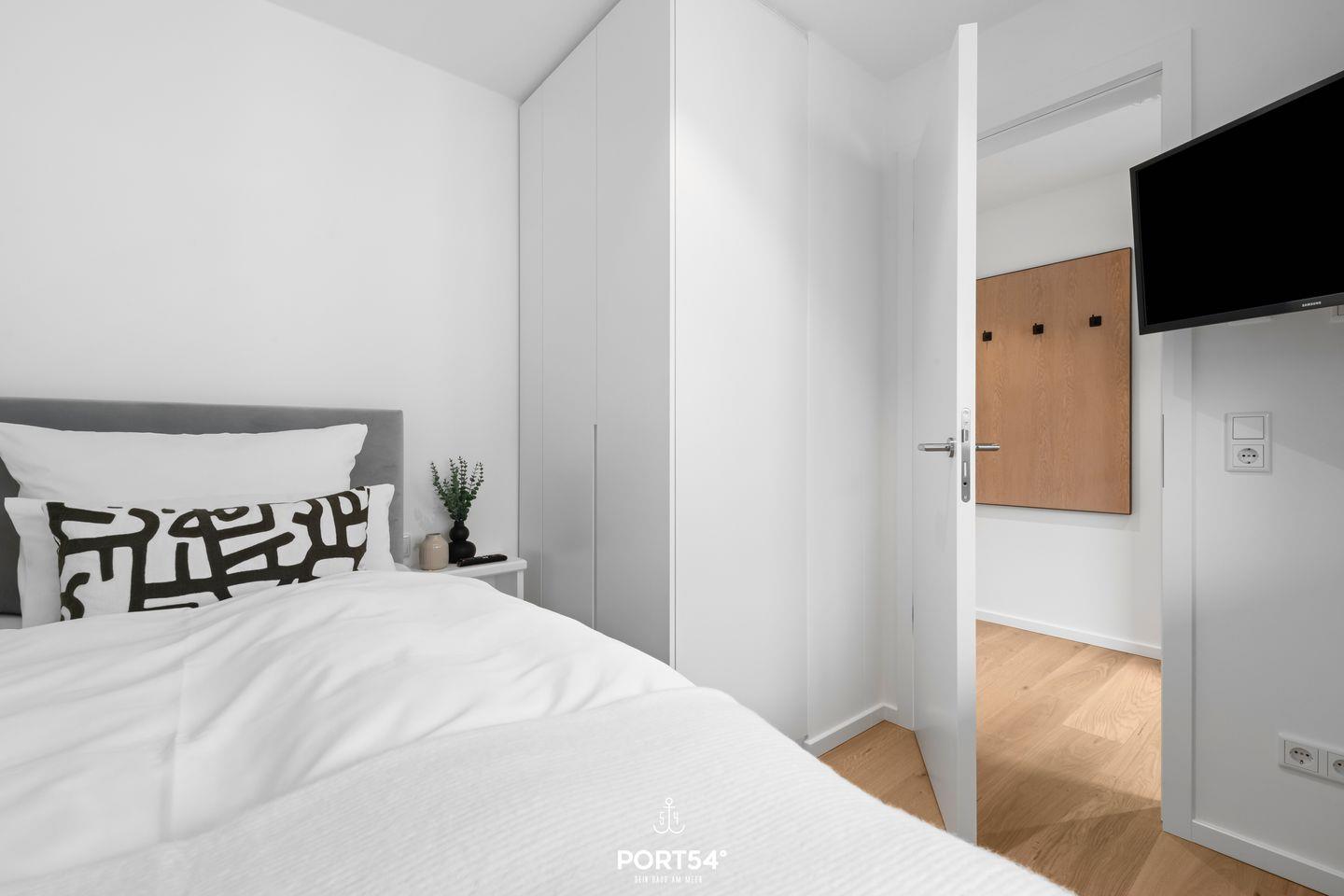 Das Luxus Maisonette Apartment bietet im 1. und 2. Obergeschoss Platz für bis zu drei Personen. Auf der ersten Etage erwarten Sie die beiden Schlafzimmer eins mit einem Doppelbett (180x 200 cm) und eins mit Einzelbett (100 x 200 cm), Flachbild-TV und Verdunkelungsmöglichkeiten, perfekt für Ihre Nachtruhe. Außerdem finden Sie auf der Etage das Master-Bad mit Doppelwaschbecken, Regendusche, Föhn und WC. Im zweiten Obergeschoss befindet sich der offene Wohn- und Essbereich mit vollausgestatteter Küche, Balkon und Zugang zur großen Dachterrasse. Hier haben Sie genug Platz um die frische Nordseeluft auf dem Dach zu genießen.