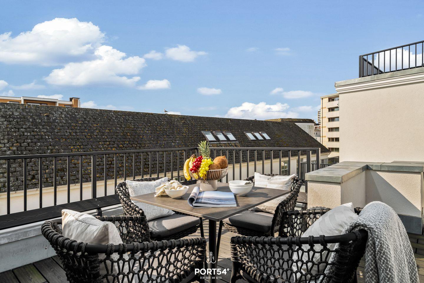 Unser Lieblingsplatz ist die Dachterrasse, genießen Sie dort die frische Nordseeluft.