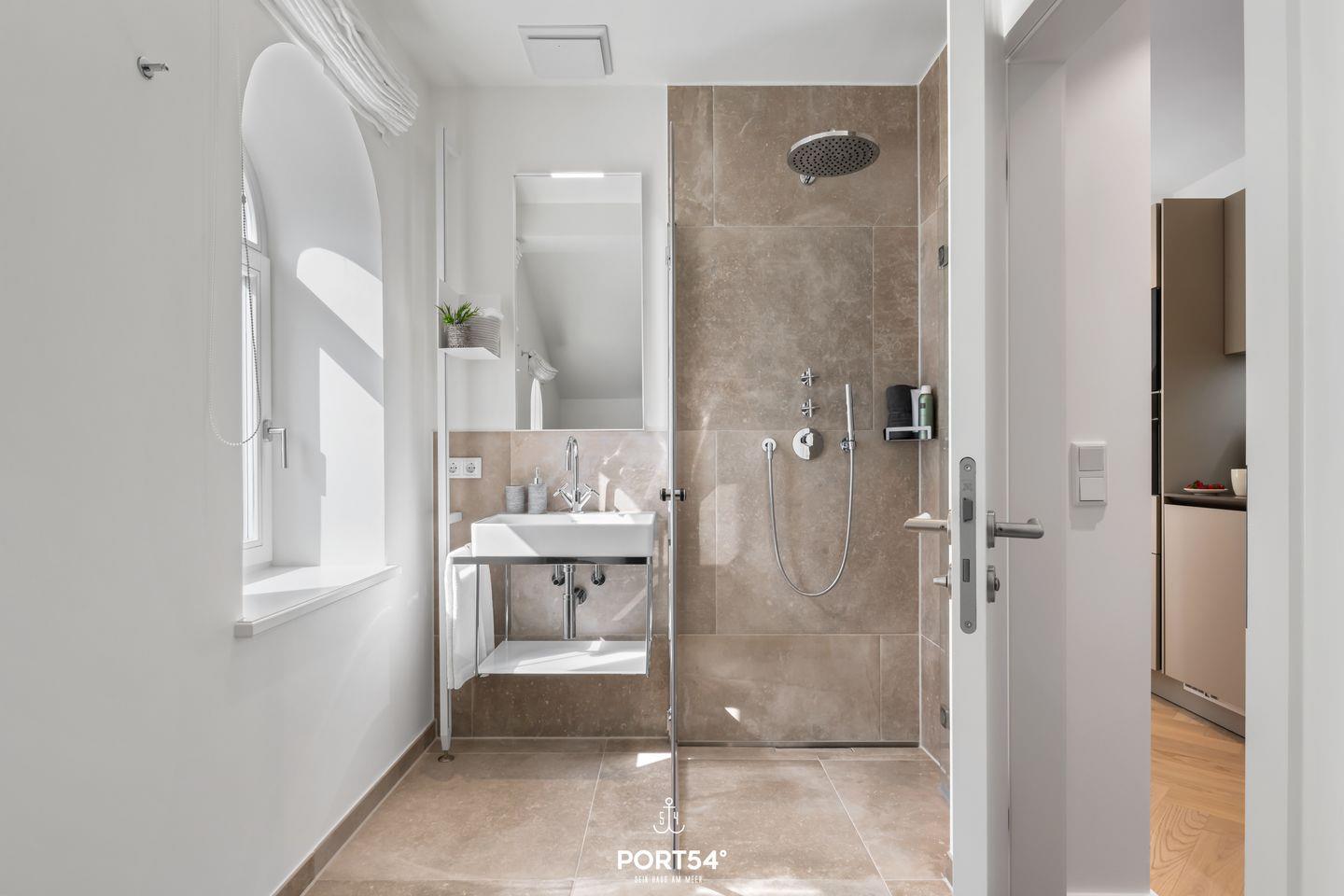 Das Luxus 2 Zimmer Apartment bietet Platz für bis zu 2 Personen im ersten und zweiten Obergeschoss. Es erwartet Sie ein offener Wohnbereich mit einem gemütlichem Sofa und großem Flachbild-TV, die voll ausgestattete Küche, sowie ein Schlafzimmer mit großem Doppelboxspringbett, mit Flachbild-TV. Außerdem das exklusive Bad mit großer Regendusche, Waschbecken, Föhn und WC.