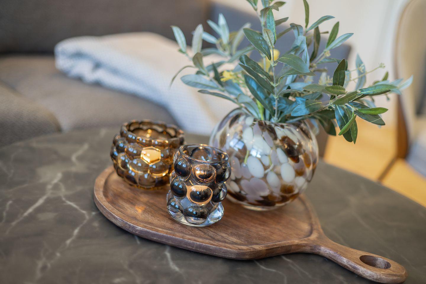 Mit einer großzügigen Grundfläche von 54 m² bietet die Ferienwohnung ausreichend Platz für bis zu 4 Personen (2 Erwachsene + 2 Kinder). Die lichtdurchfluteten Räume sind über zwei Etagen geschmackvoll eingerichtet, und die offene Küche, die zum Wohnzimmer hin gestaltet ist, lädt dazu ein, kulinarische Köstlichkeiten zuzubereiten. Hier findest du alle notwendigen Geräte wie einen Elektro-Herd mit Induktionskochfeld, einen Backofen, eine Spülmaschine, einen Kühlschrank mit Gefrierfach und vieles mehr. Das Schlafzimmer ist mit einem gemütlichen Doppelbett, einem Kleiderschrank vom Tischler, Verdunkelungsmöglichkeiten und einem Smart TV 43'' ausgestattet. In der zweiten Etage findest du für zwei Kinder oder einen Erwachsenen eine gemütliche Schlafcouch (140x200 cm), einen Smart TV mit 50'' und eine Sony Playstation mit 2 Controllern sowie FIFA für deine Unterhaltung.