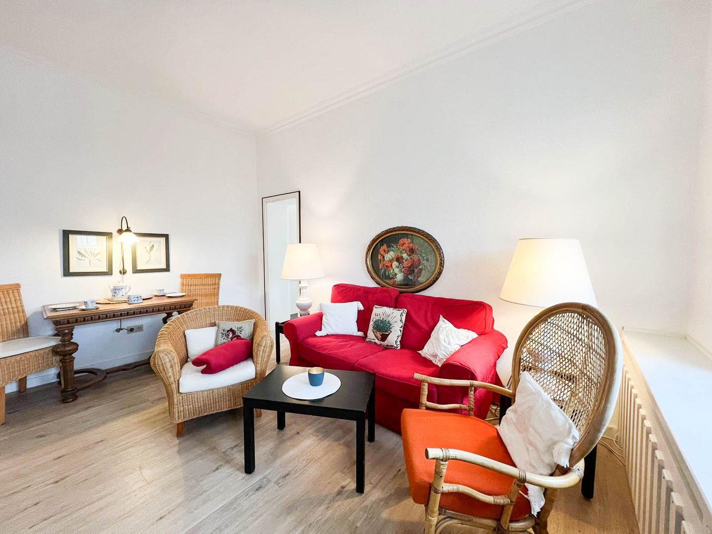 Die Wohnung bietet dir alles, was du für einen entspannten Aufenthalt brauchst – von einem gemütlichen Wohnbereich über eine gut ausgestattete Küche bis hin zu einem komfortablen Schlafzimmer. Perfekt für Paare, Alleinreisende oder kleine Familien, die Sylt in vollen Zügen genießen wollen. Cafés, Restaurants und kleine Boutiquen sind ebenfalls in der Nähe – du kannst das Auto getrost stehen lassen!