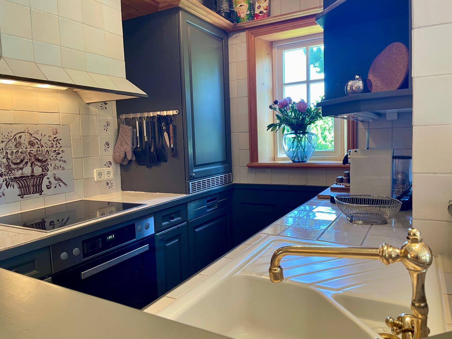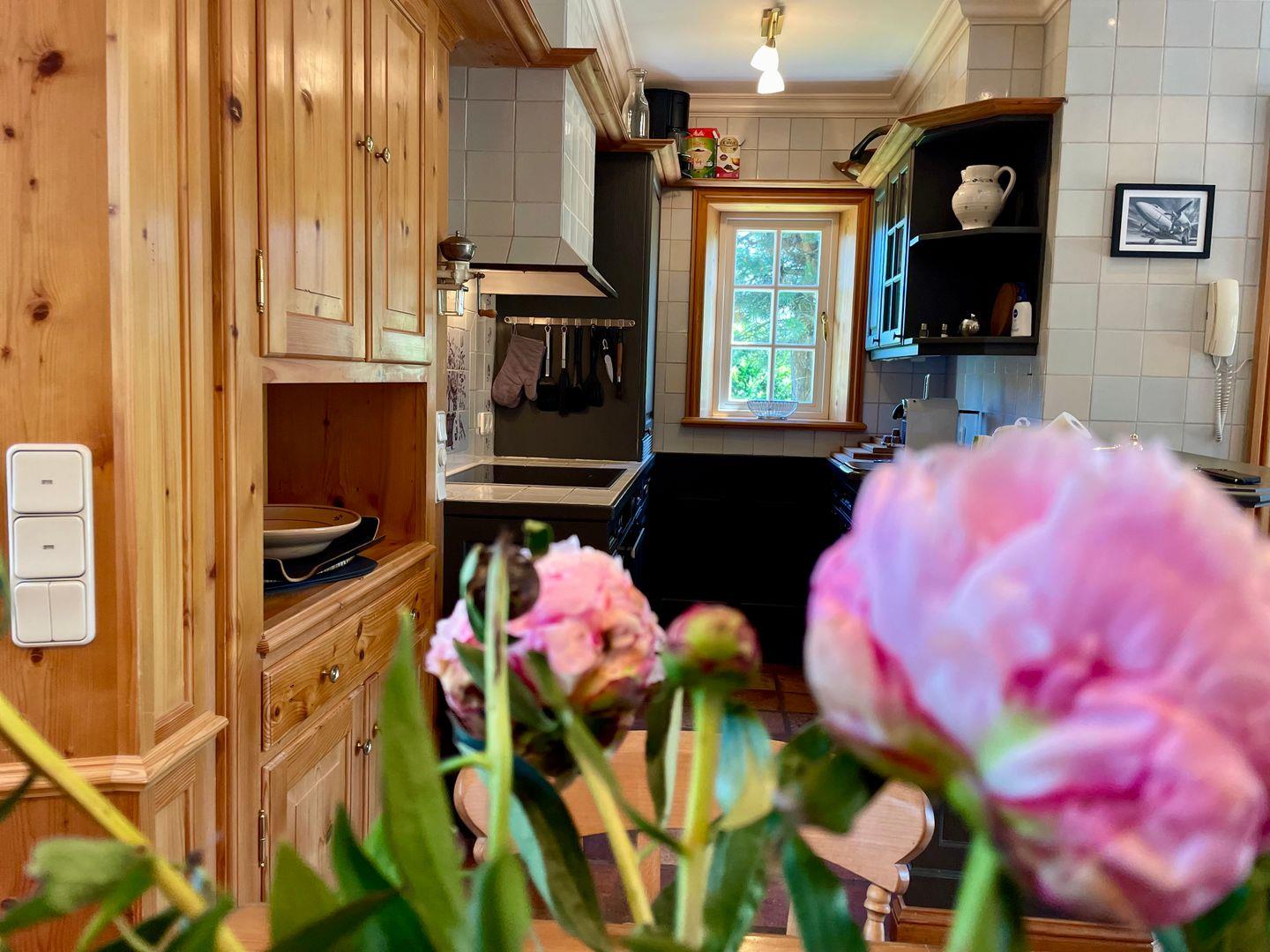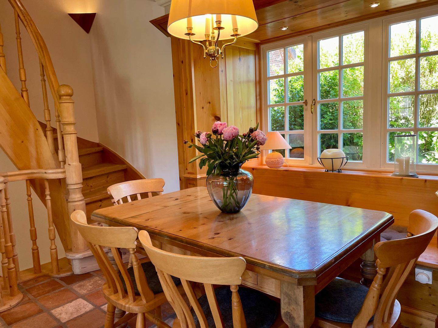 In der Küche sind alle gängigen Küchenutensilien (Geschirrspüler, Backofen, Gefrierfach), eine Nespresso sowie einer Filter Kaffeemaschine vorhanden. Genießen Sie in diesem Haus viel Holz, antike Kacheln an Böden und Wänden, typische Sylter Tischlereinbauten in den Räumen, geschmackvolle Möblierung und eine harmonische Ausstattung.