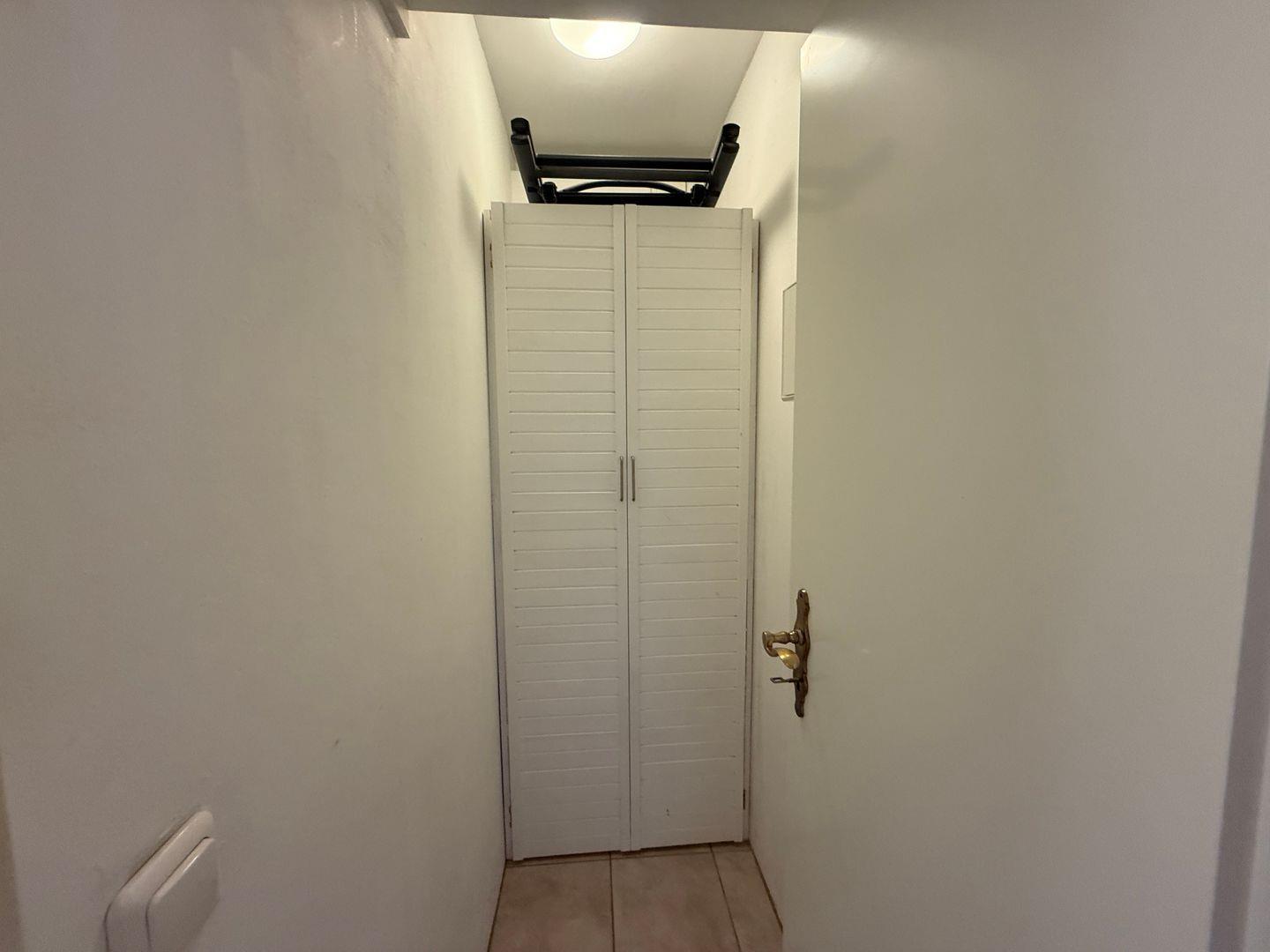 Der großer Schrank bietet viel Platz zum Verstauen.