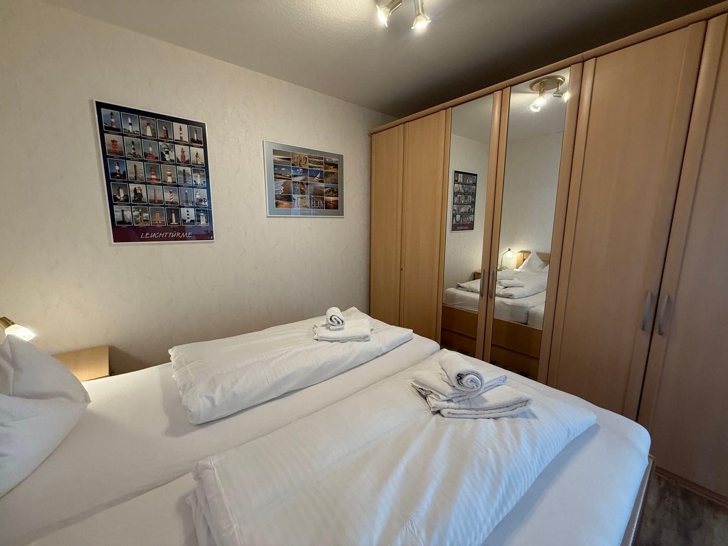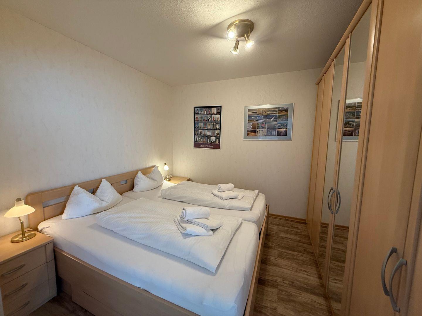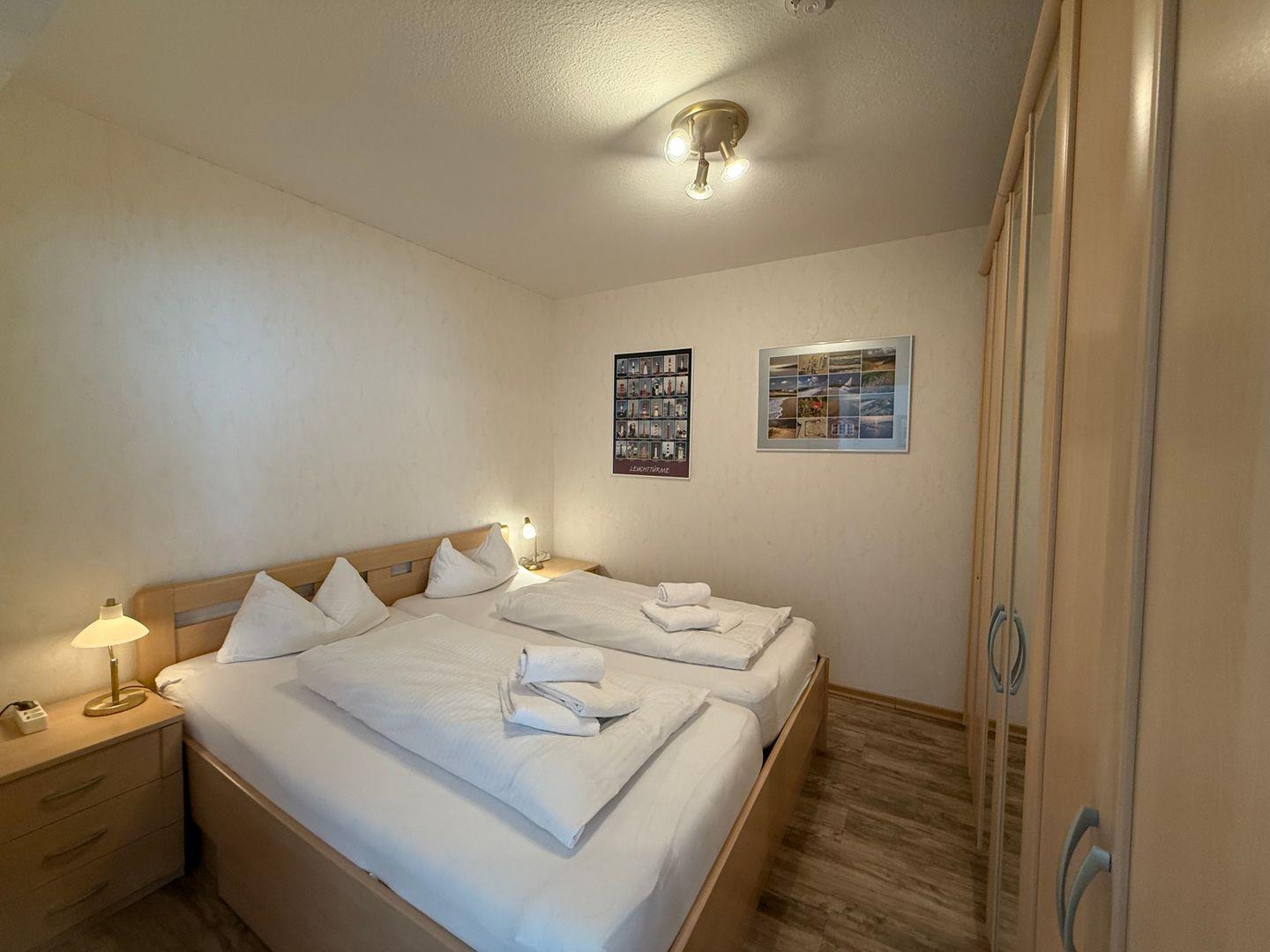 In dem vom Wohnbereich getrennten, offenen Schlafbereich, sorgt ein hochwertiges Doppelbett (1,80 x 2,00 m) für einen guten Schlaf.
