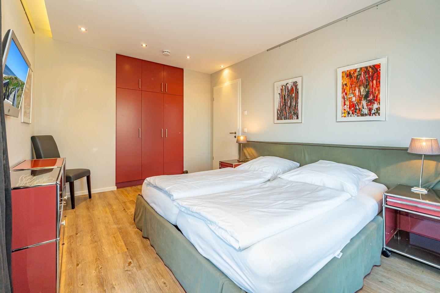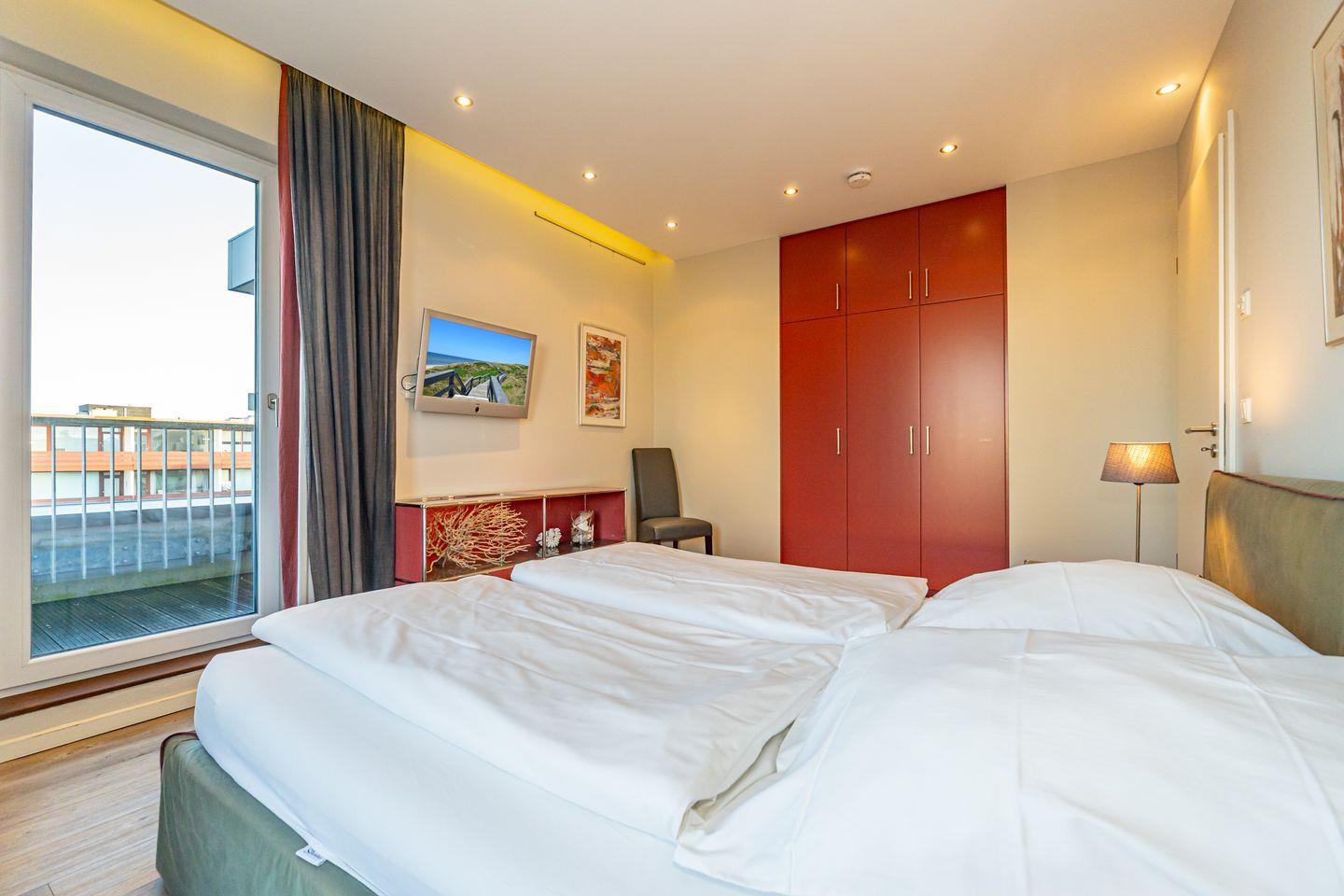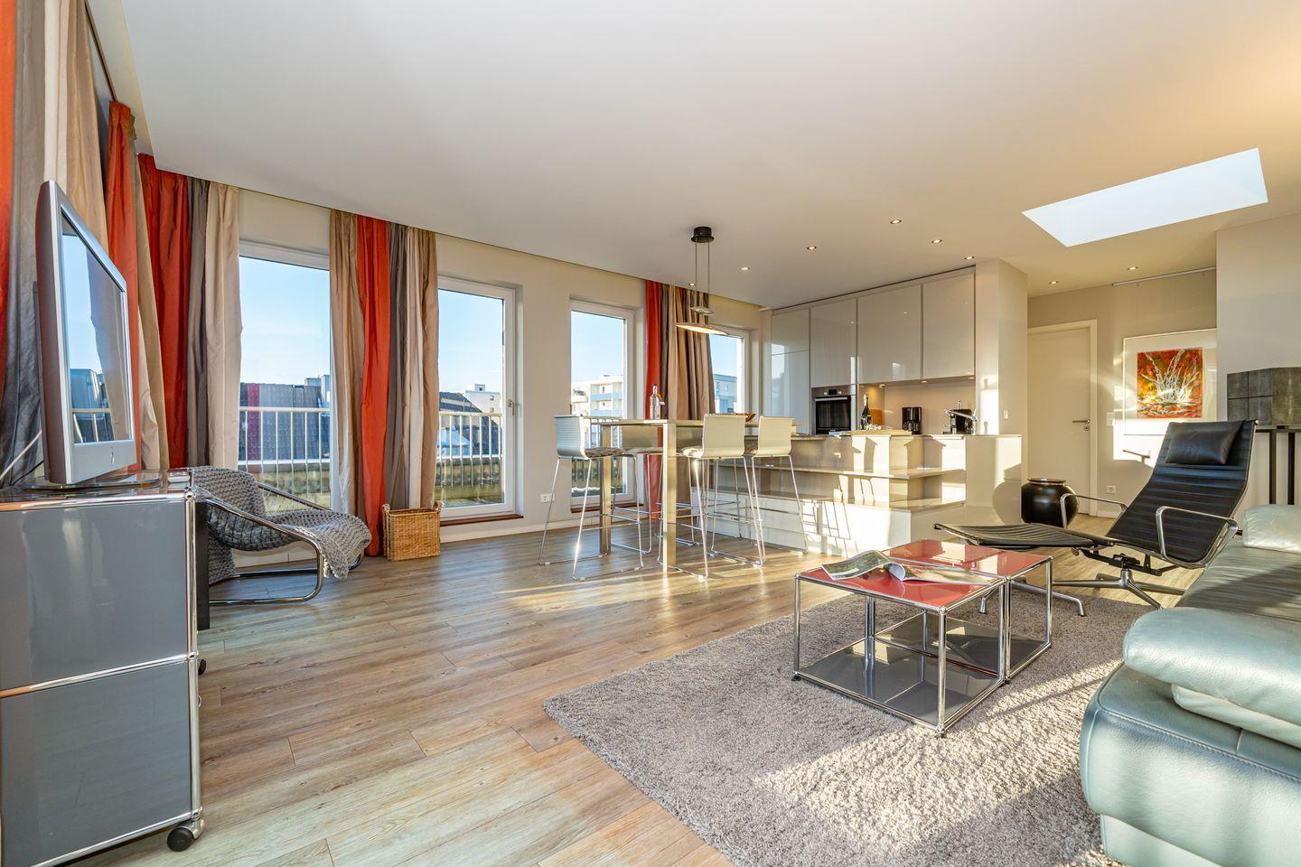 Das Penthouse bietet auf 100 m² zwei Schlafzimmer, luxuriöse Ausstattung und einen Balkon. Die strandnahe Lage sowie ein kostenfreier Tiefgaragen Privatparkplatz sorgen für einen komfortablen Aufenthalt.