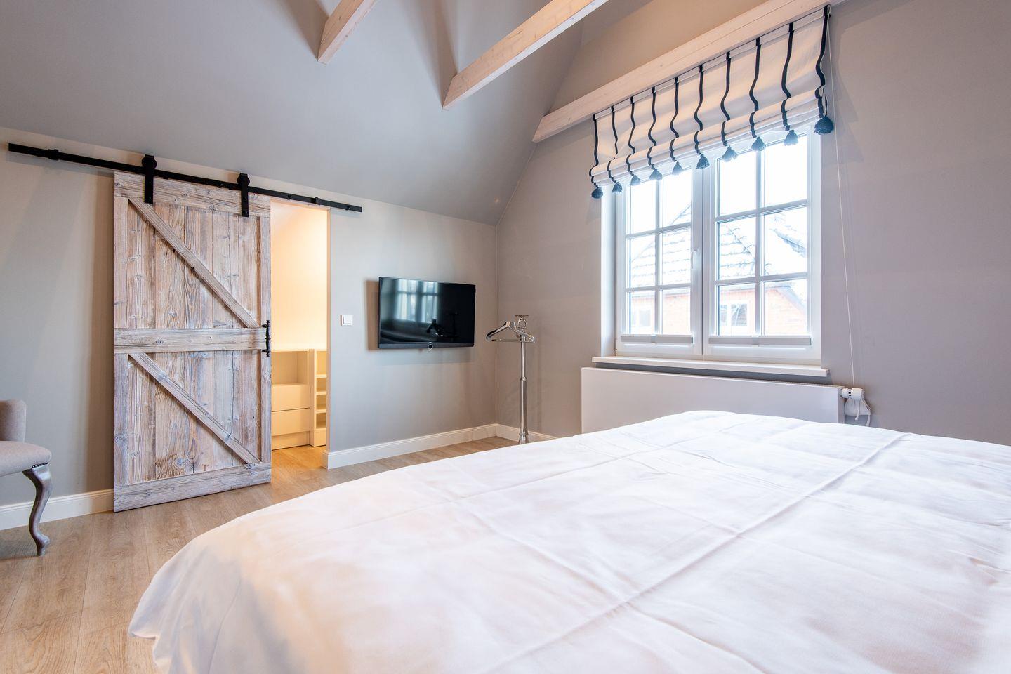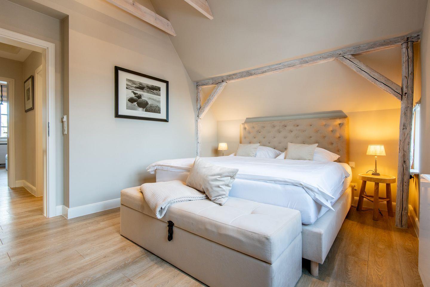 Drei stilvoll eingerichtete Schlafzimmer bieten höchsten Schlafkomfort: Zwei Schlafzimmer sind mit komfortablen Doppel-Boxspringbetten ausgestattet, das dritte verfügt über zwei Einzel-Boxspringbetten und ein eigenes Duschbad – perfekt für Kinder oder mitreisende Freunde. So hat jeder seinen Rückzugsort zum Entspannen und Kraft tanken.
