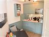 Treten Sie ein in den schönen und hellen Wohn-/Essbereich mit einer modernen Küchenzeile, wo Sie sich kulinarisch verwöhnen können. Genießen Sie entspannte Stunden in dieser gemütlichen Atmosphäre.