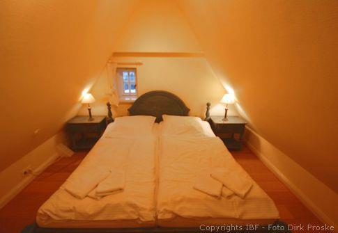 Im Dachgeschoss finden Sie den gemütlichen Schlafraum mit einem komfortablen Doppelbett, wo Sie erholsame Nächte verbringen können.