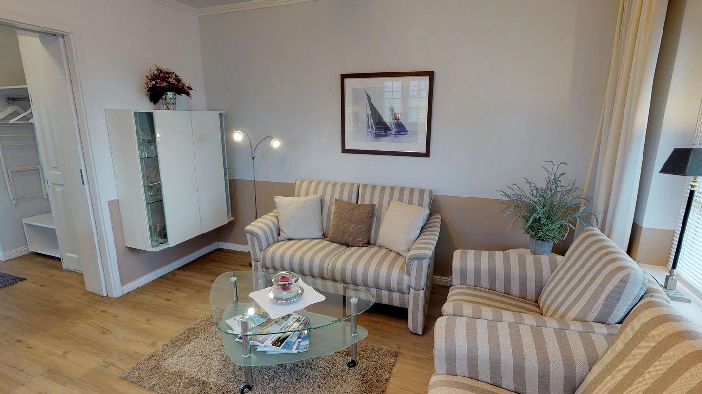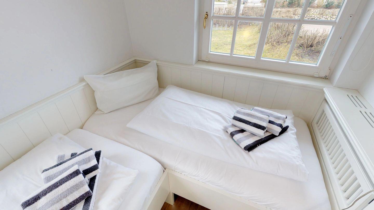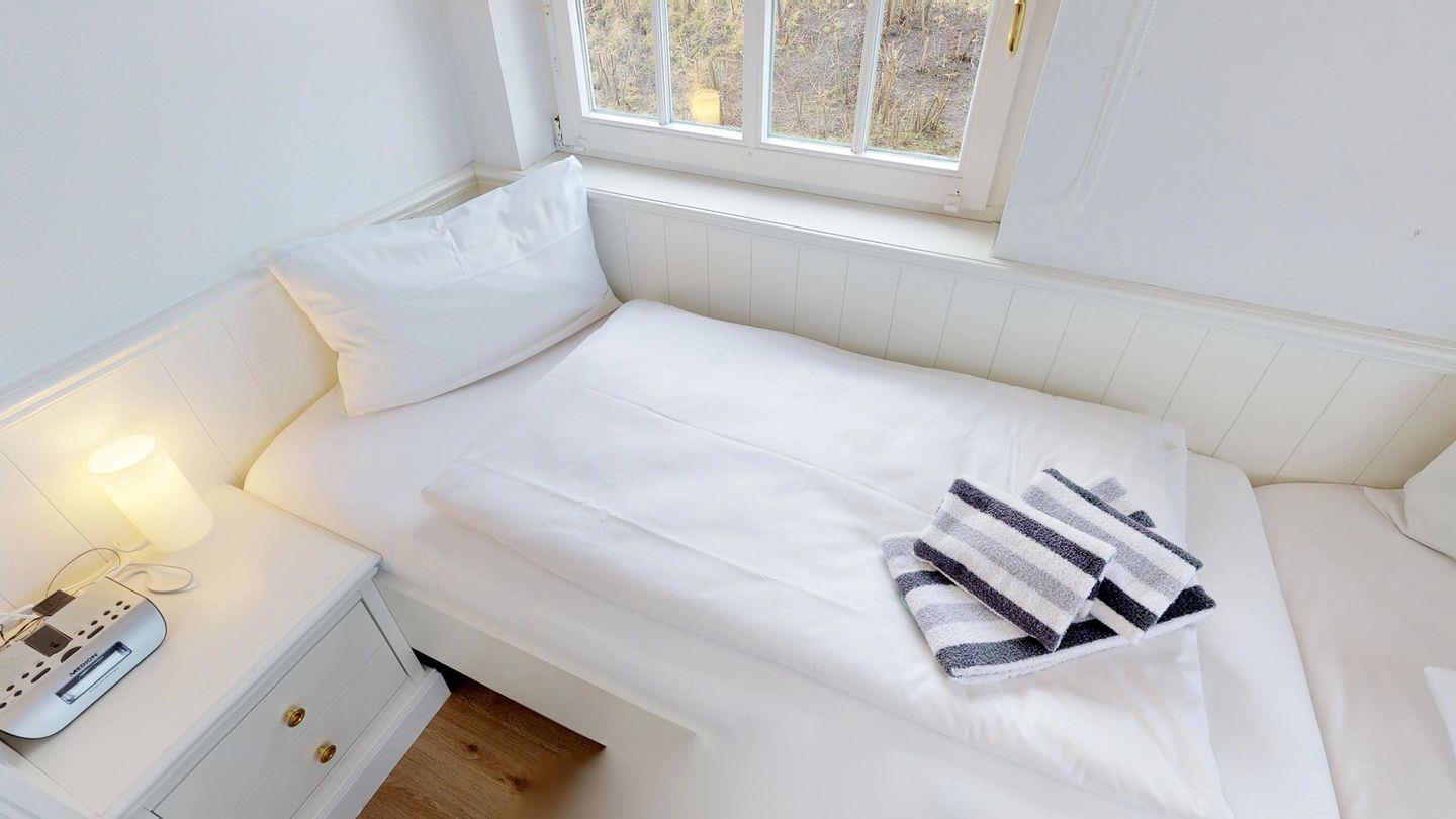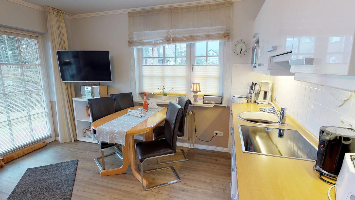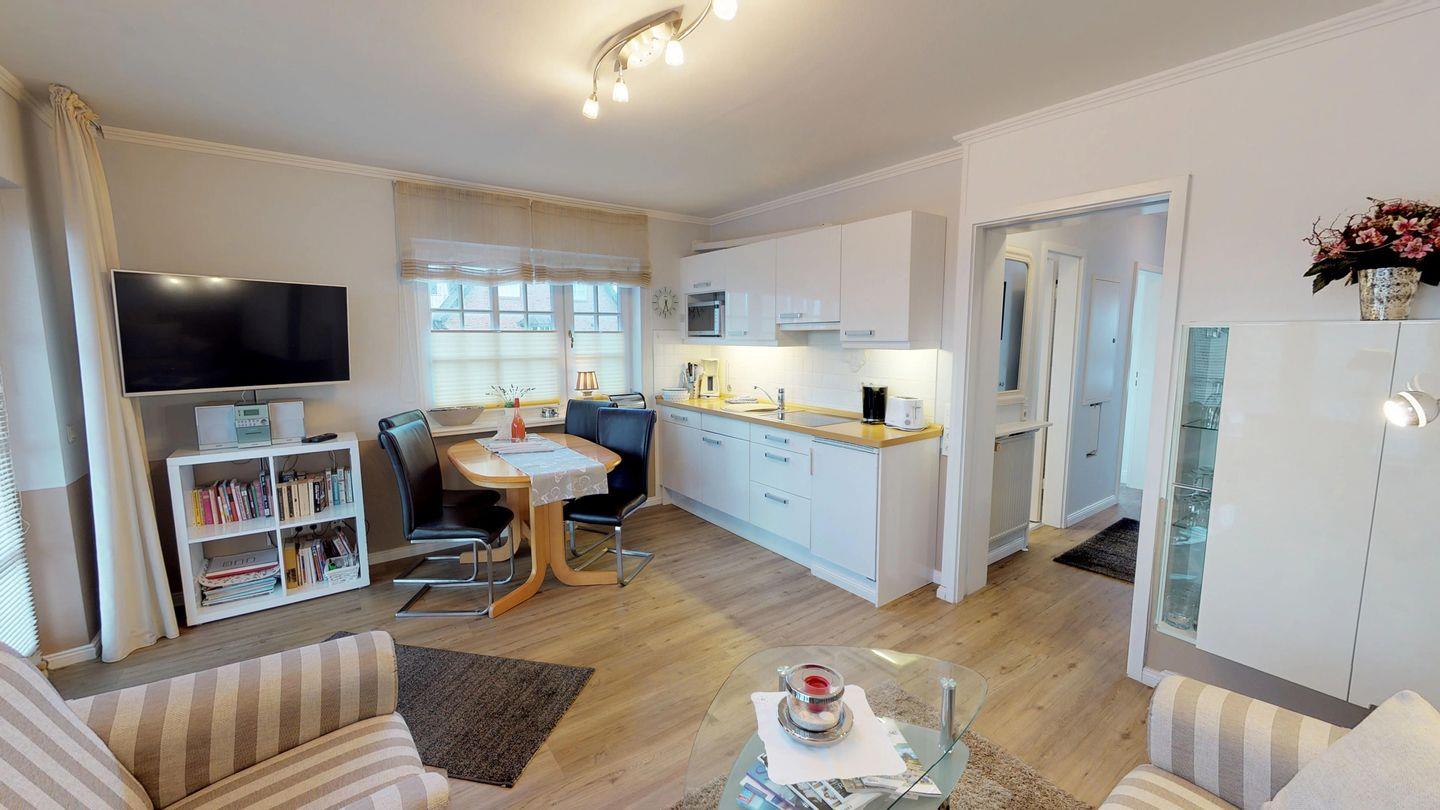Dieses Appartement, mit ca. 45 qm Fläche auf einer Ebene im Erdgeschoss, umfasst einen einladenden Wohnraum mit Küchenzeile und kleiner Essecke, einen separaten Schlafraum mit zwei Einzelbetten über Eck sowie ein modernes Duschbad/WC. Höchster Komfort vereint mit strandnaher Lage und einem malerischen Blick auf eine unberührte Heidefläche von 8.000 qm machen den Aufenthalt in dieser Wohnanlage zu einem einzigartigen Erlebnis.