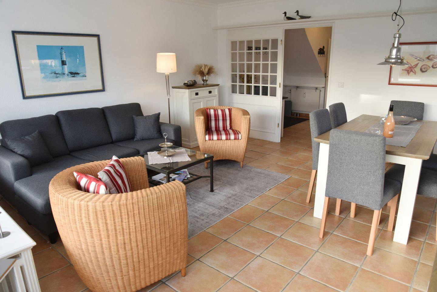 Dieses einladende Ferienhaus, ein ruhiges Endteil mit großem Garten und Südterrasse, besticht durch seine idyllische Lage in der Nähe des Dorfteiches. Im Erdgeschoss erwartet Sie ein freundlicher und heller Wohnraum mit gemütlicher Essecke, begleitet von einer separaten Küche und einem komfortablen Duschbad. Auf der oberen Ebene finden Sie einen Doppelschlafraum mit Balkon sowie einen weiteren Doppelschlafraum mit 2 Einzelbetten und ein Wannenbad. Der dritte Doppelschlafraum mit zwei Einzelbetten befindet sich im Dachgeschoss. Ein PKW-Stellplatz steht Ihnen direkt vor dem Haus zur Verfügung.