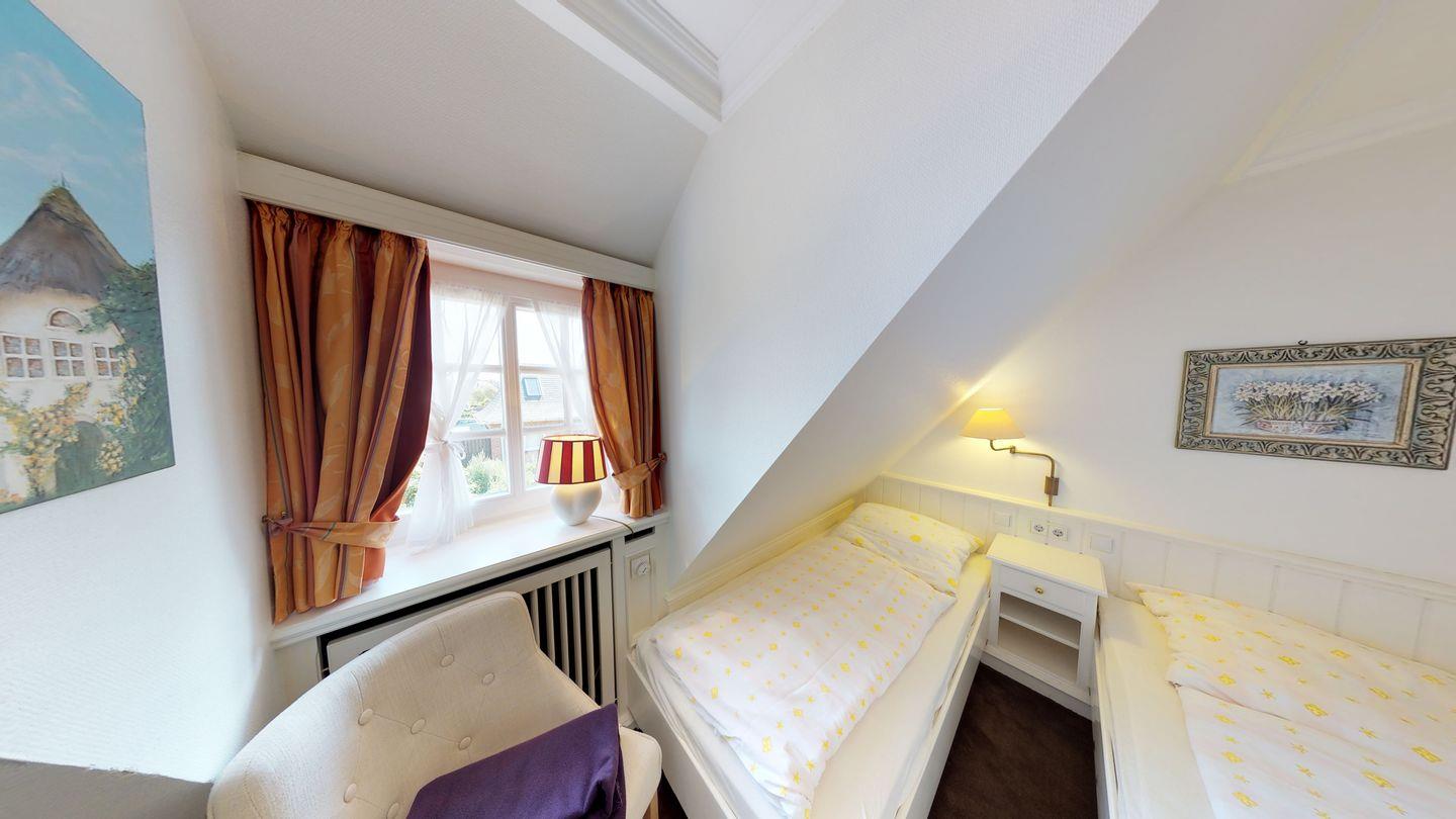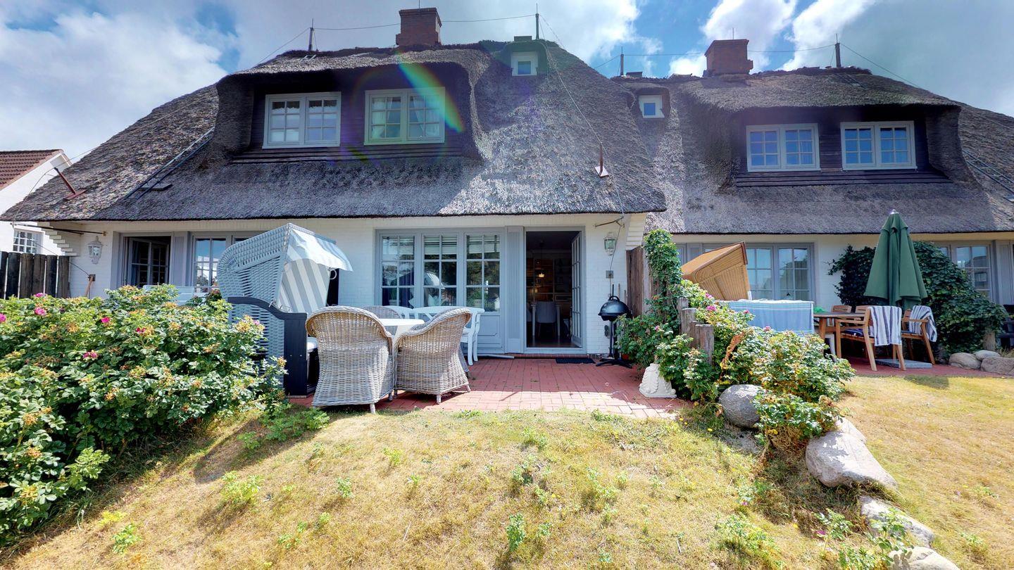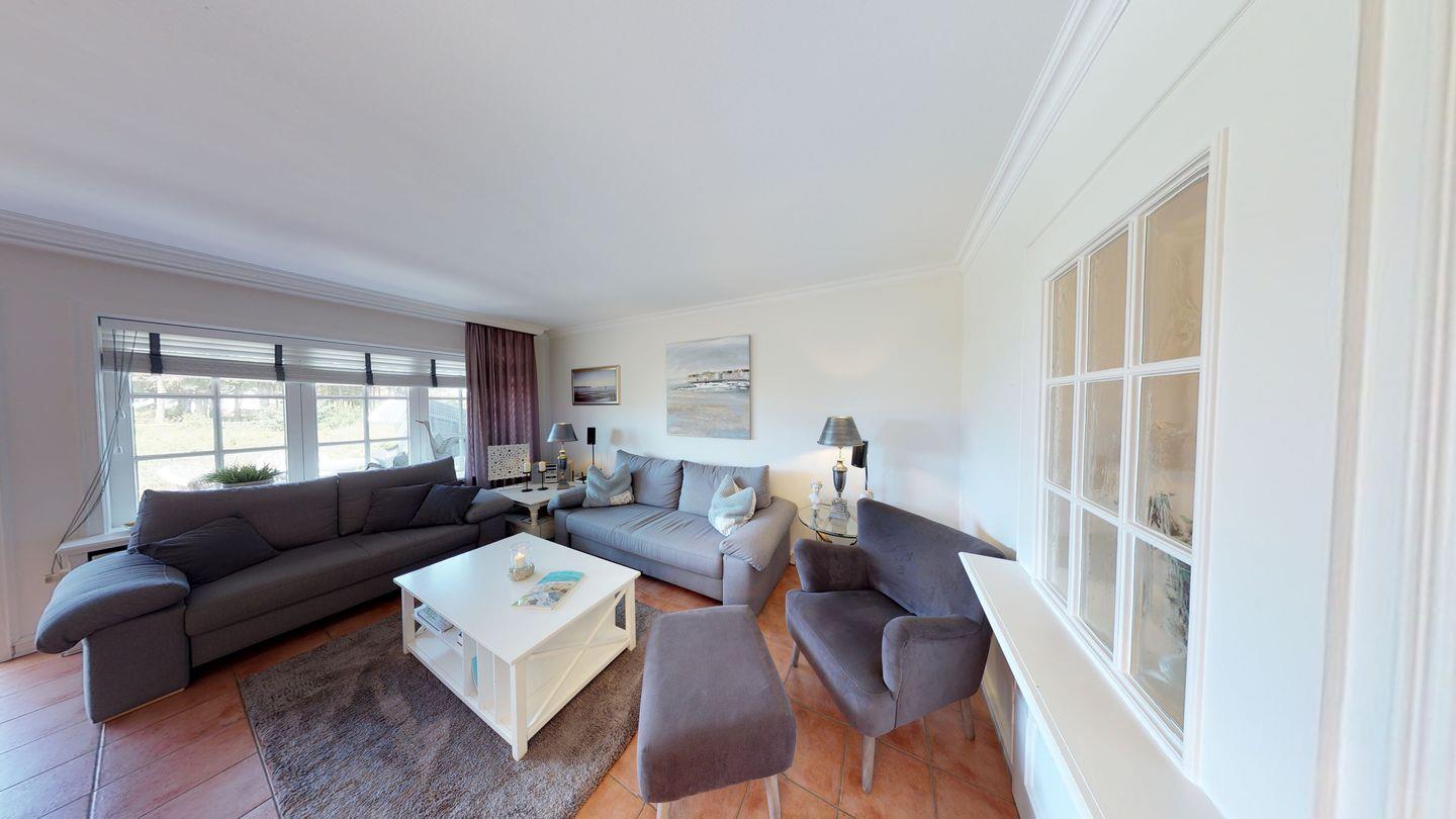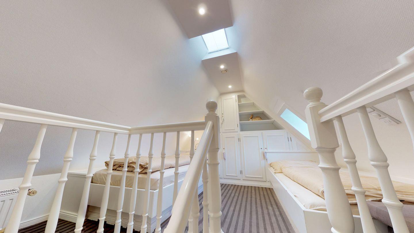 Dieses zauberhafte Hausteil am Rande des Strandes verspricht einen erholsamen Urlaub und bietet auf drei Ebenen alles, was das Herz eines Urlaubers höherschlagen lässt. Im Erdgeschoss erwartet Sie neben dem Dusch-/Badezimmer WC ein großzügiger Wohnraum mit einer modernen Pantryküche. Die Westterrasse ist direkt vom Wohnraum aus zugänglich. Im Obergeschoss finden Sie einen Doppelschlafraum sowie einen weiteren Schlafraum mit zwei Einzelbetten und ein Dusch/Badezimmer WC. Im Dachgeschoss befindet sich ein zusätzlicher Einzel- oder Doppelschlafraum.