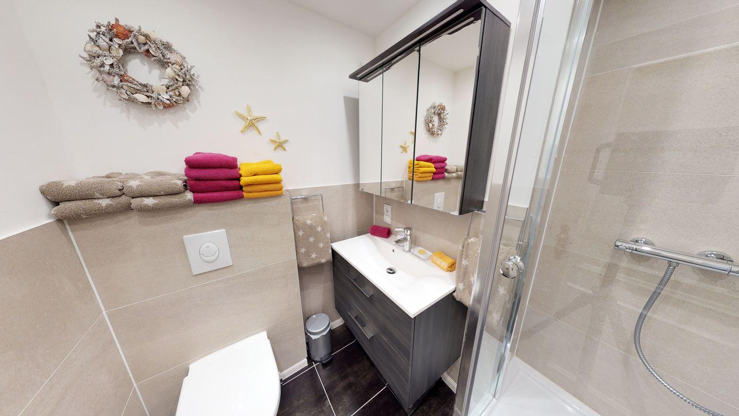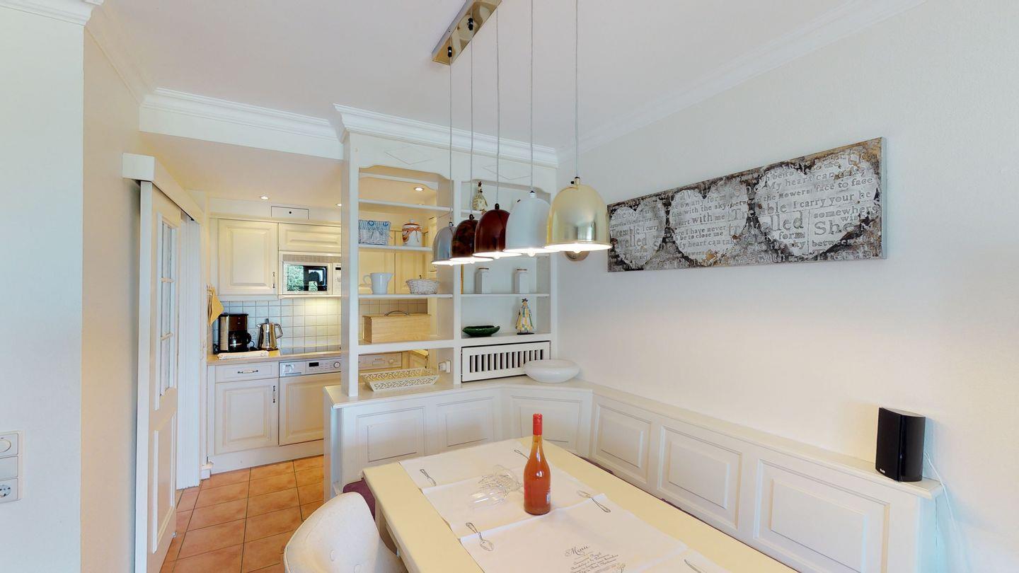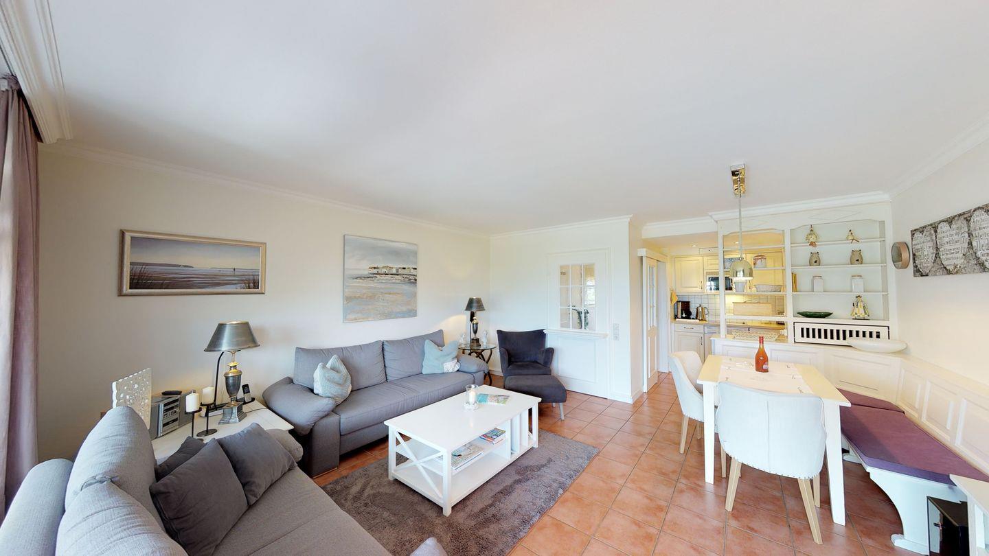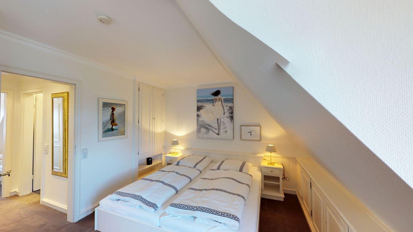 Dieses zauberhafte Hausteil am Rande des Strandes verspricht einen erholsamen Urlaub und bietet auf drei Ebenen alles, was das Herz eines Urlaubers höherschlagen lässt. Im Erdgeschoss erwartet Sie neben dem Dusch-/Badezimmer WC ein großzügiger Wohnraum mit einer modernen Pantryküche. Die Westterrasse ist direkt vom Wohnraum aus zugänglich. Im Obergeschoss finden Sie einen Doppelschlafraum sowie einen weiteren Schlafraum mit zwei Einzelbetten und ein Dusch/Badezimmer WC. Im Dachgeschoss befindet sich ein zusätzlicher Einzel- oder Doppelschlafraum.