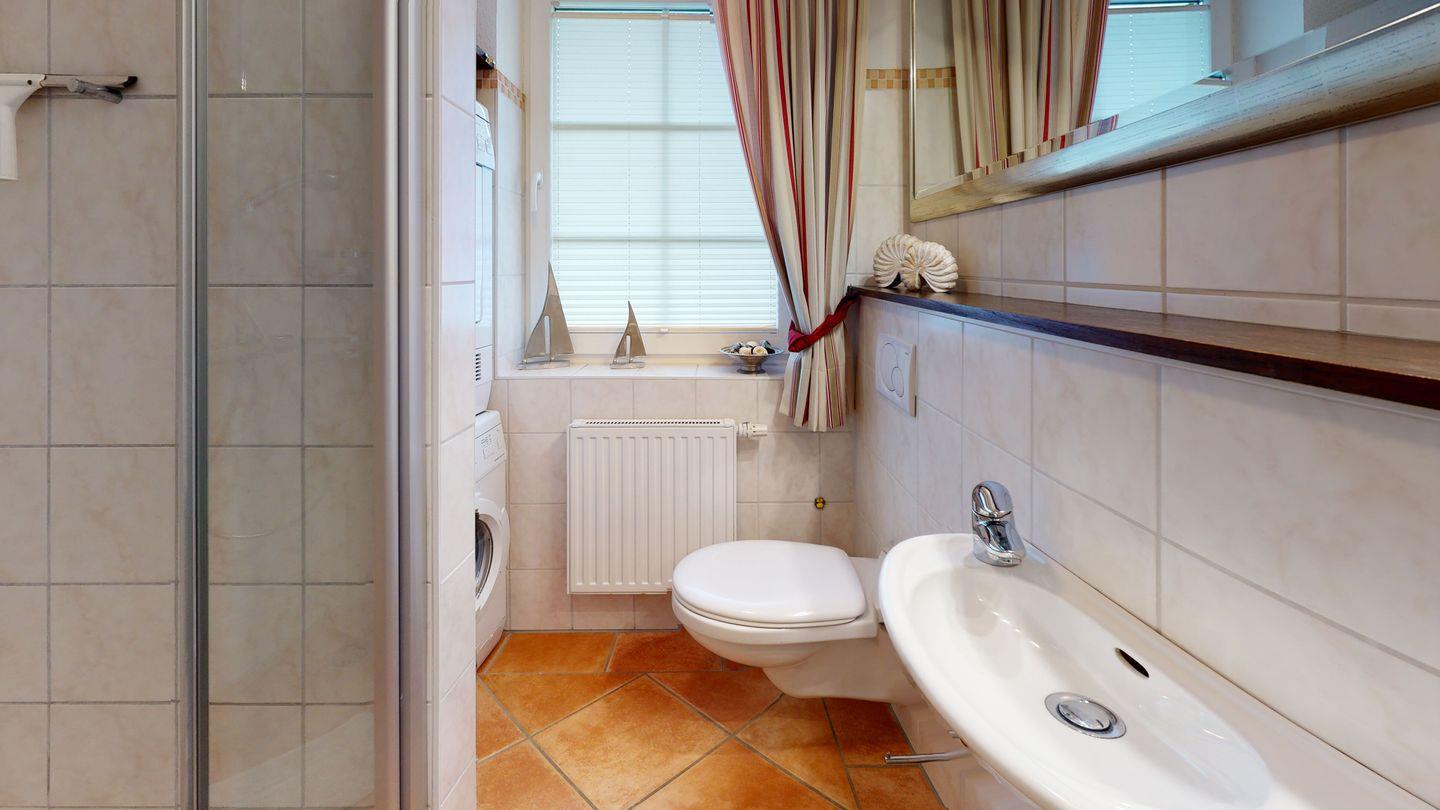 Die voll ausgestattete Küche im Erdgeschoss bietet Ihnen alles, was Sie für die Zubereitung Ihrer Lieblingsgerichte benötigen, während das Duschbad mit Waschmaschine und Trockner Ihren Aufenthalt noch komfortabler macht.