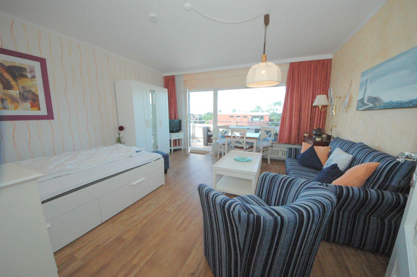 Der gemütliche Wohn-Schlafraum mit integriertem Essbereich lädt zum Verweilen ein und verspricht angenehme Stunden. Die neue kleine Küchenzeile mit Geschirrspüler ermöglicht Ihnen eine bequeme Selbstversorgung während Ihres Aufenthalts. Das moderne Duschbad rundet das Angebot ab und bietet Ihnen Komfort auf kleinem Raum.