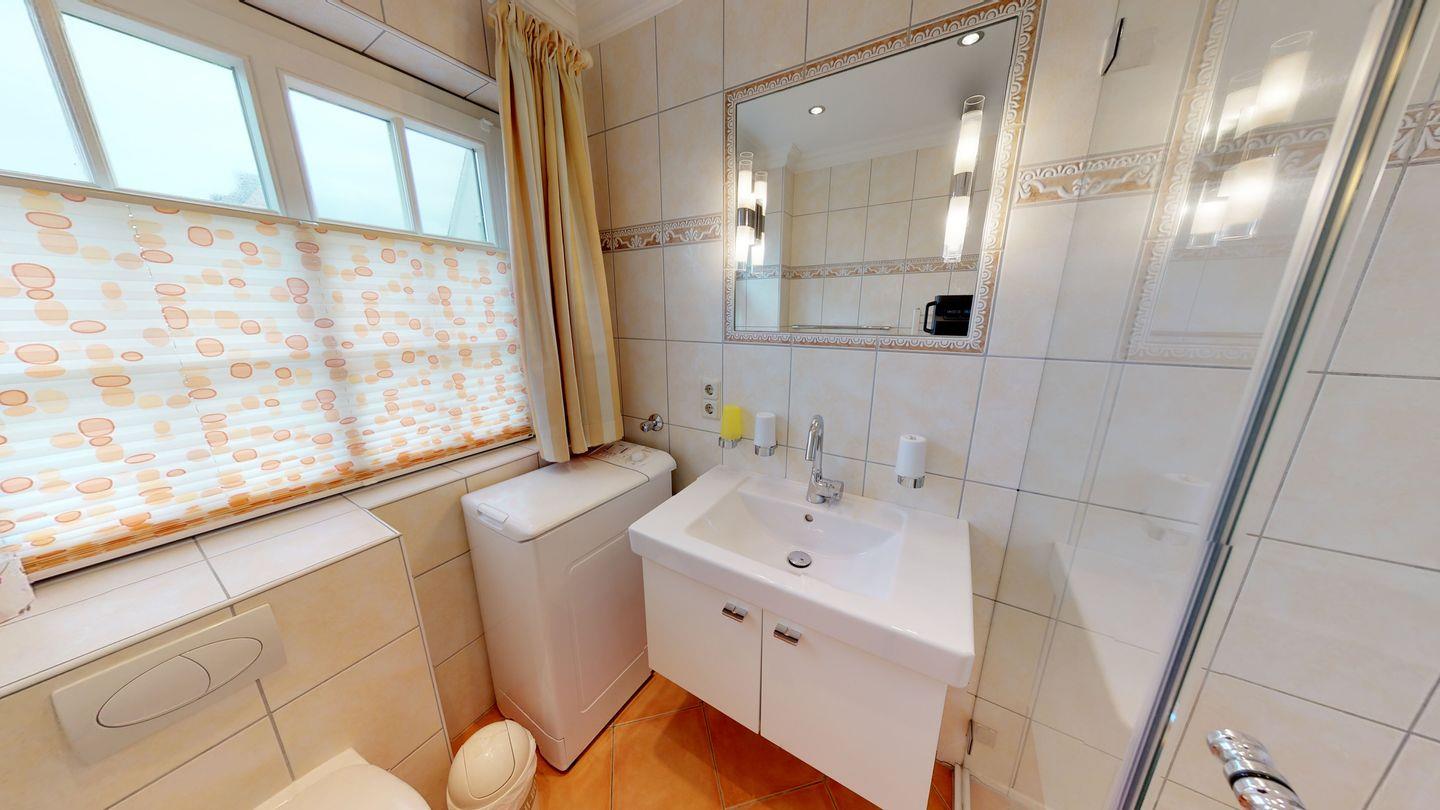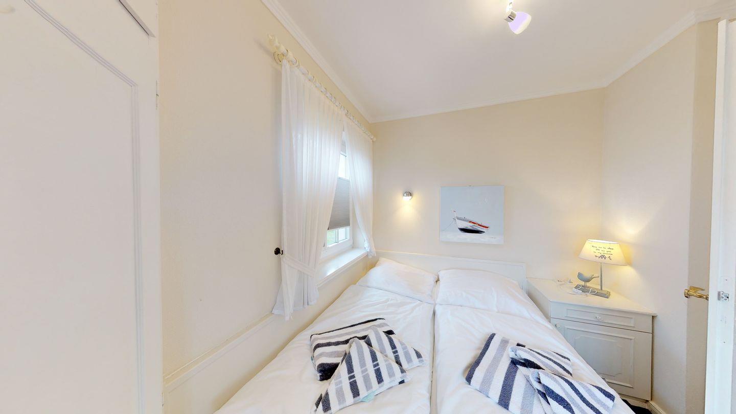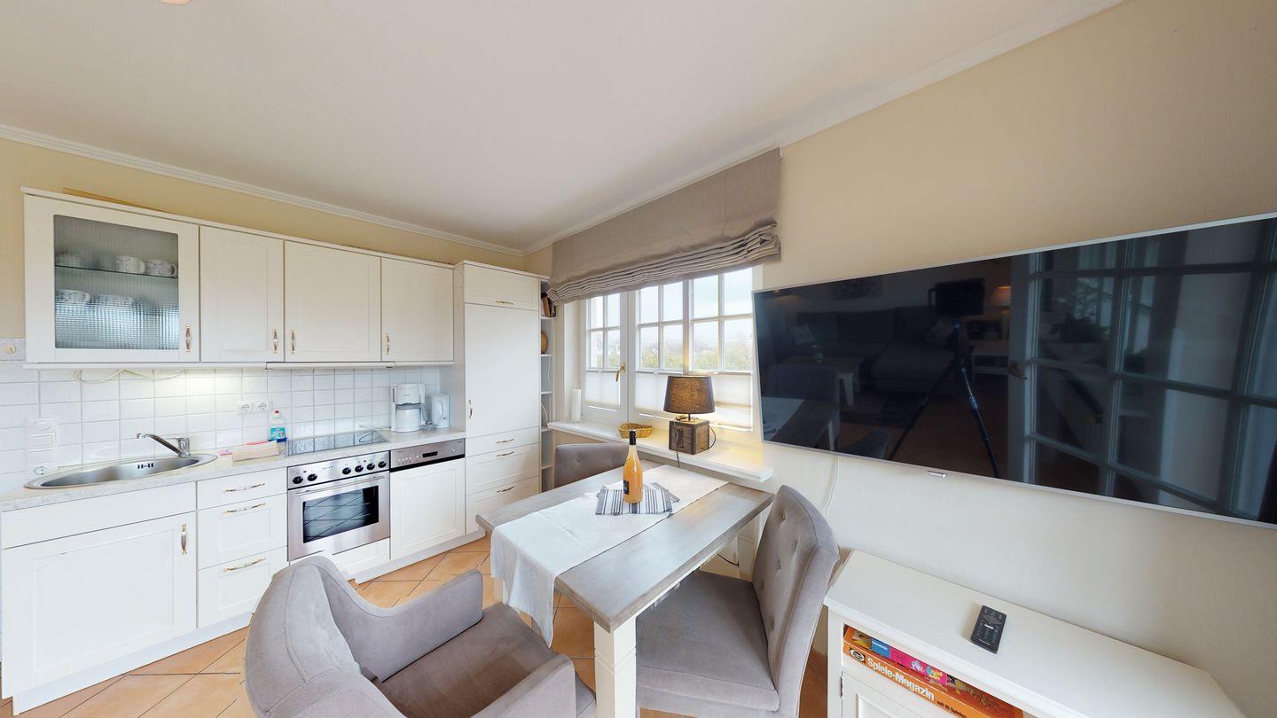 Diese exklusive Ferienwohnung bietet alles auf einer Ebene im Erdgeschoss. Die großzügige Südterrasse lockt mit einem Strandkorb und stilvollen Gartenmöbeln, die ideale Orte zum Entspannen und Genießen bieten. Die Wohnung selbst, mit etwa 45 qm Fläche, präsentiert einen geschmackvoll eingerichteten Wohnraum inklusive einer modernen Küchenzeile und einer gemütlichen Essecke. Ein separater Schlafraum verwöhnt mit einem komfortablen Doppelbett, und das elegante Dusch-/Badezimmer vervollständigt das gehobene Ambiente.