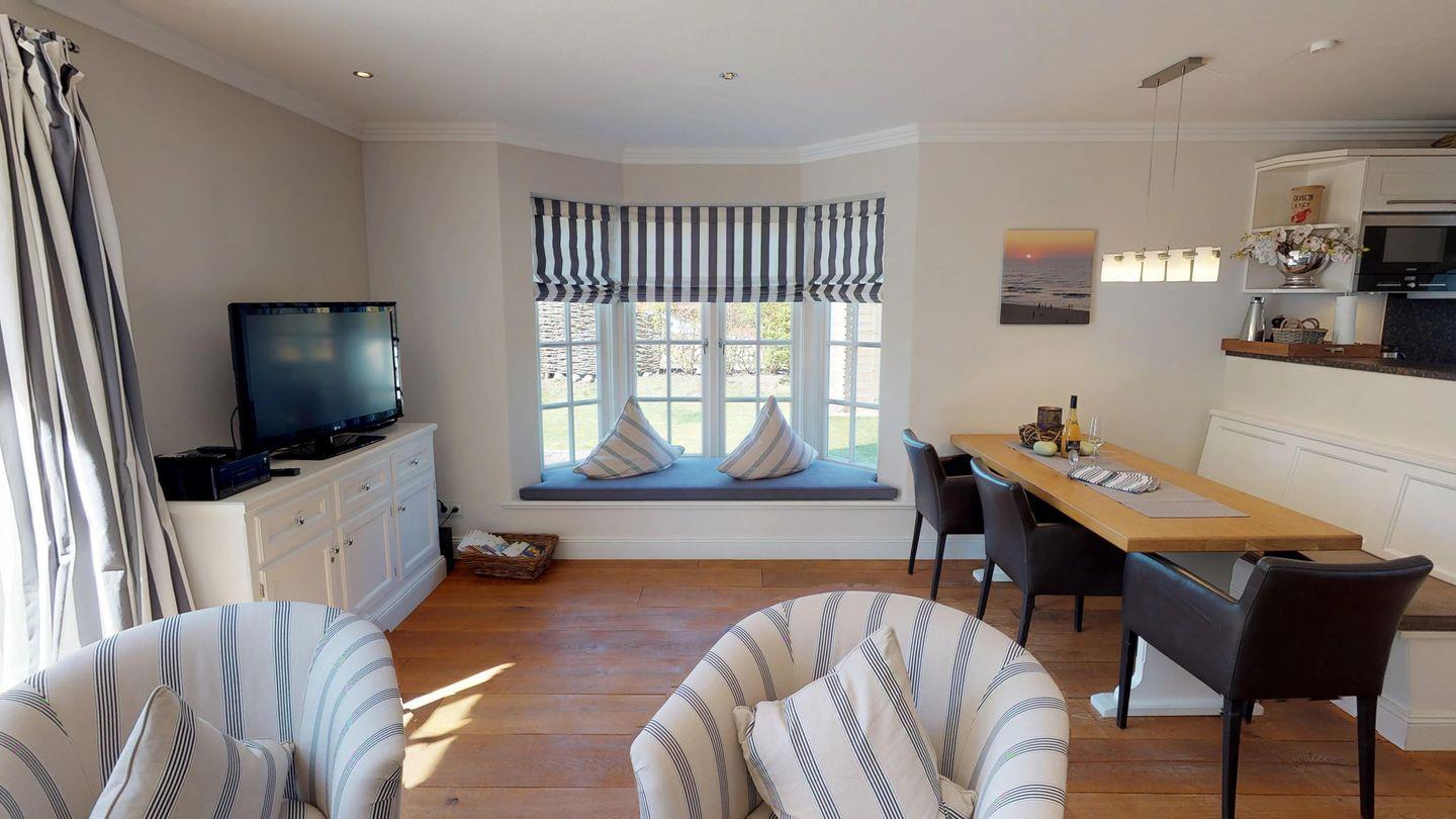 Die durchdachte Gestaltung und hochwertige Ausstattung dieses Reetdachhausteils schaffen eine einladende Umgebung für Ihren Aufenthalt. Genießen Sie Entspannung, Komfort und Stil in diesem liebevoll gestalteten Feriendomizil.