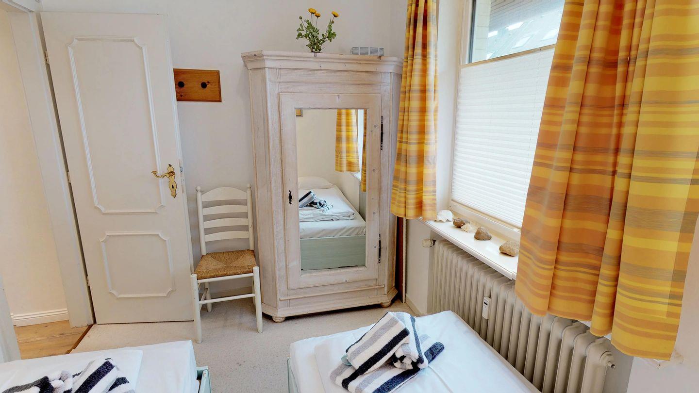 Willkommen in diesem charmanten Haus direkt hinter den Dünen am Weststrand von Wenningstedt. Die gemütliche 3-Zimmer-Wohnung im Erdgeschoss lädt Sie zu einem erholsamen Aufenthalt ein. Sie bietet einen großzügigen Wohnraum, ein Esszimmer sowie einen Doppelschlafraum und einen Schlafraum mit zwei Einzelbetten. Die voll ausgestattete Einbauküche verfügt über eine Waschmaschine und einen Trockner, und das Badezimmer ist mit Dusche und WC ausgestattet – alles auf einer Ebene und mit einer Fläche von ca. 90 qm.