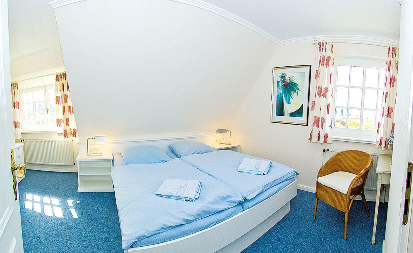 Willkommen in diesem zauberhaften Hausteil am Rande des Strandes, der Sie zu einem erholsamen Urlaub einlädt. Dieses Ferienhaus bietet auf drei Ebenen alles, was das Urlauberherz begehrt. Im Erdgeschoss erwartet Sie neben dem Dusch-/Badezimmer WC ein großzügiger Wohnraum mit einer modernen Pantryküche. Die Westterrasse ist direkt vom Wohnraum aus begehbar. Im Obergeschoss befinden sich ein Doppelschlafraum und ein weiterer Schlafraum mit zwei Einzelbetten, sowie ein Dusch/Badezimmer WC. Im Dachgeschoss eröffnet sich ein zusätzlicher Einzel- oder Doppelschlafraum.