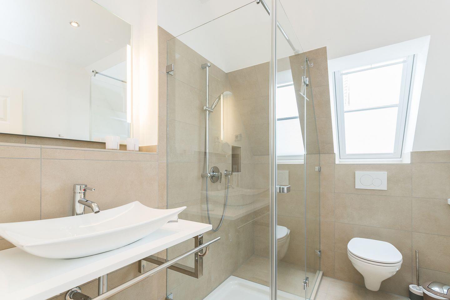 Die Einrichtung des Wohnraums besticht durch Erdtöne, während die Bäder im neuesten Design gestaltet sind. Ein Flat TV sorgt für Unterhaltung. In dieser Wohnung lässt sich Urlaub vom Feinsten erleben. Im Untergeschoss steht unseren Gästen ein großzügiger Wellnessbereich zur Verfügung, inklusive Sauna, Dampfbad, Außendusche und Fitnessgeräten. Ein Parkplatz vor dem Haus rundet die Annehmlichkeiten ab.