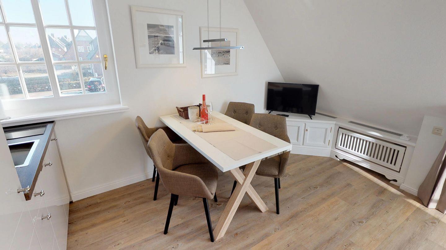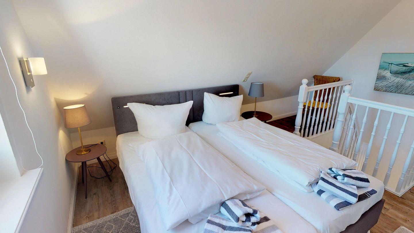 Diese bezaubernde Ferienwohnung erstreckt sich über großzügige 54 qm und verführt mit einem sonnenverwöhnten Südbalkon. Im Obergeschoss erwartet Sie ein behaglicher Wohnraum mit einer bestens ausgestatteten Küchenzeile und einer einladenden Essecke. Der separate Schlafraum bietet zwei Einzelbetten und ist mit einem modernen Dusch-/Badezimmer ausgestattet. Im Dachgeschoss befindet sich ein weiterer Schlafraum, der mit einem komfortablen Doppelbett für erholsame Nächte sorgt.