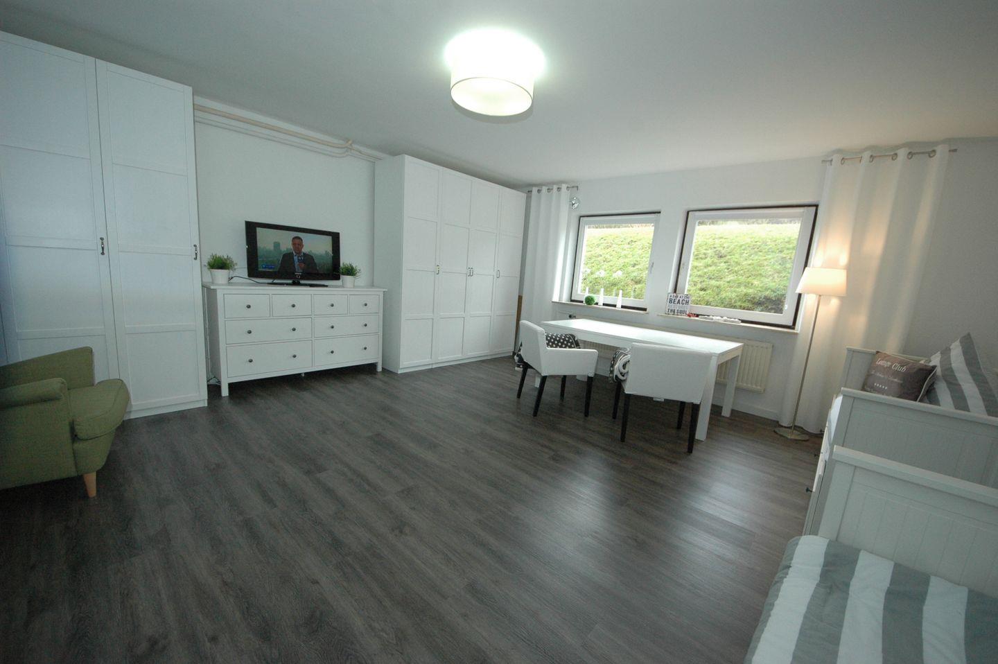 Willkommen im Appartement Buhne 1, das eine großzügige Wohlfühlatmosphäre in lichtdurchfluteten Räumen bietet, liebevoll im Sylt-Stil eingerichtet. Der beeindruckende Wohnbereich öffnet sich zu einem ca. 12 m² großen Südbalkon/Terrasse mit unverbaubarem Blick auf das Grenzwäldchen und die Heidelandschaft. Das Schlafzimmer mit einem 2m-Doppelbett bietet ausreichend Platz für Ruhe und Erholung. Im Untergeschoss finden Sie 2 Einzelbetten.