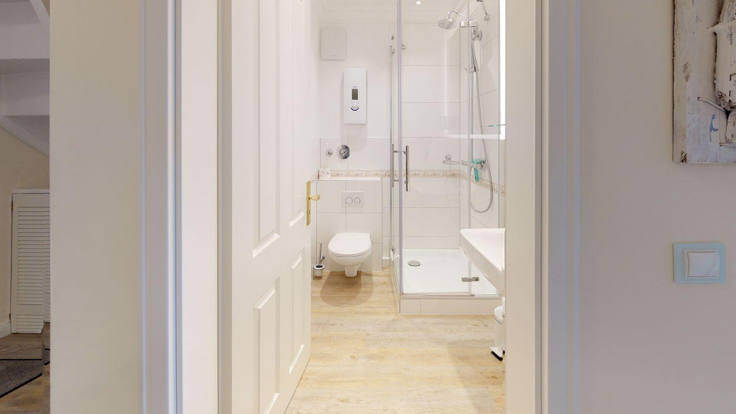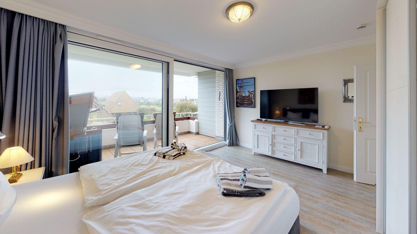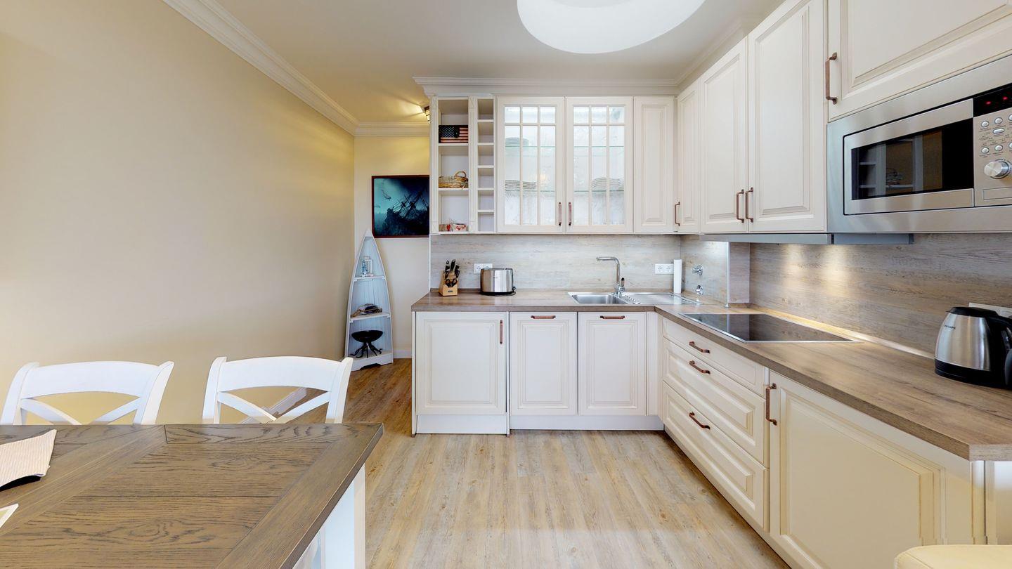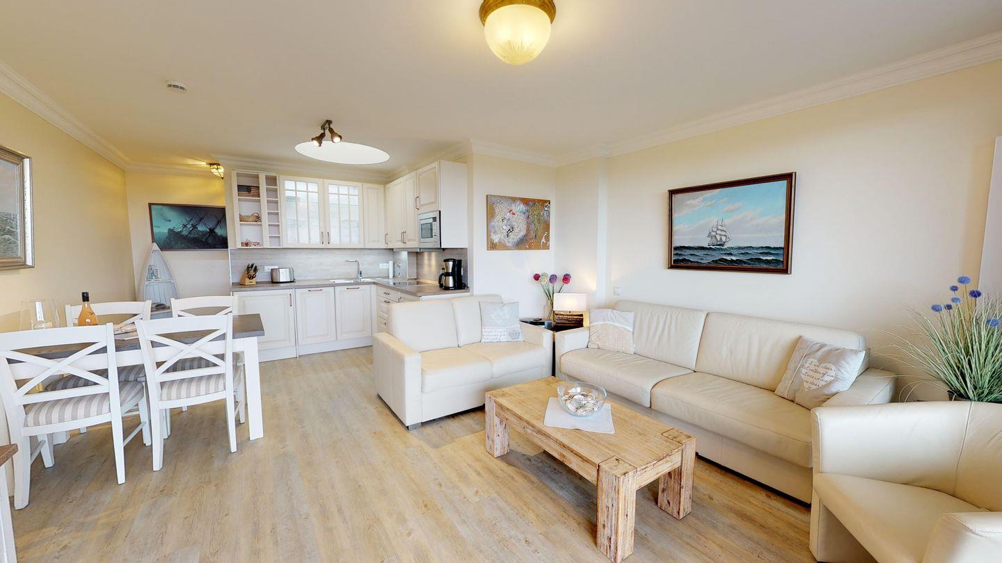 Übernachten können Sie im komfortablen Doppelschlafraum mit Boxspringbett sowie auf einer modernen Schlafcouch im Wohnzimmer. Die Wohnung befindet sich nur 5 Gehminuten vom Hauptstrand Wenningstedts entfernt, und ein eigener PKW-Stellplatz steht Ihnen direkt am Haus zur Verfügung. Erleben Sie Ihren Urlaub mit Stil und Komfort in dieser exquisiten Wohnung.