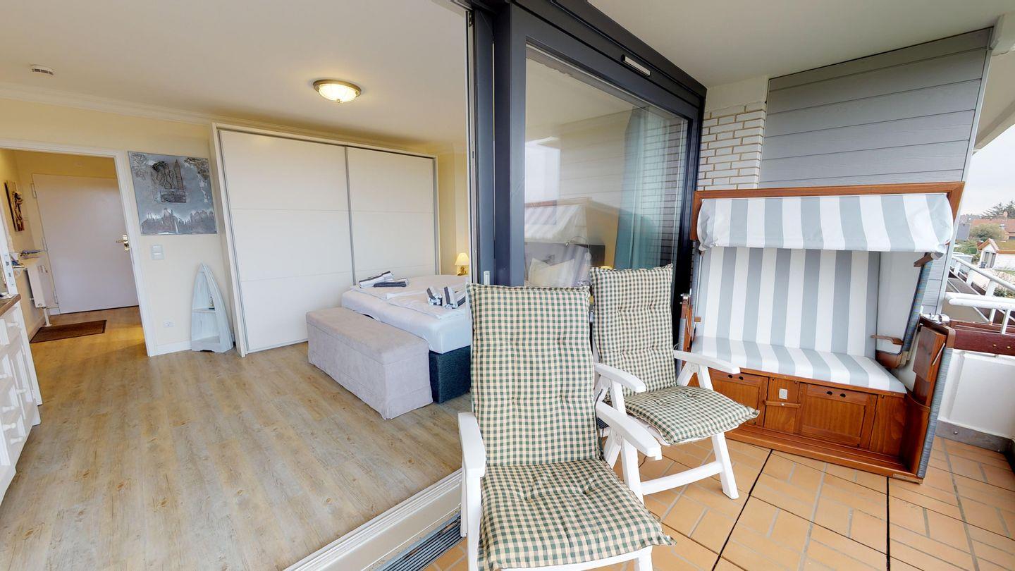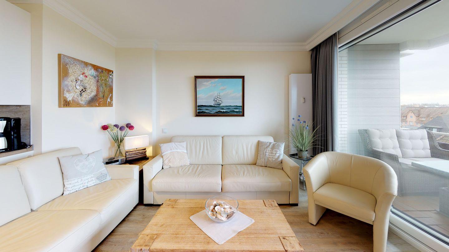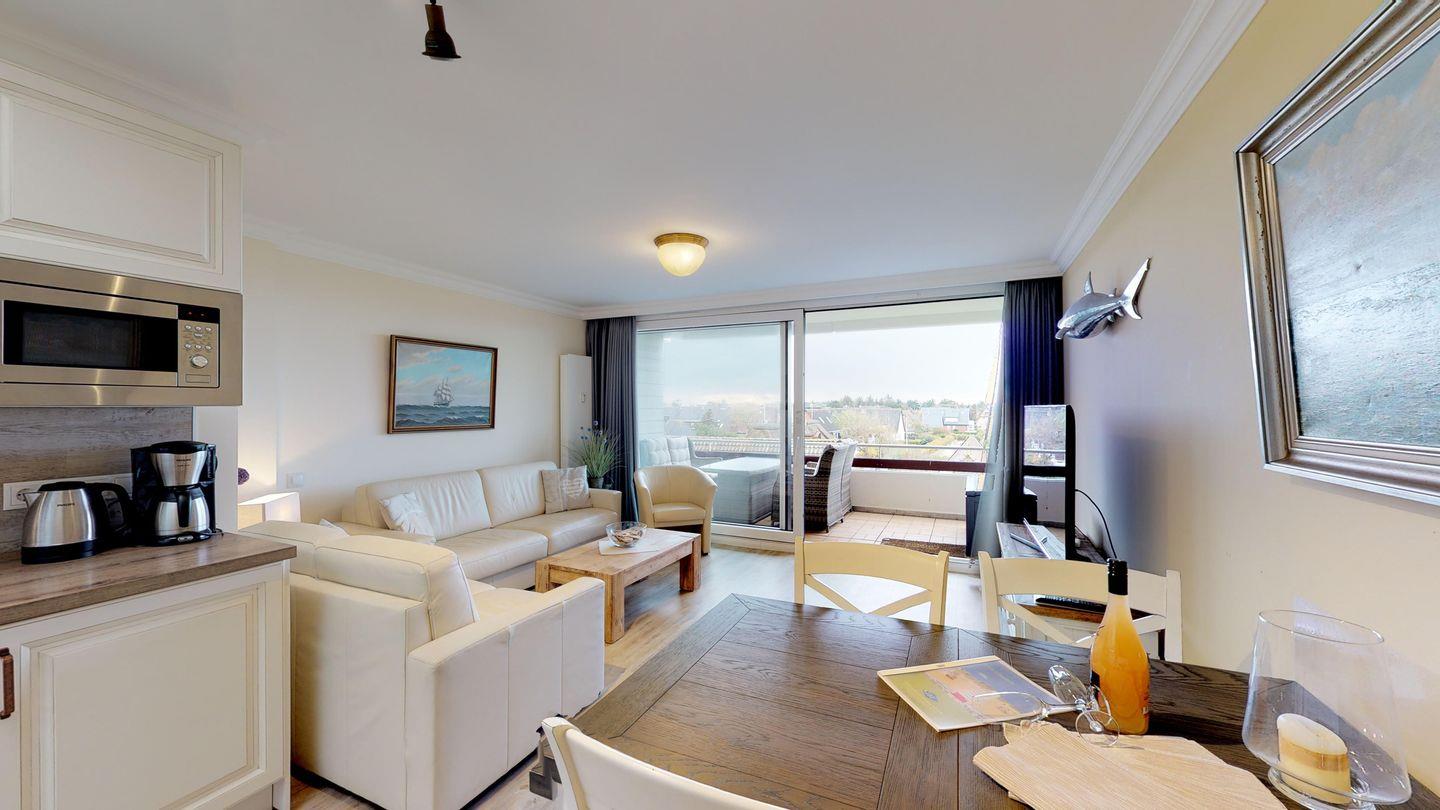 Diese elegant gestaltete Wohnung im Obergeschoss bietet Luxus auf zwei Ebenen. Ein besonderes Highlight sind die beiden geräumigen, sonnigen Südbalkone. Vom oberen Balkon aus haben Sie einen weiten Blick über einen Großteil von Wenningstedt bis zum Meer. Auf etwa 60 qm können bis zu 4 Personen in dieser modernen Wohnung einen erholsamen Urlaub erleben.