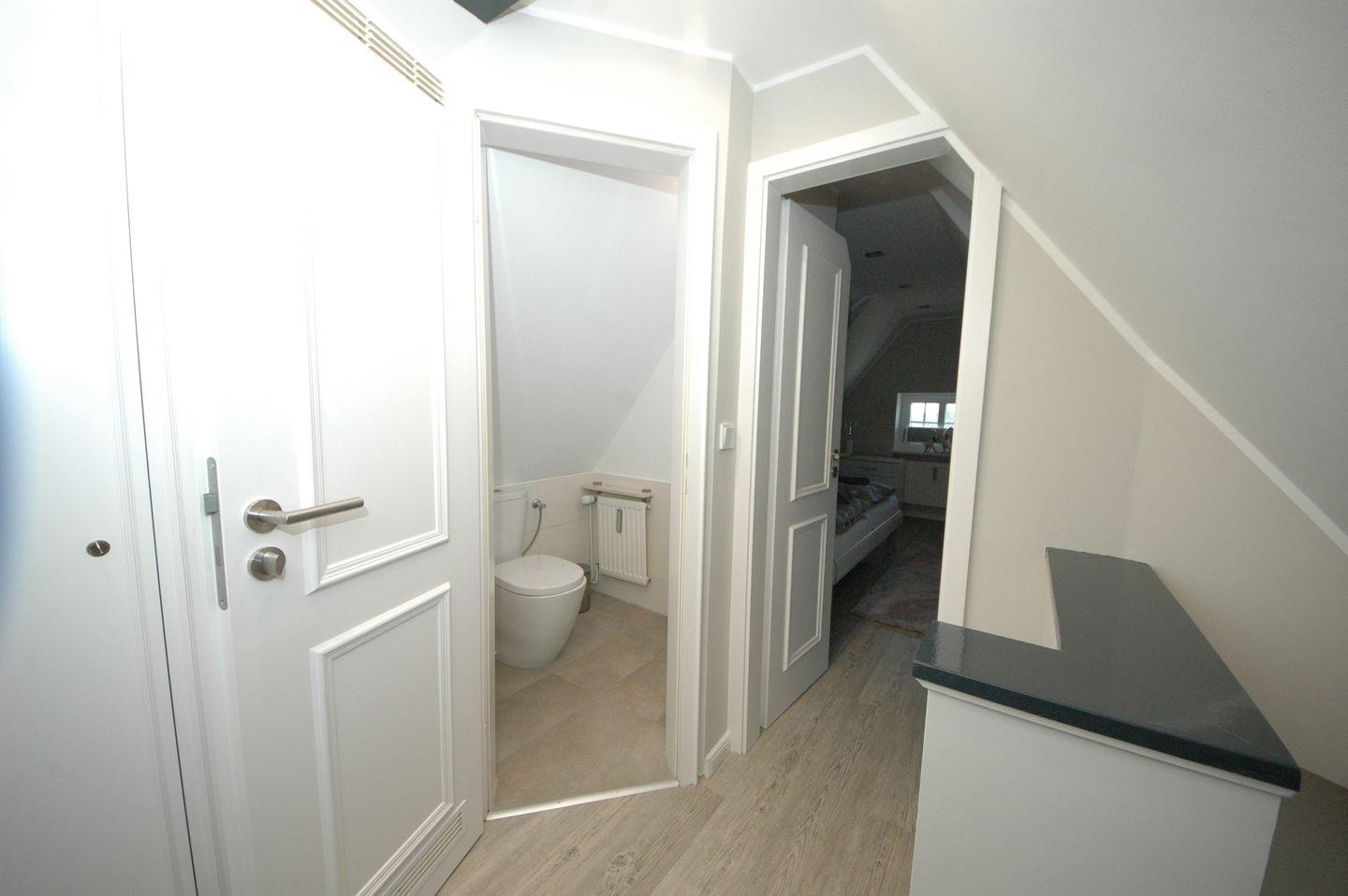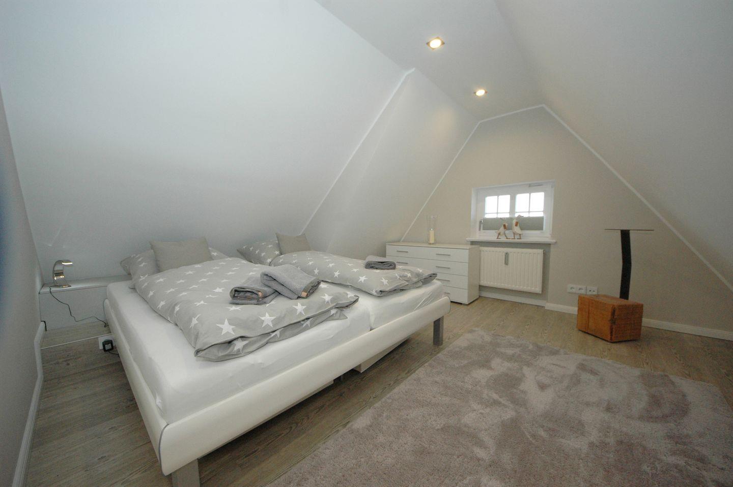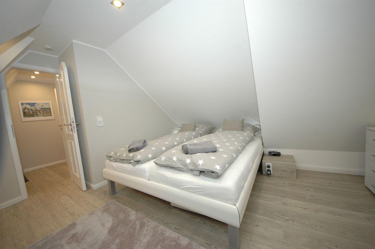 Auf großzügigen 75 qm bietet diese extravagante Obergeschoss-/Dachgeschoss-Endwohnung mit Südbalkon Platz für bis zu 4 Personen. Jede Etage verfügt über einen einladenden Doppelschlafraum. Ein Gäste-WC im Dachgeschoss und ein zusätzliches Dusch-WC im Obergeschoss sorgen für höchsten Komfort. Die elegante Küche fügt sich perfekt in das Gesamtkonzept ein und ist mit modernsten Geräten ausgestattet, darunter ein Geschirrspüler, Backofen und Herd für den passionierten Koch.