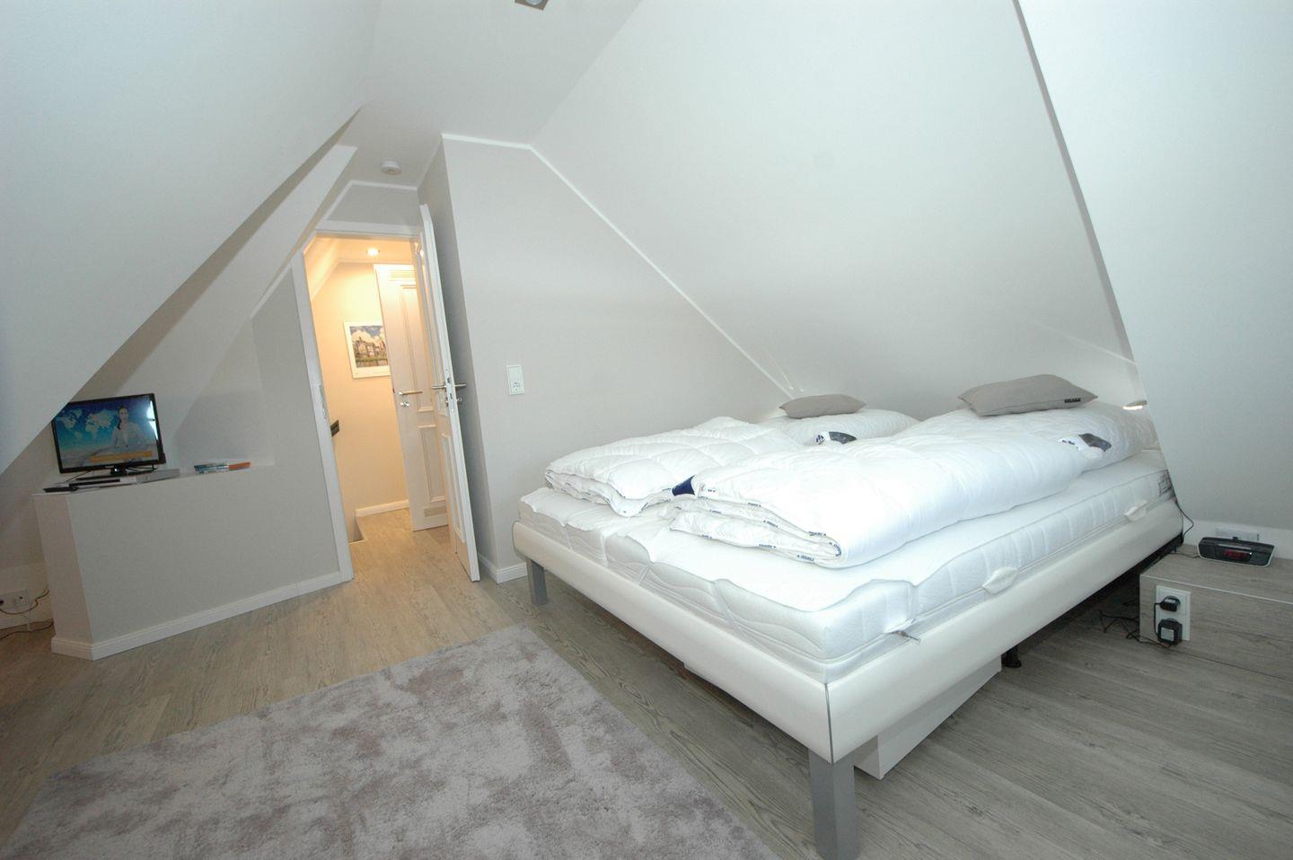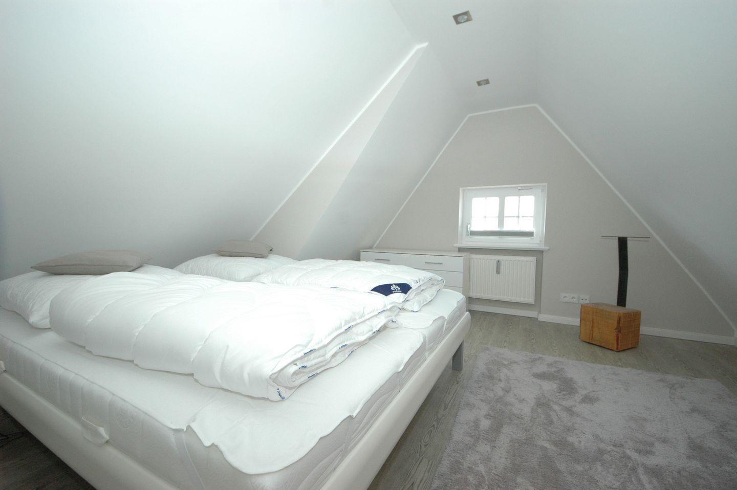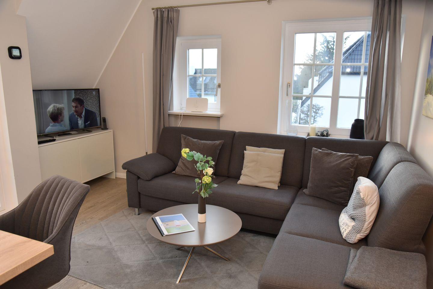 Auf großzügigen 75 qm bietet diese extravagante Obergeschoss-/Dachgeschoss-Endwohnung mit Südbalkon Platz für bis zu 4 Personen. Jede Etage verfügt über einen einladenden Doppelschlafraum. Ein Gäste-WC im Dachgeschoss und ein zusätzliches Dusch-WC im Obergeschoss sorgen für höchsten Komfort. Die elegante Küche fügt sich perfekt in das Gesamtkonzept ein und ist mit modernsten Geräten ausgestattet, darunter ein Geschirrspüler, Backofen und Herd für den passionierten Koch.