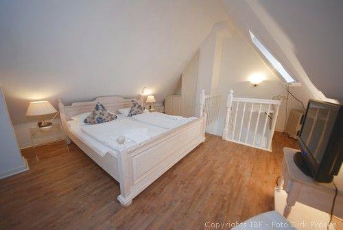 Diese zauberhafte Ferienwohnung, mit einer Fläche von ca. 54 qm, bietet einen sonnigen Südwestbalkon. Im Obergeschoss erwartet Sie ein behaglicher Wohnraum mit einer voll ausgestatteten Küchenzeile und einer charmanten Essecke. Der separate Schlafraum verfügt über zwei Einzelbetten und ist mit einem modernen Dusch-/Badezimmer ausgestattet. Im Dachgeschoss eröffnet sich ein weiterer Schlafraum mit einem komfortablen Doppelbett.