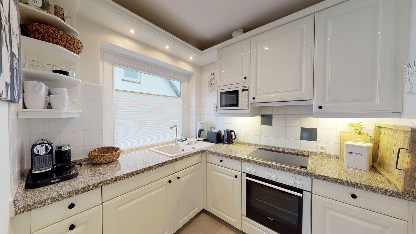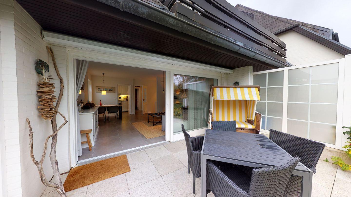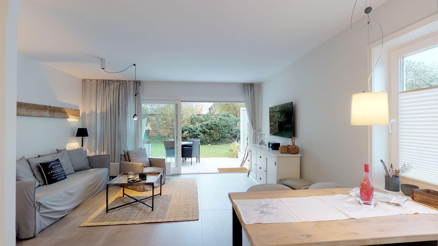 Willkommen im Appartement "Cosy"! Im Jahr 2019 aufwendig renoviert, präsentiert sich dieses Juwel auf Sylt in einem neuen Glanz. Die hochwertige Ausstattung schafft eine großzügige Wohlfühlatmosphäre, die durch helle Räume und eine liebevolle Sylt-Note geprägt ist. Der Wohnbereich bietet Smart-TV, Internet-Radio und exklusive Gervasoni-Möbel für erholsame Stunden. Eine deckenhohe Glasschiebetür führt zur Südterrasse mit Strandkorb und Garten – Ihr persönlicher Rückzugsort. Die Erdgeschoss-Eckwohnung verfügt über eine separate Küche und ein ebenerdiges Schlafzimmer. Im Untergeschoss erwartet Sie ein weiteres geräumiges Schlafzimmer mit Boxspringbett, TV und Tageslichtfenstern zum Garten. Das stimmig ins Designerkonzept integrierte Badezimmer rundet das Gesamterlebnis ab. Genießen Sie die Nähe zum Strand (ca. 150 m), und der PKW-Stellplatz sowie Fahrradabstellplätze vor dem Haus sorgen für zusätzlichen Komfort. Willkommen zu einem unvergesslichen Sylt-Aufenthalt!