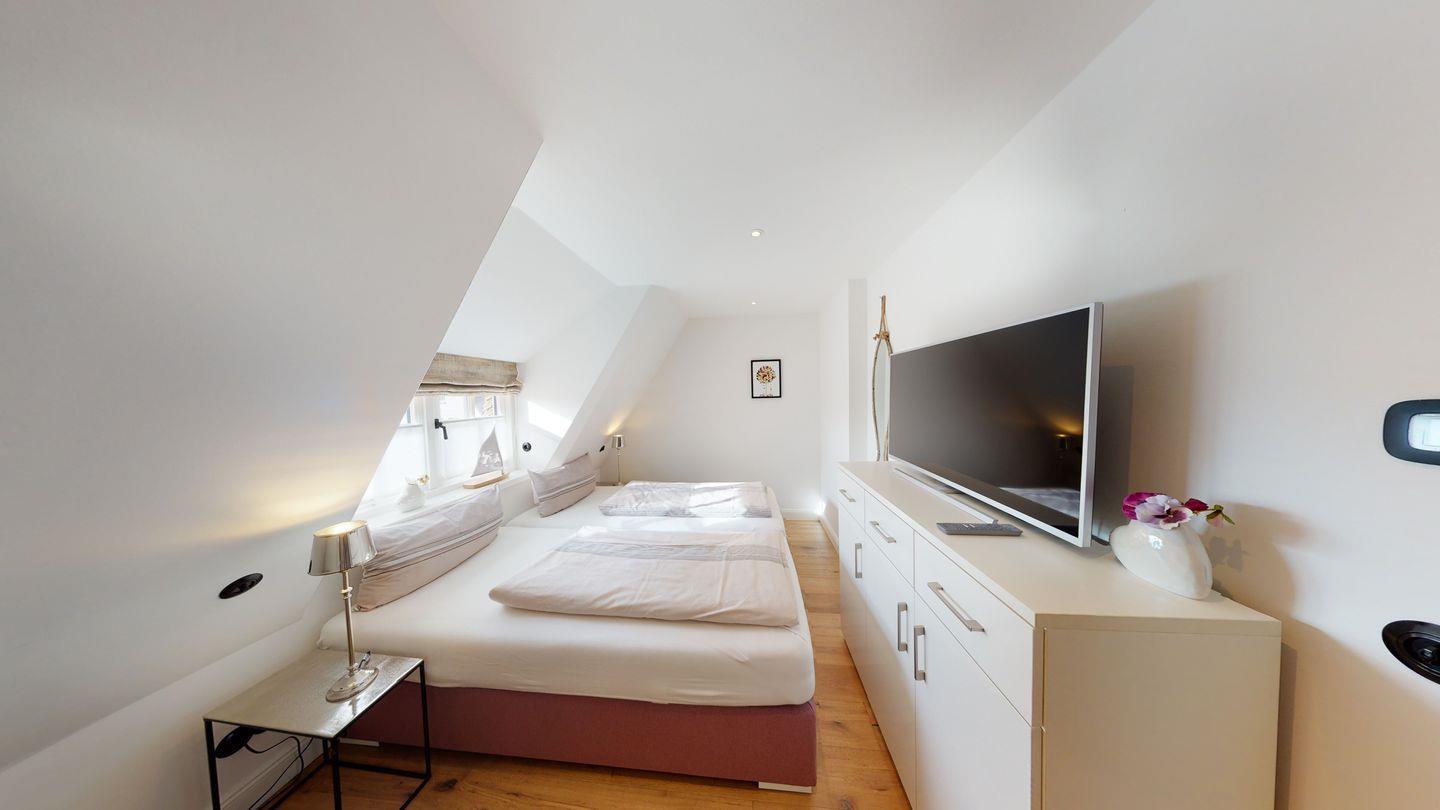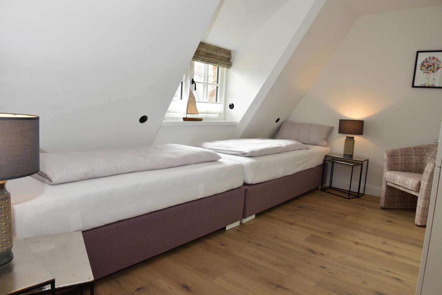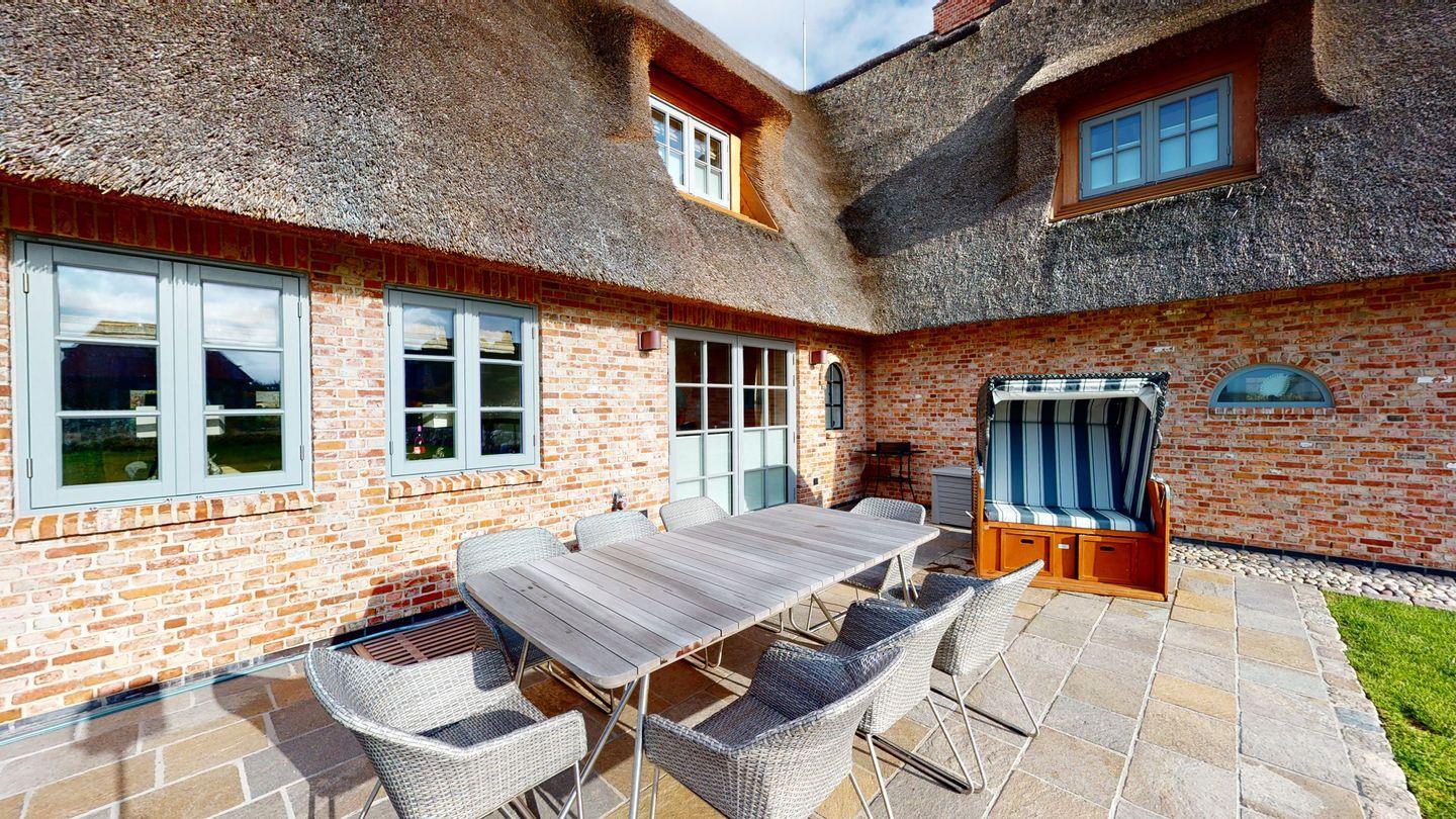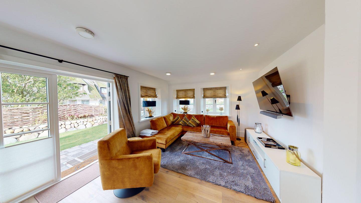 Das gemütliche Wohnzimmer lädt zum Verweilen vor dem verglasten Gas-Kamin ein. Im Dachgeschoss erwartet Sie ein Masterbedroom mit eigenem Duschbad, sowie ein Schlafraum mit 2 Einzelbetten und ein weiteres Duschbad. Im Untergeschoss befinden sich zwei weitere Doppelschlafzimmer, ein weiteres Duschbad mit Sauna und ein Gäste-WC. Genießen Sie entspannte Stunden auf der großen Südwest-Terrasse mit Blick auf den Garten. Zwei PKW-Stellplätze stehen Ihnen ebenfalls zur Verfügung. Tauchen Sie ein in die luxuriöse Atmosphäre dieses besonderen Domizils direkt am Meer.