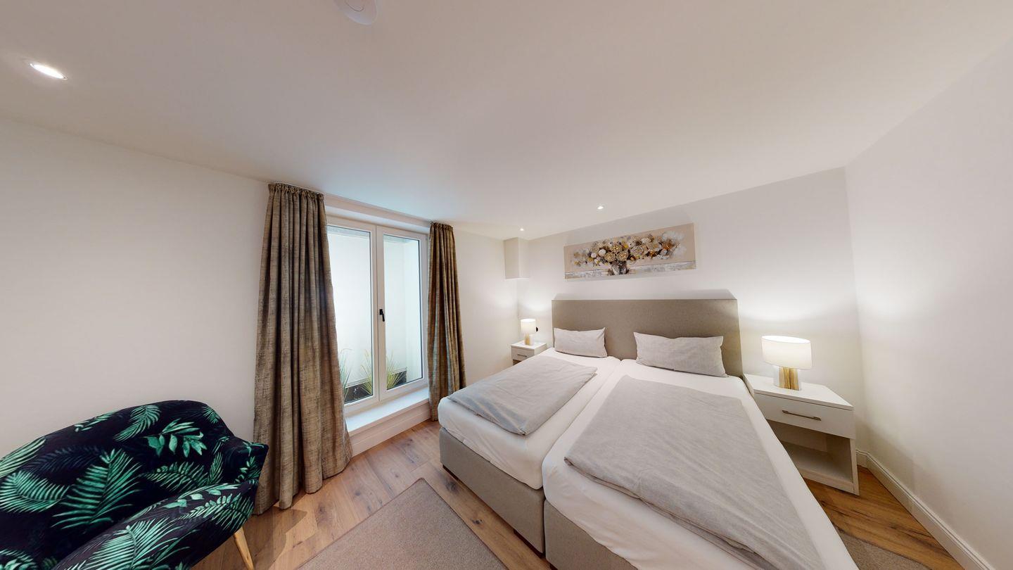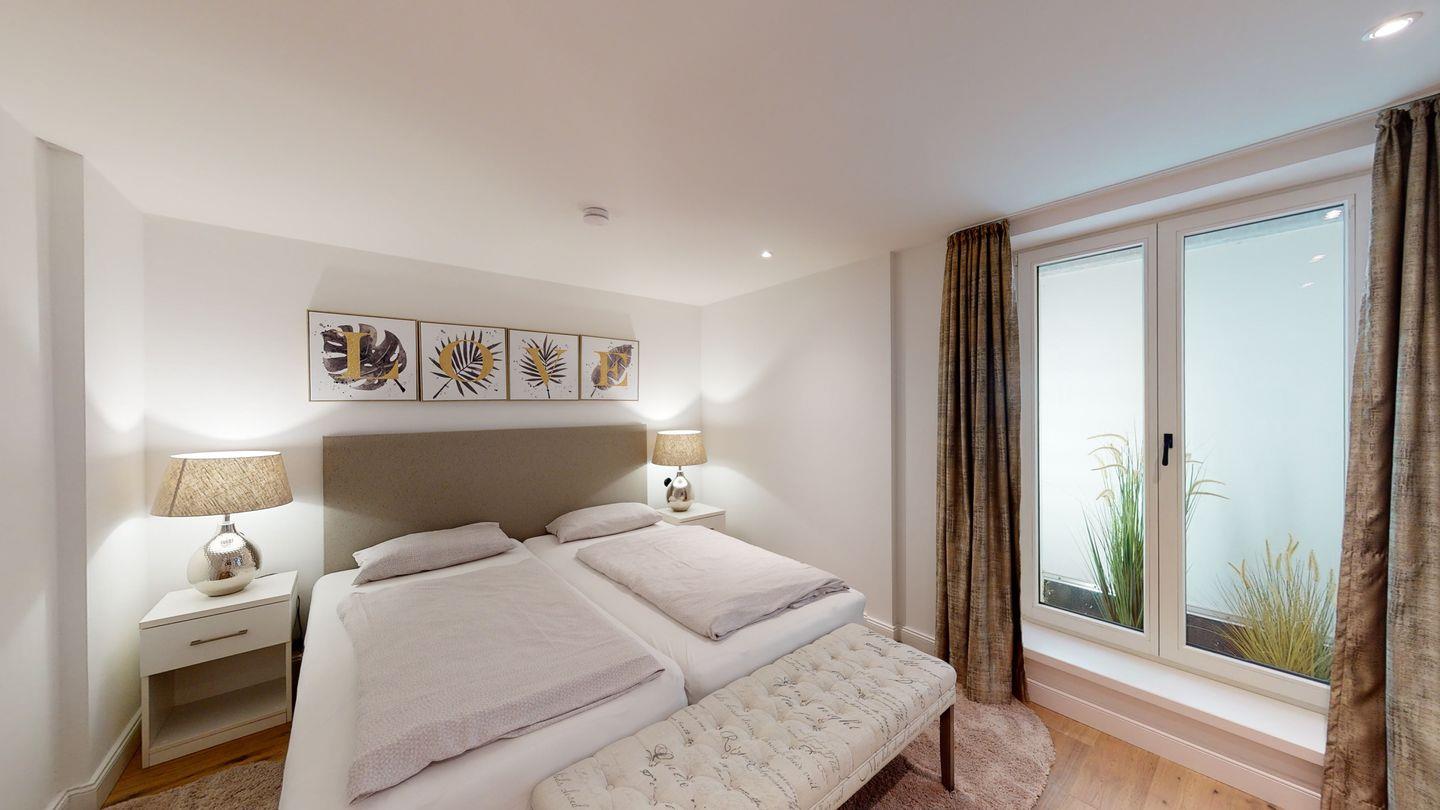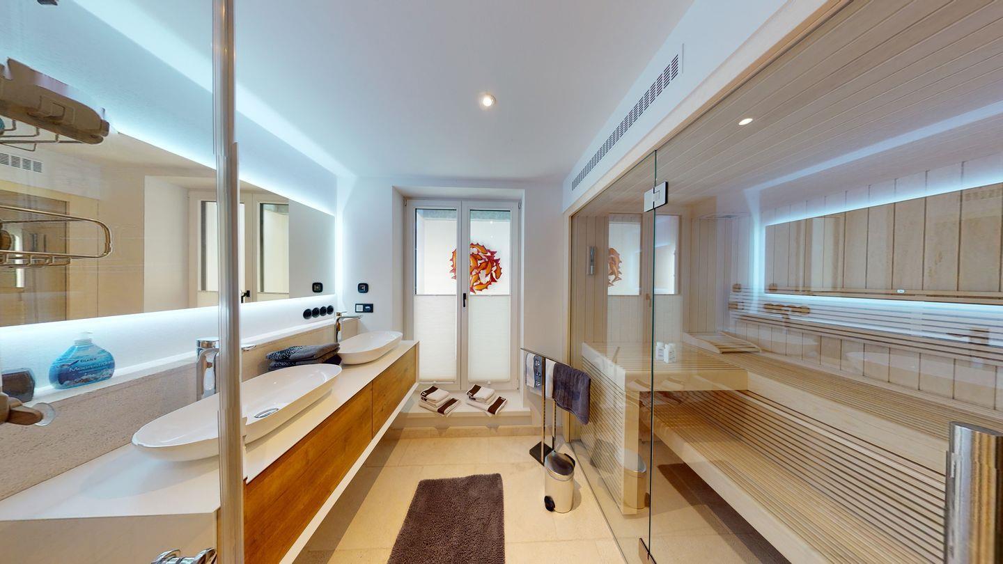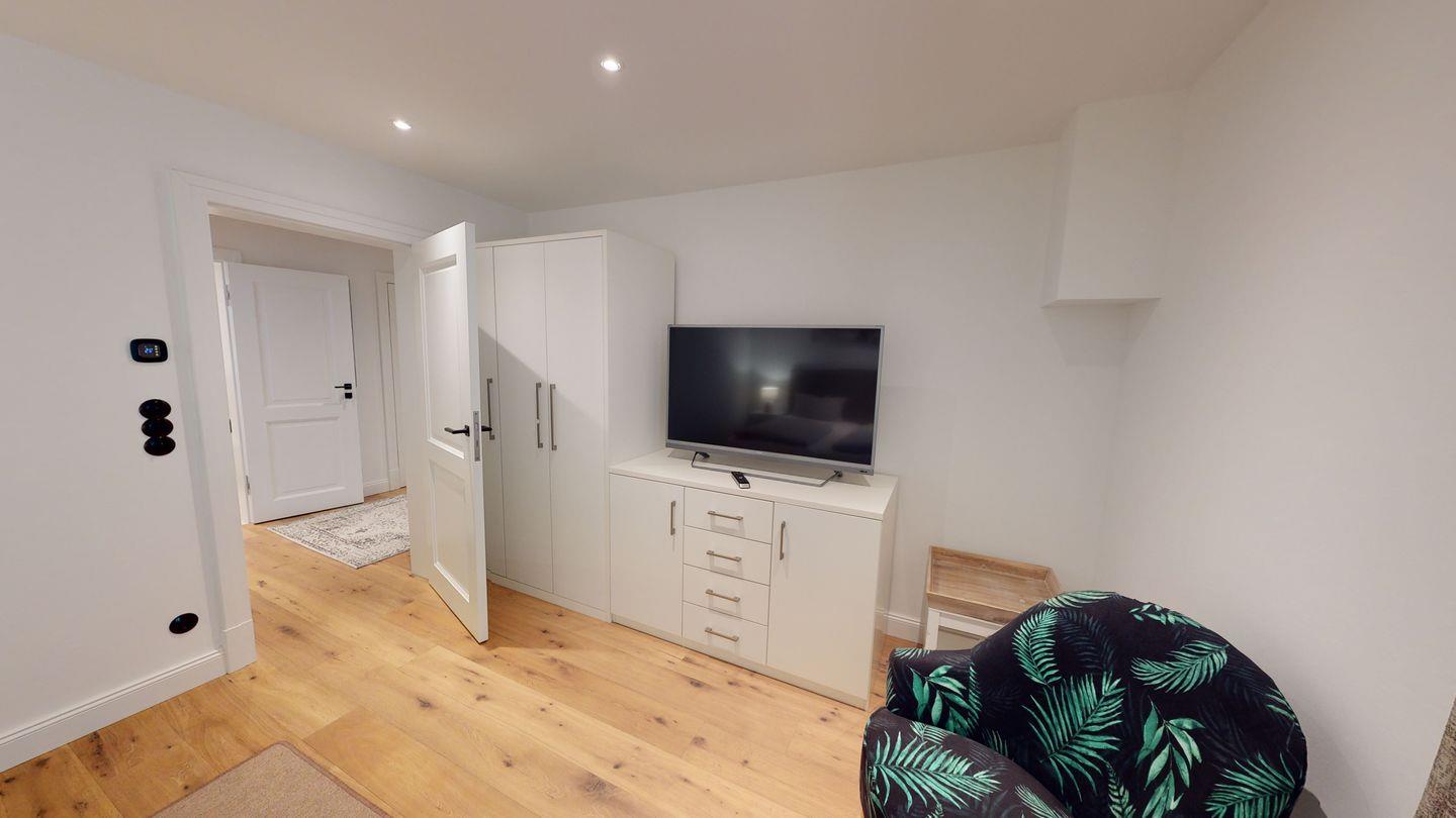 Das gemütliche Wohnzimmer lädt zum Verweilen vor dem verglasten Gas-Kamin ein. Im Dachgeschoss erwartet Sie ein Masterbedroom mit eigenem Duschbad, sowie ein Schlafraum mit 2 Einzelbetten und ein weiteres Duschbad. Im Untergeschoss befinden sich zwei weitere Doppelschlafzimmer, ein weiteres Duschbad mit Sauna und ein Gäste-WC. Genießen Sie entspannte Stunden auf der großen Südwest-Terrasse mit Blick auf den Garten. Zwei PKW-Stellplätze stehen Ihnen ebenfalls zur Verfügung. Tauchen Sie ein in die luxuriöse Atmosphäre dieses besonderen Domizils direkt am Meer.