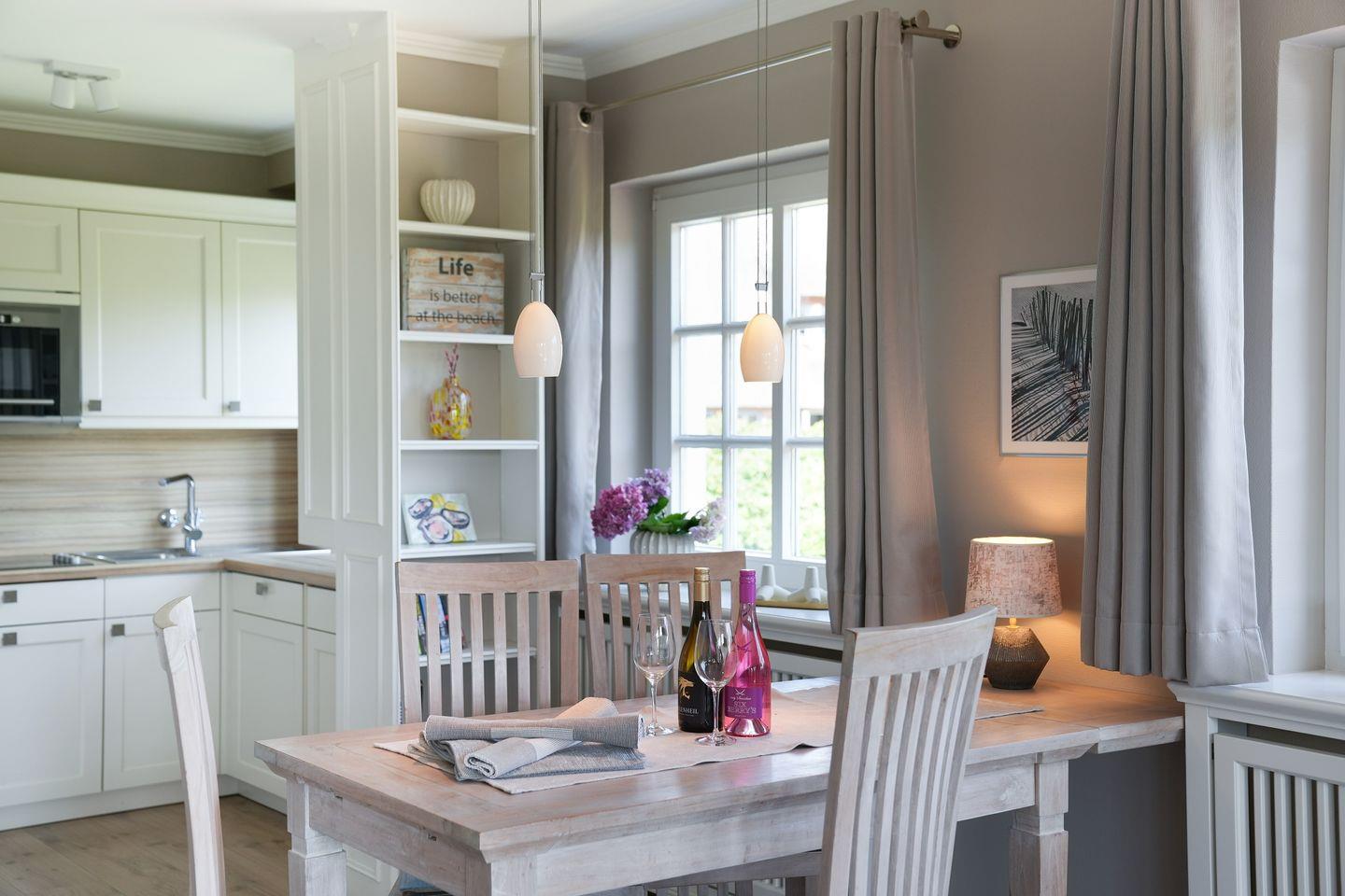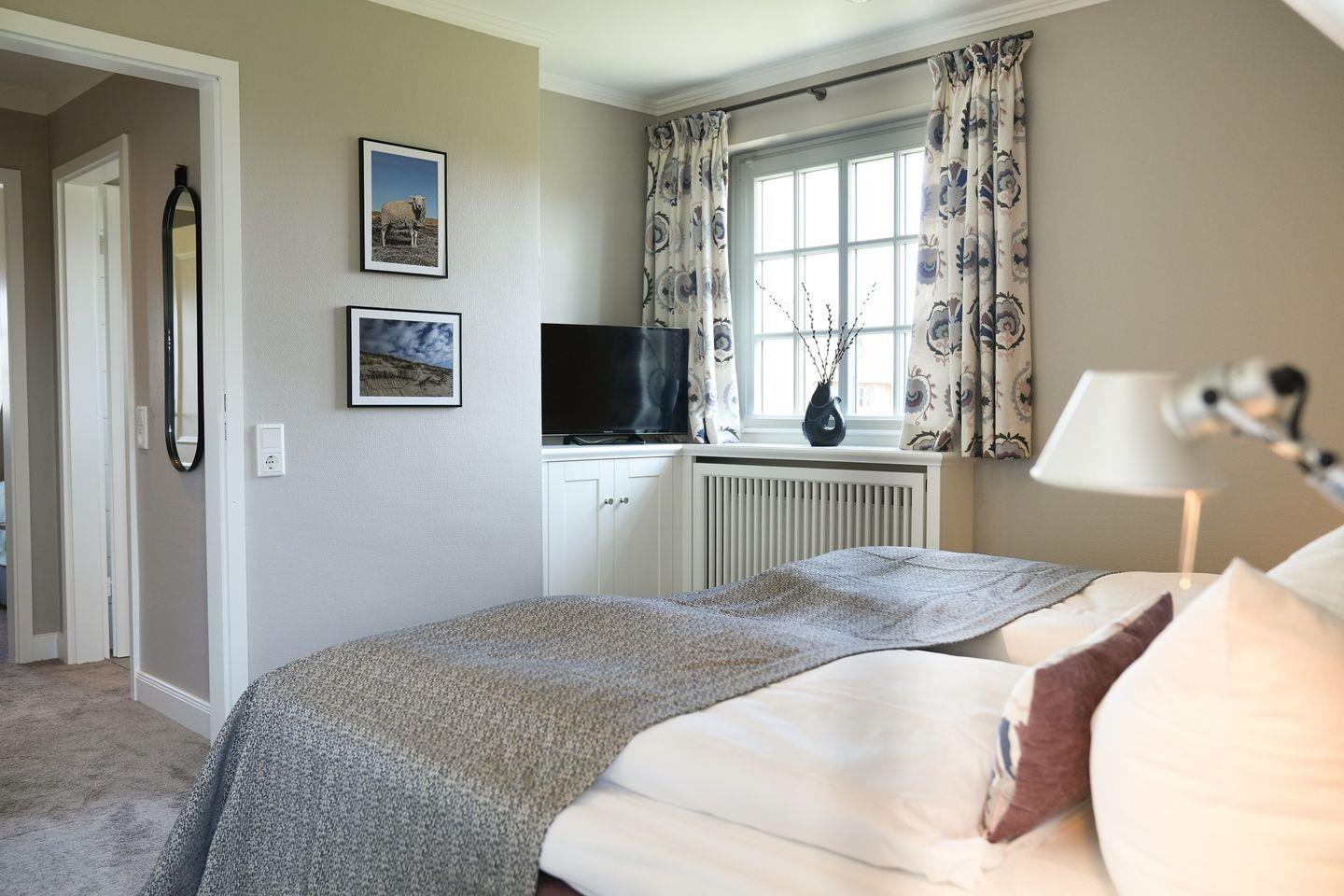 Dieses zauberhafte Hausteil am Rande des Strandes verspricht einen erholsamen Urlaub und bietet auf drei Ebenen alles, was das Herz eines Urlaubers höherschlagen lässt. Im Erdgeschoss erwartet Sie neben dem Dusch-/Badezimmer WC ein großzügiger Wohnraum mit einer modernen Pantryküche. Die Westterrasse ist direkt vom Wohnraum aus zugänglich. Im Obergeschoss finden Sie einen Doppelschlafraum sowie einen weiteren Schlafraum mit zwei Einzelbetten und ein Dusch/Badezimmer WC. Im Dachgeschoss befindet sich ein zusätzlicher Einzel- oder Doppelschlafraum.