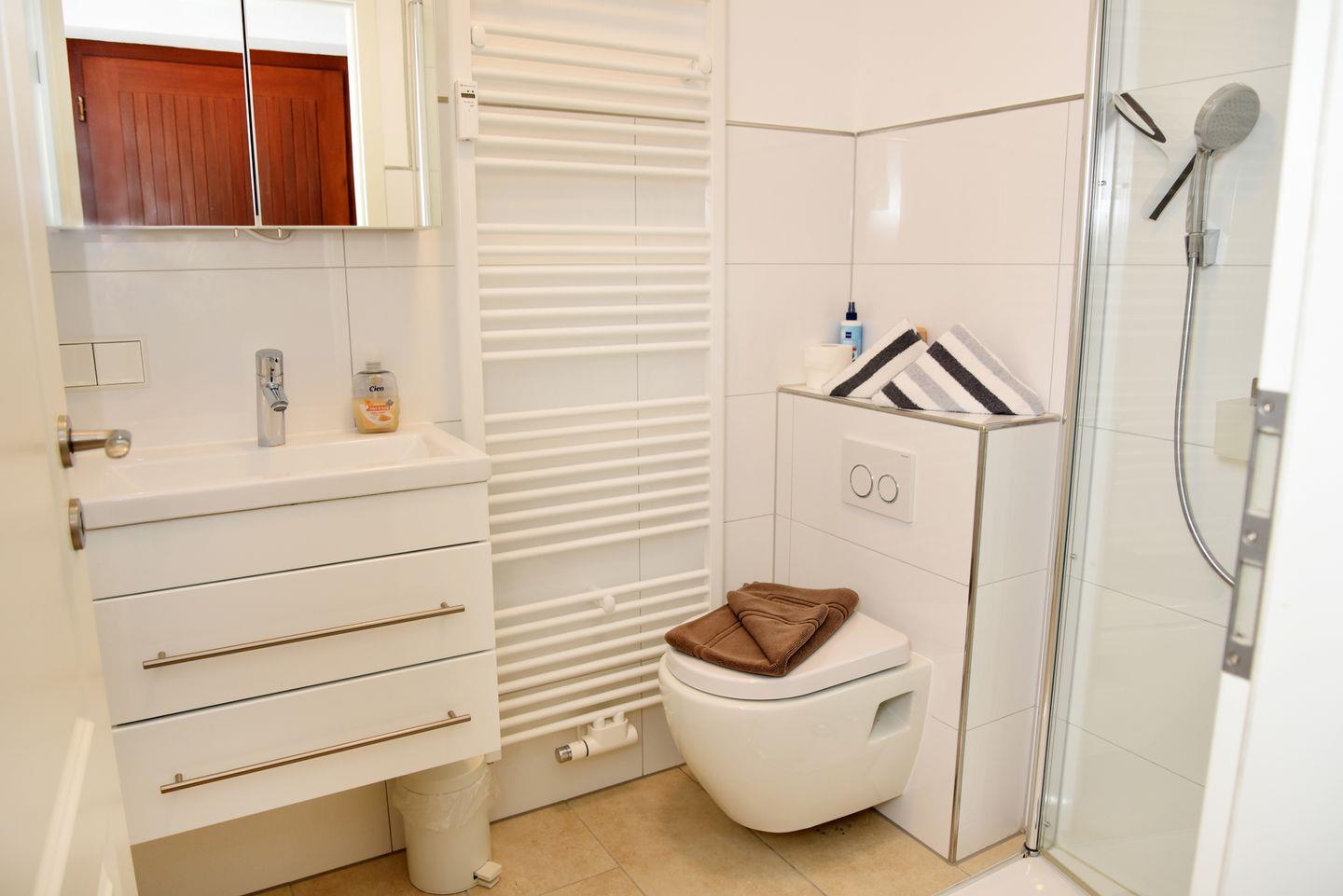 Das Schlafzimmer ist mit einem gemütlichen Doppelbett ausgestattet und bietet Ihnen eine erholsame Nachtruhe. Ein helles Duschbad sorgt für Ihren Komfort während Ihres Aufenthalts.