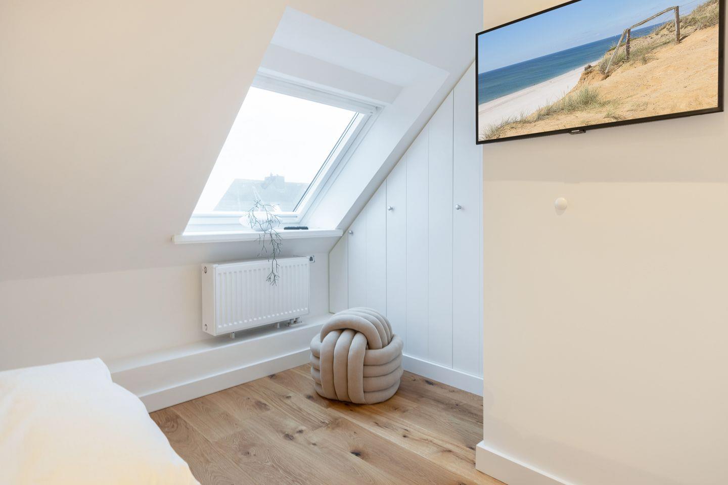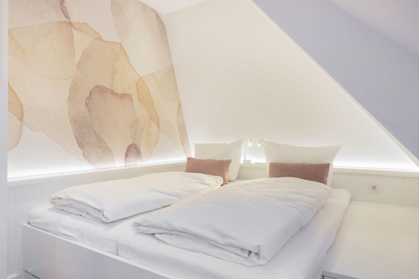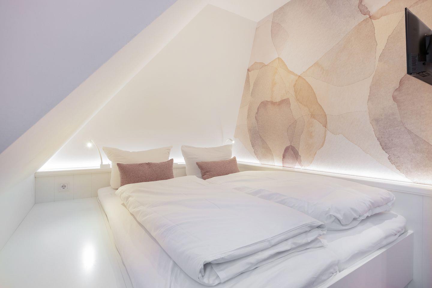Das Dachgeschoss beherbergt zwei geschmackvoll eingerichtete Doppelschlafräume mit komfortablen Einbaubetten. Hier finden Sie die wohlverdiente Ruhe und Entspannung nach einem erlebnisreichen Tag auf der Insel.