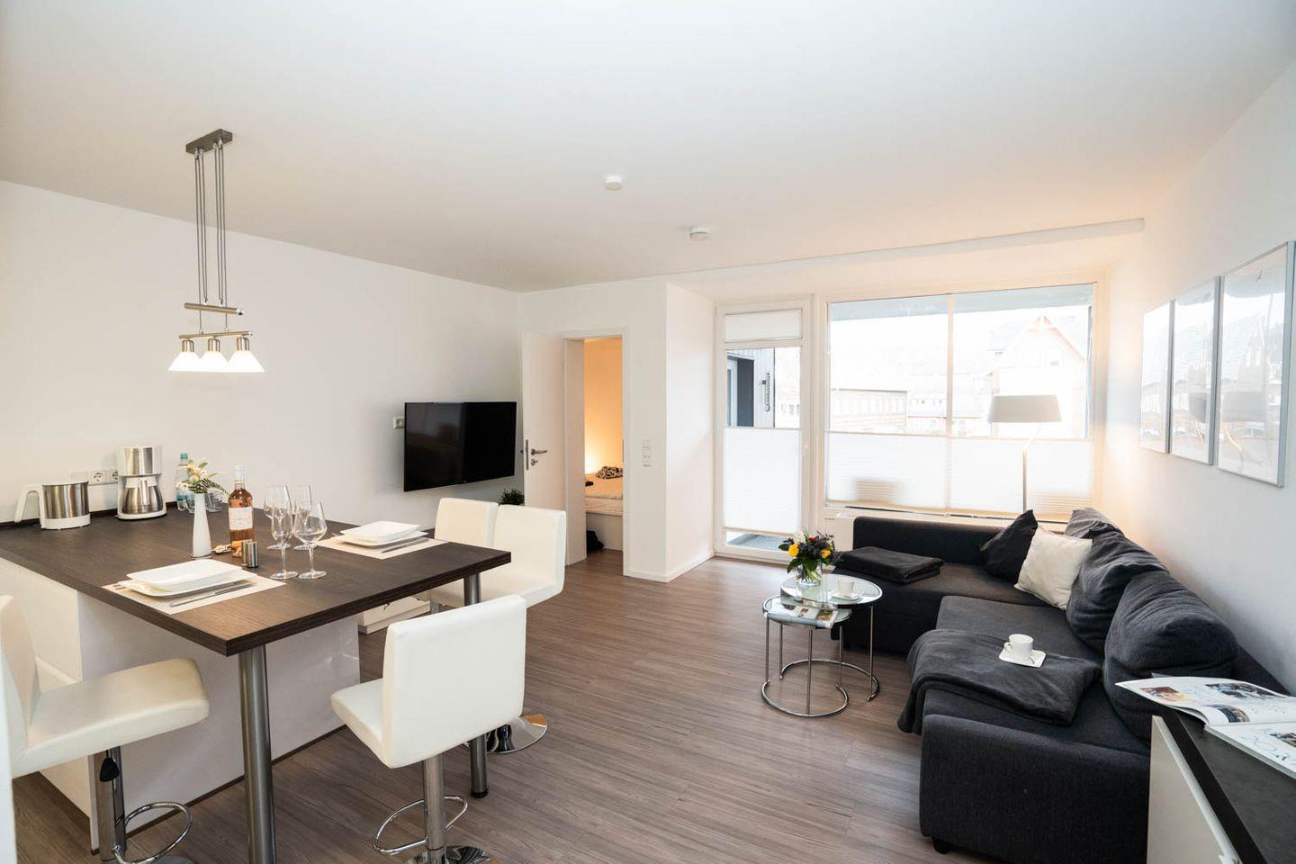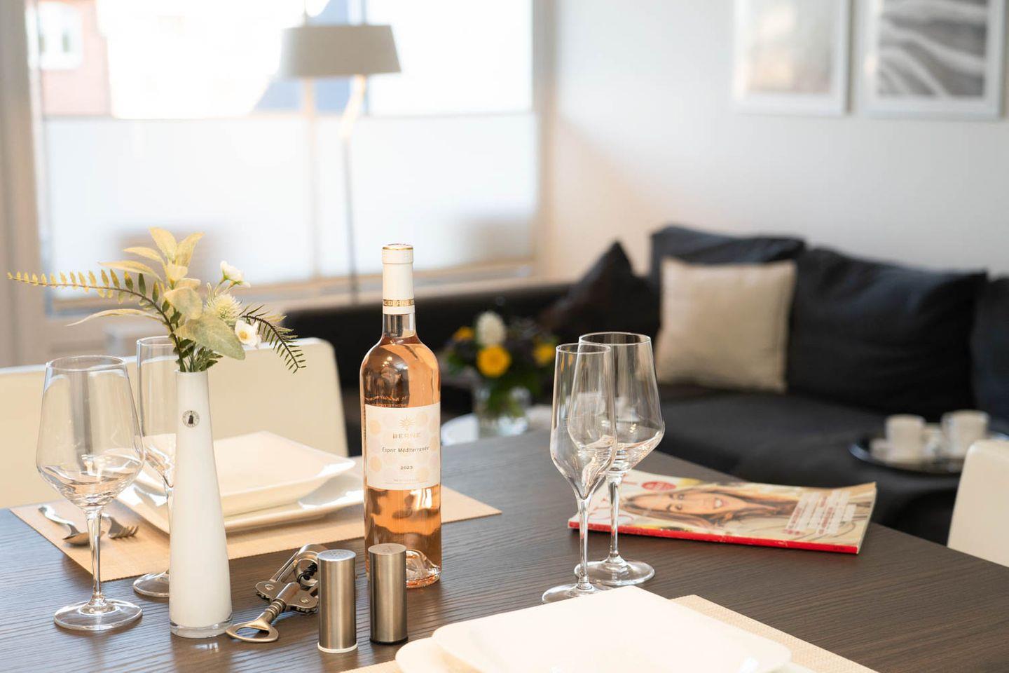 Die vor Kurzem renovierte und mit klarem, edlen Design eingerichtete 2-Zimmer-Wohnung in dieser Anlage ist perfekt für Zwei, verfügt über eine kleine, geschmackvolle offene Küche mit Tresen und coolen Barhockern, die in den Wohnbereich mit Eck-Couch übergeht. Ein Balkon macht dieses attraktive Angebot vom Kaliber „kleiner Geheimtipp“ komplett, das nur unterschätzt, wer nicht genauer hinschaut.