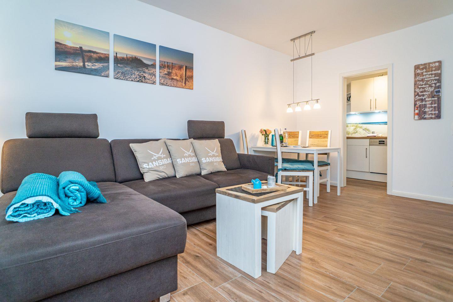 Moin und herzlich willkommen in der Ferienwohnung „Sylter Perle“, in Westerland, die mit zwei Schlafzimmern perfekt für eine Familie oder bis zu vier Personen passt, 55 Quadratmeter groß und wirklich attraktiv eingerichtet ist.
