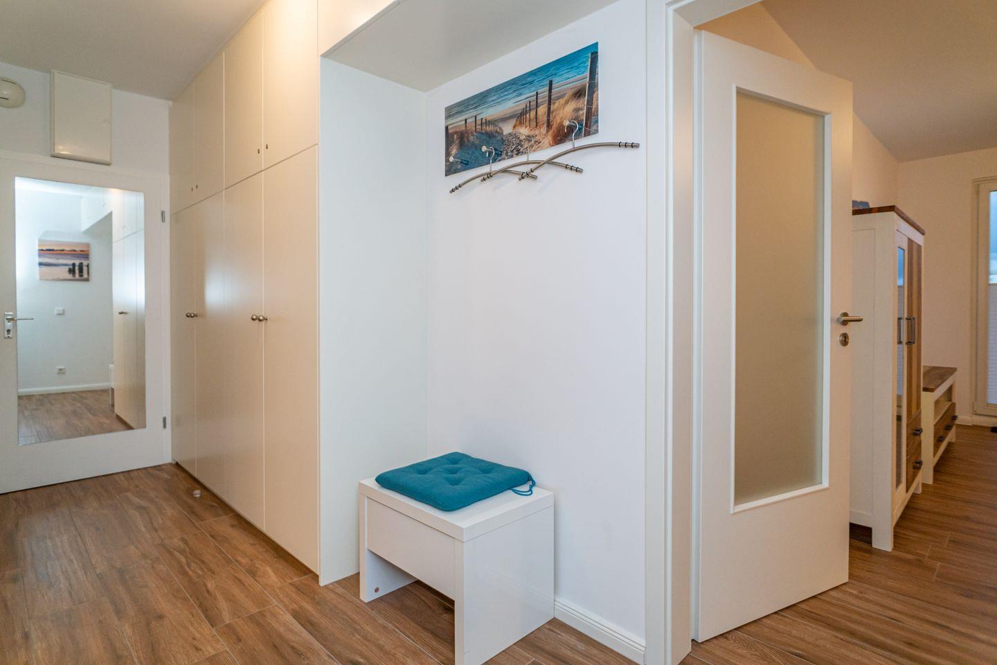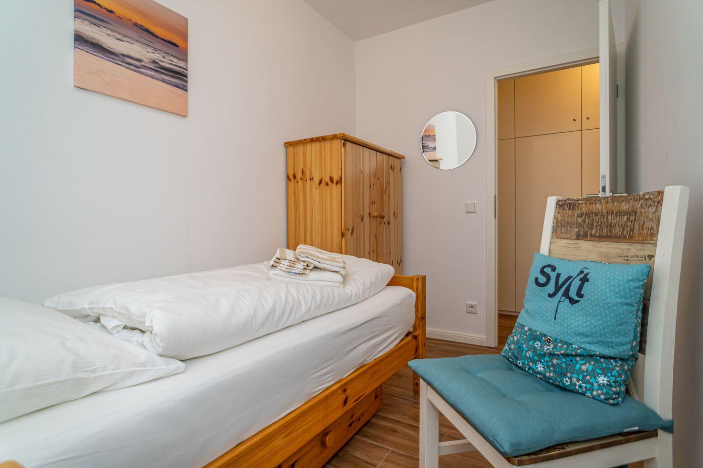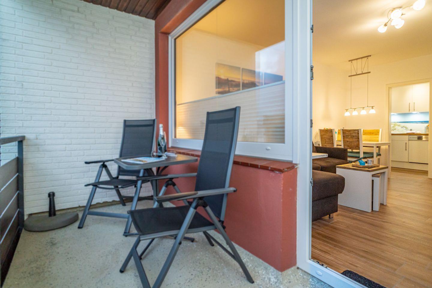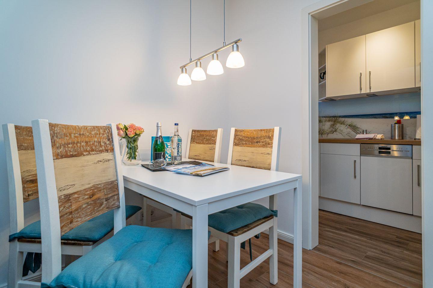Meerblau, schickes Grau, strahlendes Weiß und maritime Holzelemente dominieren seit der vor Kurzem erfolgten Renovierung, und diese Perle bringt einiges mit, was sie besonders beliebt macht. Da wäre zunächst die wirklich praktische Ausstattung, zu der sogar eine Waschmaschine gehört, genauso wie ein Blu-Ray-Player und der Privatparkplatz. Dann ist die Lage in Alt-Westerland etwas für Kenner: Von hier aus ist die Innenstadt nur einen kleinen Fußweg entfernt und trotzdem geht es in der Gartenstraße eher ruhig zu. Und dann gehört auch noch ein Westbalkon dazu, der zu genüsslichen Sonnensitzungen am Nachmittag einlädt, vom guten Preis-Leistungsverhältnis ganz zu schweigen.