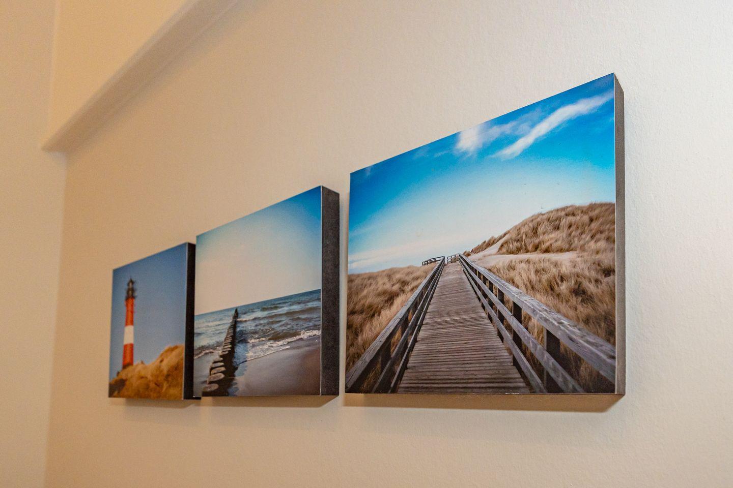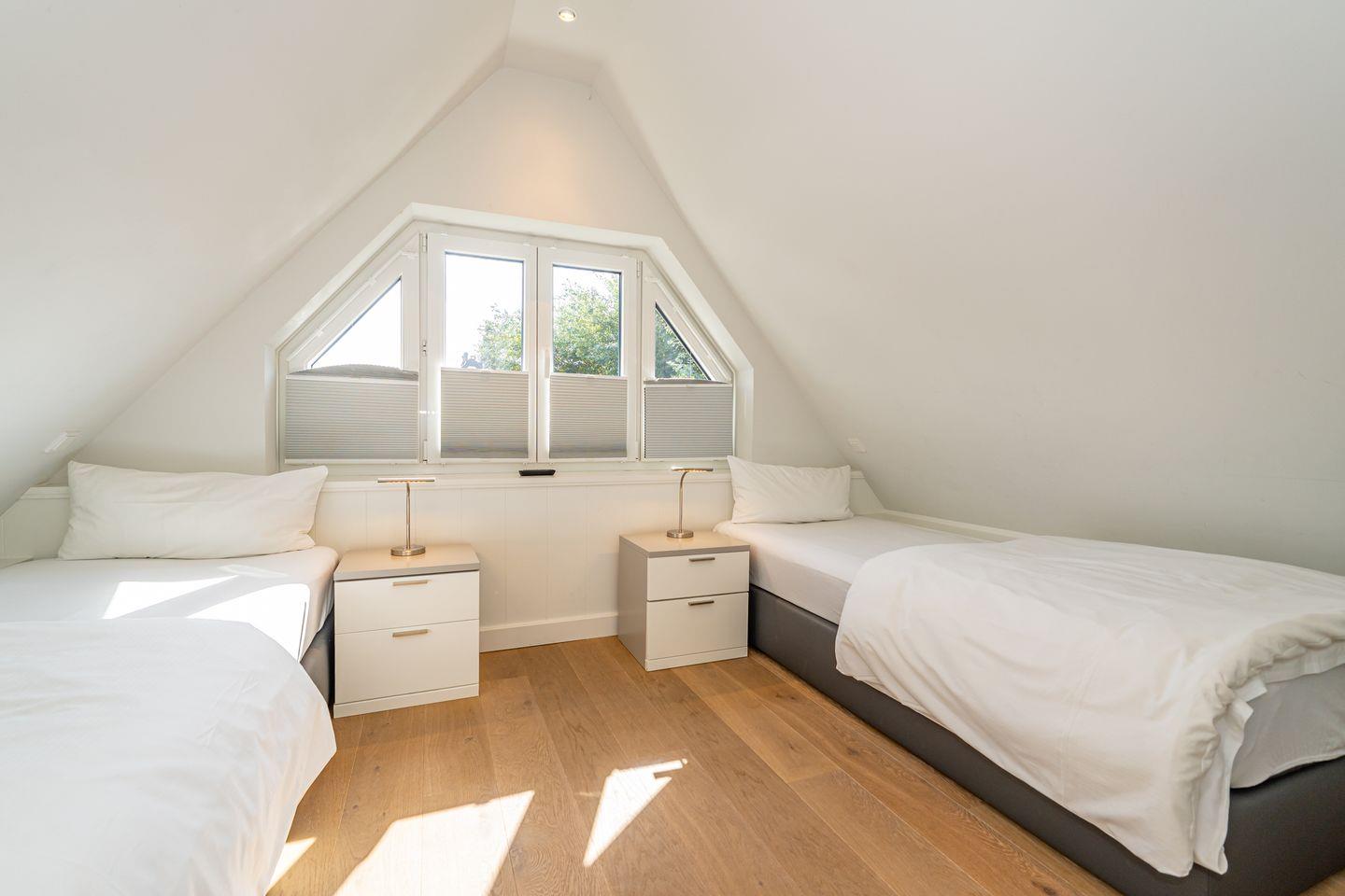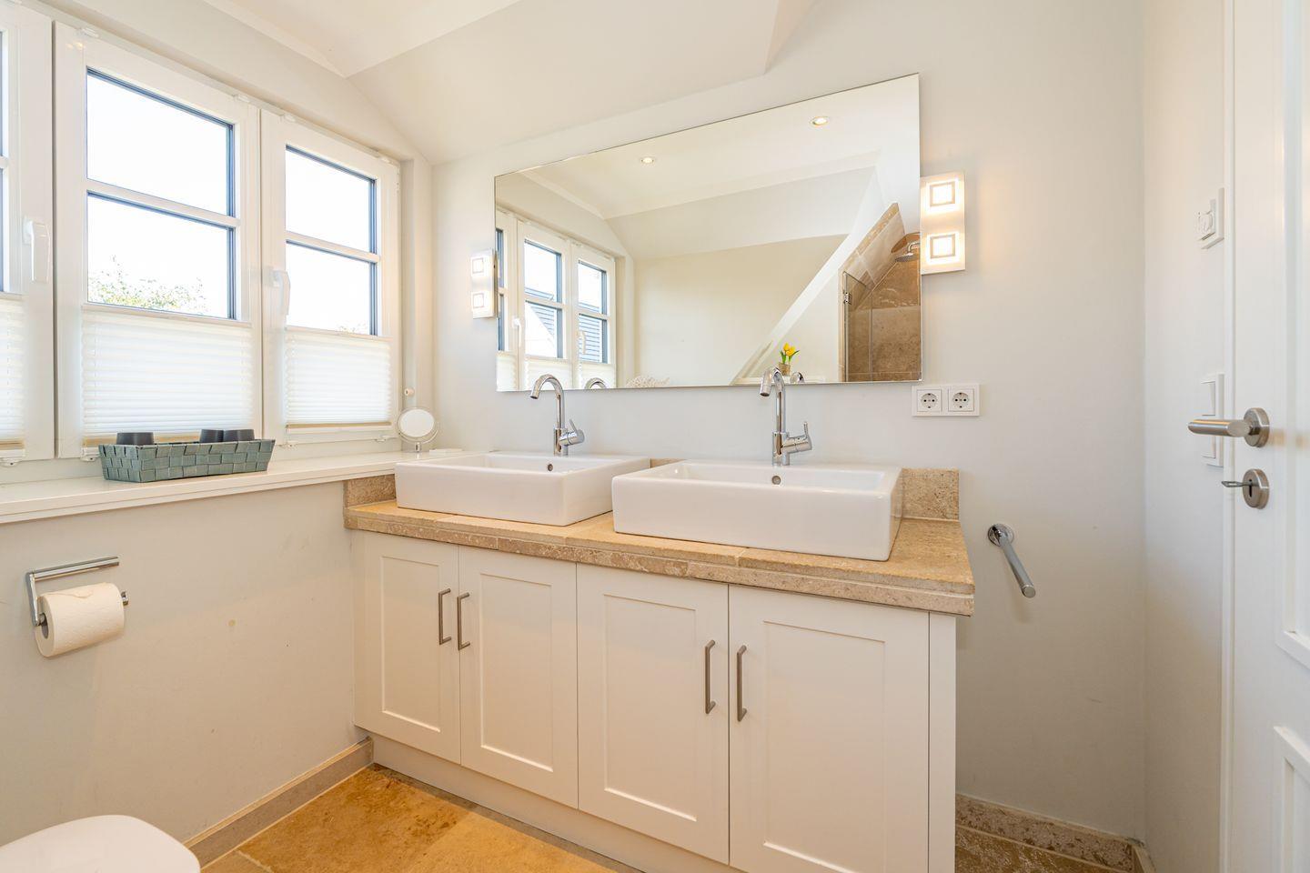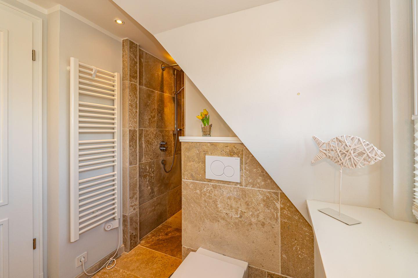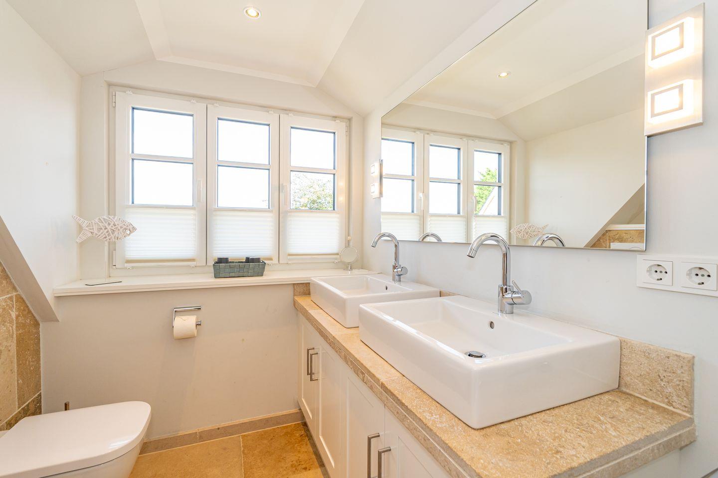 Im Erdgeschoss erwartet Sie ein Flur mit Garderobe. Von hier geht ein Gäste WC ab. Ebenfalls das geräumige und helle Wohn- und Esszimmer. Hier wartet Sie ein kuscheliger Gas Kamin, Sofa, TV und Essplatz. Angrenzend an diesen Bereich ist die offene Küche, hier können Sie köstliche Mahlzeiten zubereiten. Sie ist ausgestattet mit eine, Backofen, Induktionsherd mit Bora Feld, Geschirrspülmaschine, Gefrierschrank und Kaffeefiltermaschine. Vom Wohn- und Essbereich haben Sie Zutritt zum Garten mit Terrasse, Gartenmöbeln und Strandkorb. Über eine Treppe gelangen Sie in das erste OG, hier befindet sich ein Schlafzimmer mit Doppelbett (180x200), ein Badezimmer mit Dusche und Doppelwaschbecken. Als Highlight erwartet Sie auf dieser Ebene ein Kinoraum mit extra großem Smart-TV und gemütlichen Kinosesseln. Über eine weitere Treppe gelangen Sie in den Spitzboden, wo sich ein Schlafzimmer mit zwei Einzelbetten (je 90x200) und ein Gäste WC befinden. Im Souterrain des Hauses ist ein weiteres Schlafzimmer mit Doppelbett (180x200) und ein Badezimmer mit Dusche und Sauna. Zum Ferienhaus gehört ein PKW Stellplatz.