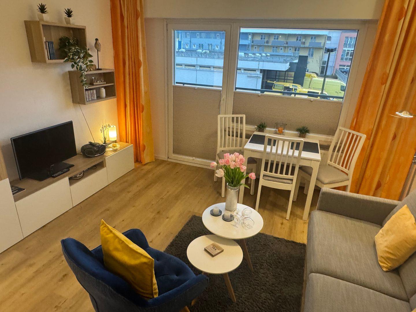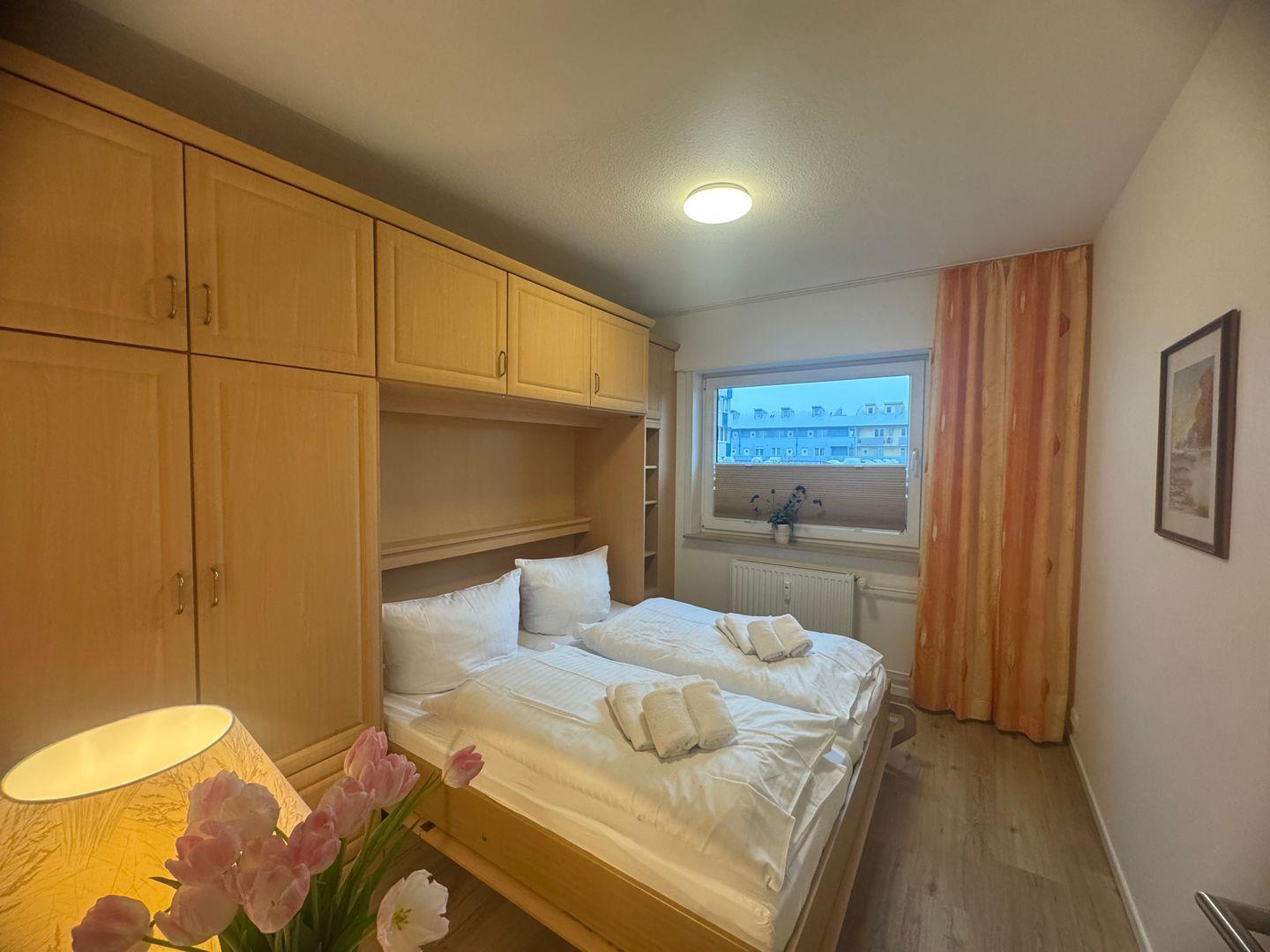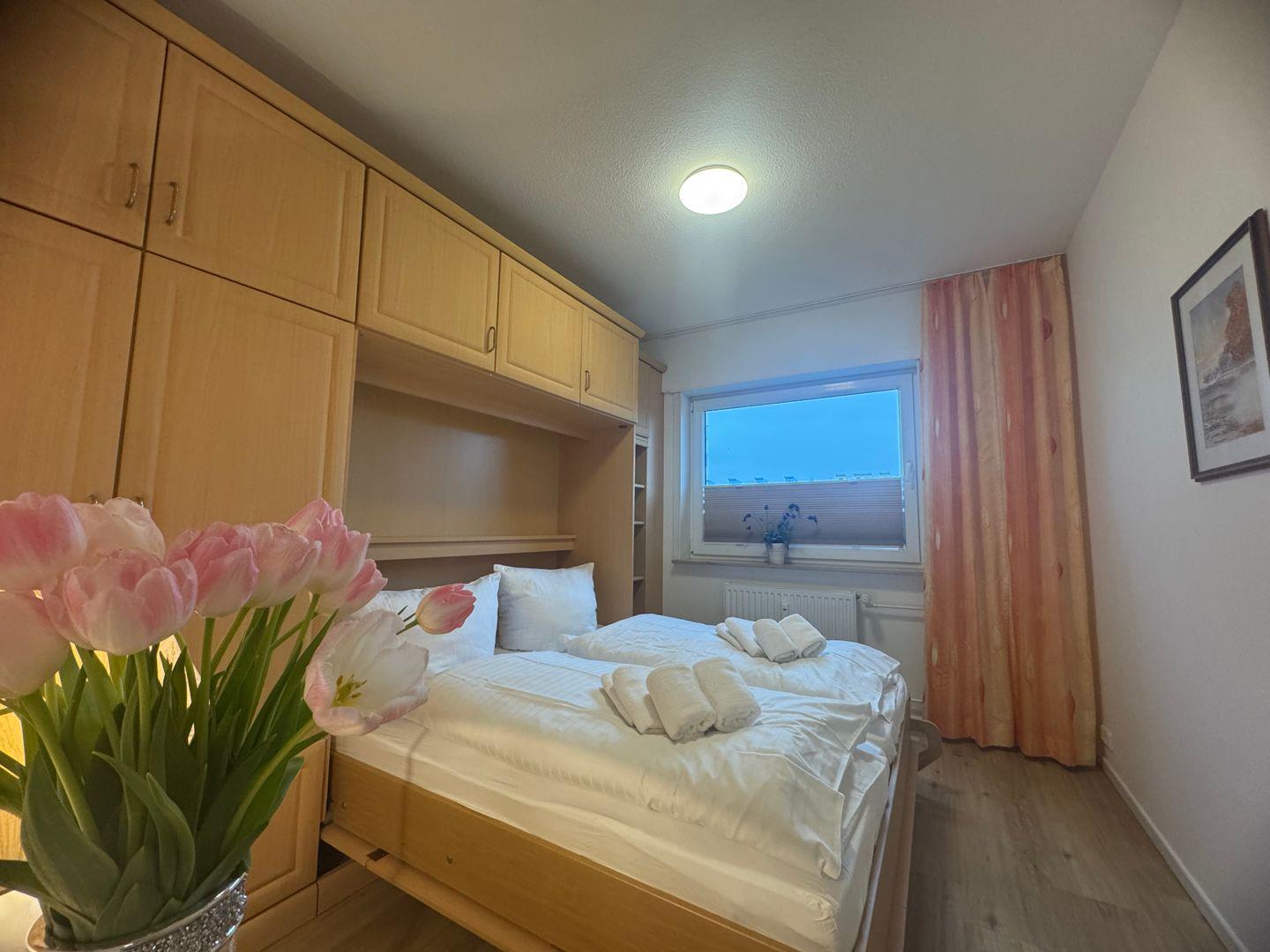 Gemütliche 2-Zimmer-Ferienwohnung (ca. 40 m²) in Westerland für bis zu 4 Personen. Mit Schlafzimmer, Wohnzimmer (Schlafcouch & Schrankbett), moderner Küche und Duschbad. Kostenfreie Nutzung des Schwimmbads, Sauna gegen Gebühr. Strand und Zentrum fußläufig erreichbar. Haustiere willkommen, WLAN inklusive.
