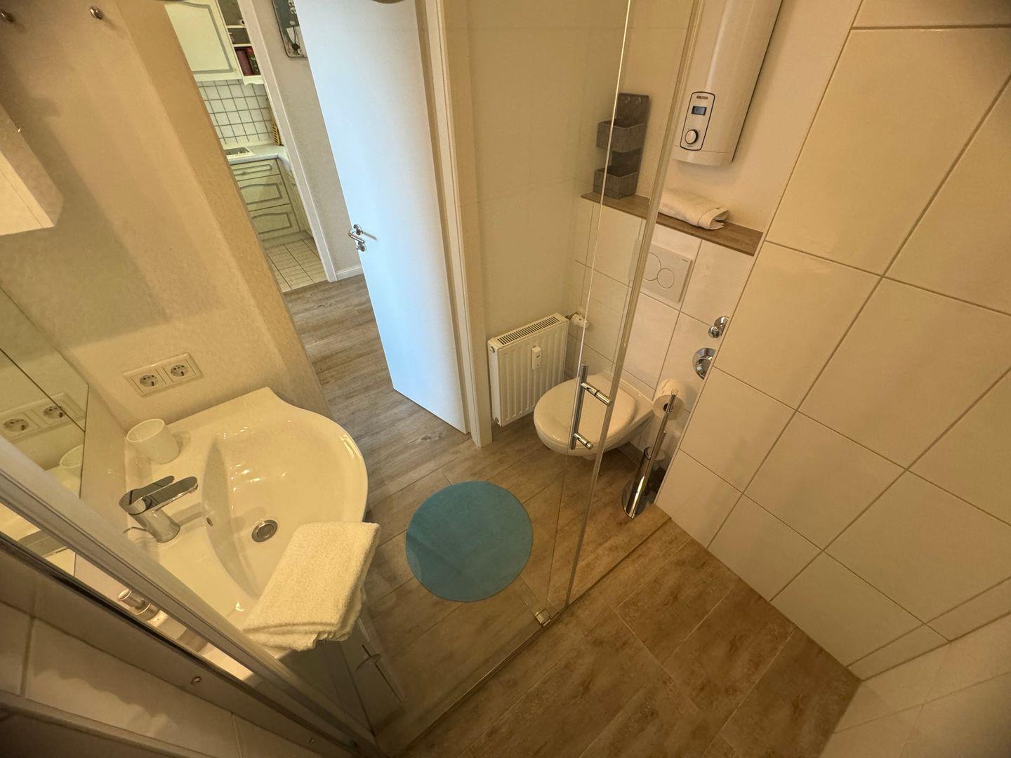 Die voll ausgestattete Küche ist ein echter Pluspunkt! Mit Glaskeramikkochfeld, Mikrowelle mit Backfunktion, Spülmaschine, Kühlschrank mit Gefrierfach, Kaffeemaschine, Wasserkocher und Toaster lassen sich kulinarische Wünsche problemlos umsetzen. Das Badezimmer überzeugt mit einer modernen Dusche und einer stilvollen Ausstattung.