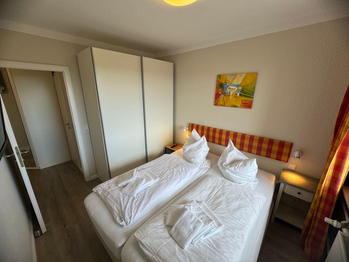 Die Ferienwohnung besticht durch ein helles Wohnzimmer mit Zugang zum Ost-Balkon, der Ihnen einen wunderschönen Start in den Tag ermöglicht. Genießen Sie hier die Morgenstunden bei einer Tasse Kaffee und einem Blick Richtung Alt-Westerland. Das Wohnzimmer ist mit einem bequemen Sofa, einem Sessel, Kabel-TV und einem Sideboard ausgestattet. Im separaten Schlafzimmer mit praktischem Einbauschrank finden Sie die Ruhe, die Sie für einen erholsamen Urlaub brauchen.
