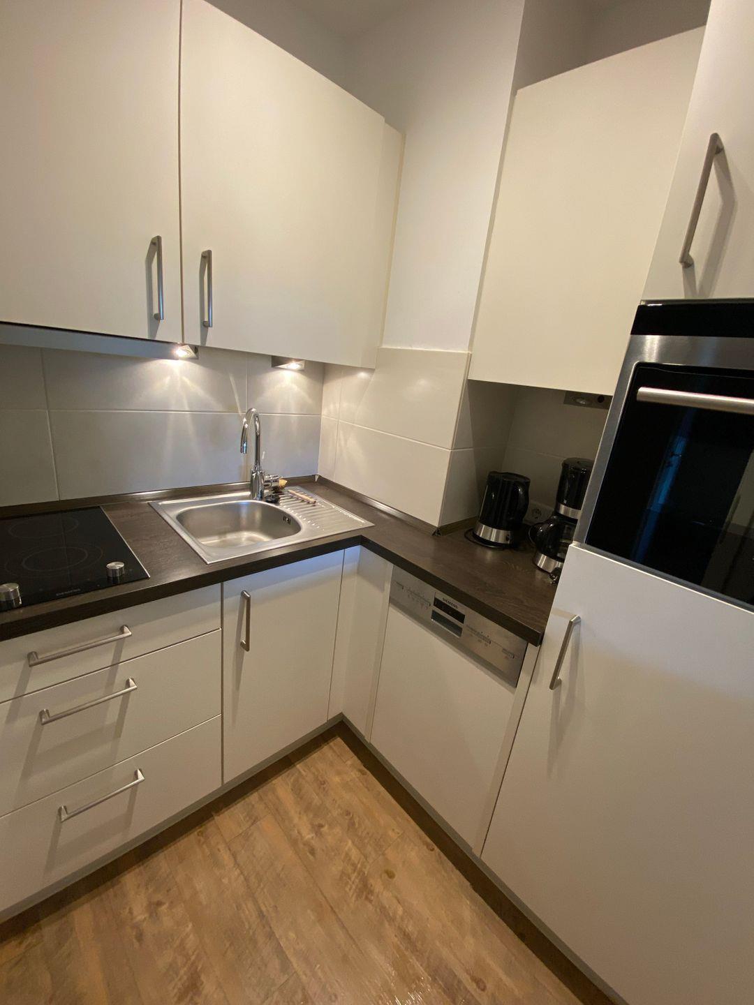 Die Ferienwohnung ist mit einem komfortablen Schlafzimmer und einem einladenden Wohnzimmer ausgestattet, das Ihnen Platz für bis zu vier Personen bietet. Während Ihres Aufenthalts können Sie in der offenen Küche, die ideal in den Wohnbereich integriert ist, köstliche Mahlzeiten zubereiten. Die voll ausgestattete Küche umfasst einen Herd mit zwei Kochplatten, einen Backofen, einen Kühlschrank mit Gefrierfach, eine Spülmaschine und eine Kaffeemaschine – alles, was Sie benötigen, um sich wie zu Hause zu fühlen.