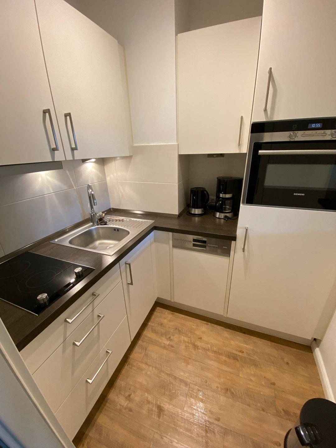 Die Ferienwohnung ist mit einem komfortablen Schlafzimmer und einem einladenden Wohnzimmer ausgestattet, das Ihnen Platz für bis zu vier Personen bietet. Die voll ausgestattete Küche umfasst einen Herd mit zwei Kochplatten, einen Backofen, einen Kühlschrank mit Gefrierfach, eine Spülmaschine und eine Kaffeemaschine – alles, was Sie benötigen, um sich wie zu Hause zu fühlen.